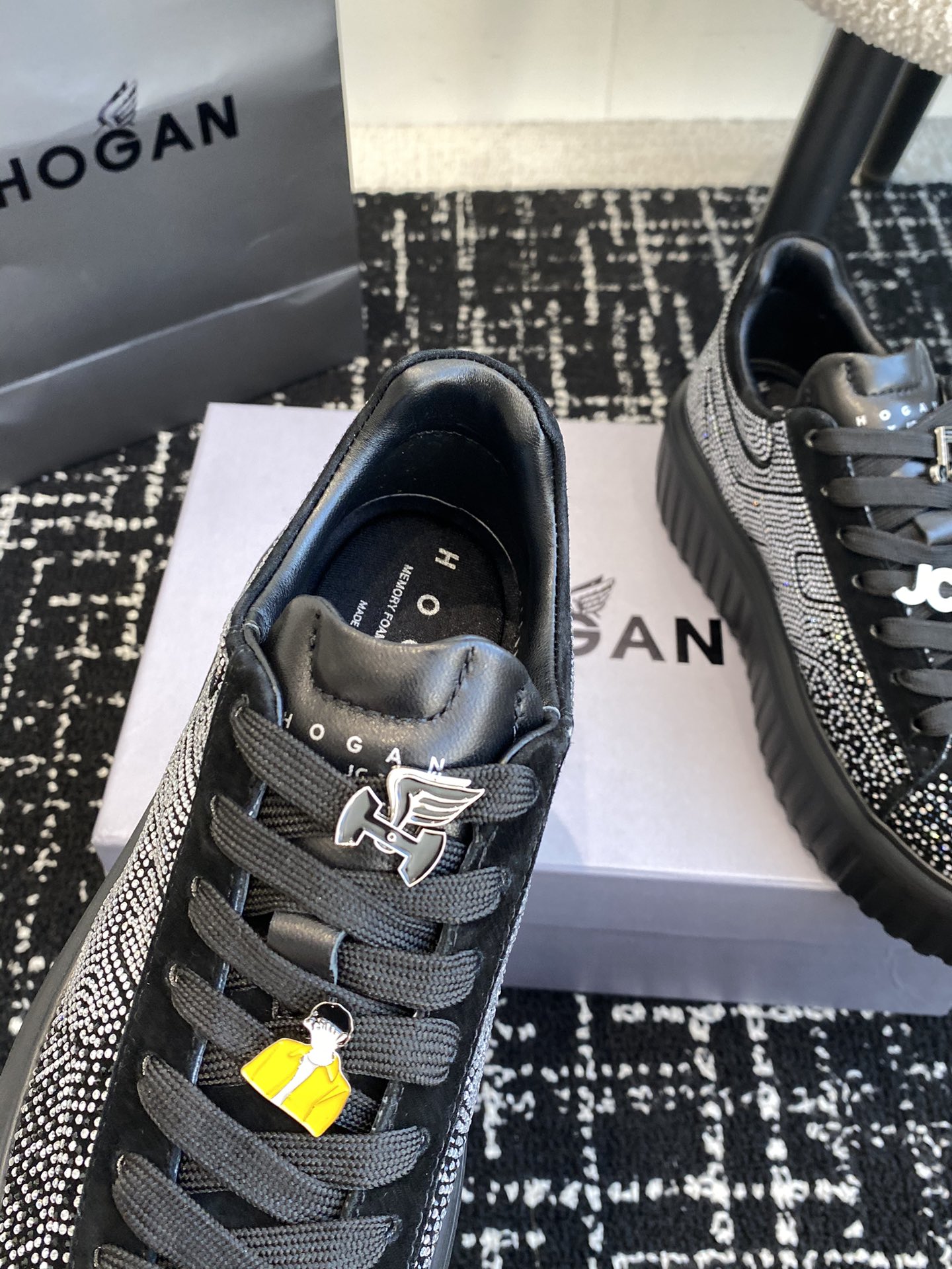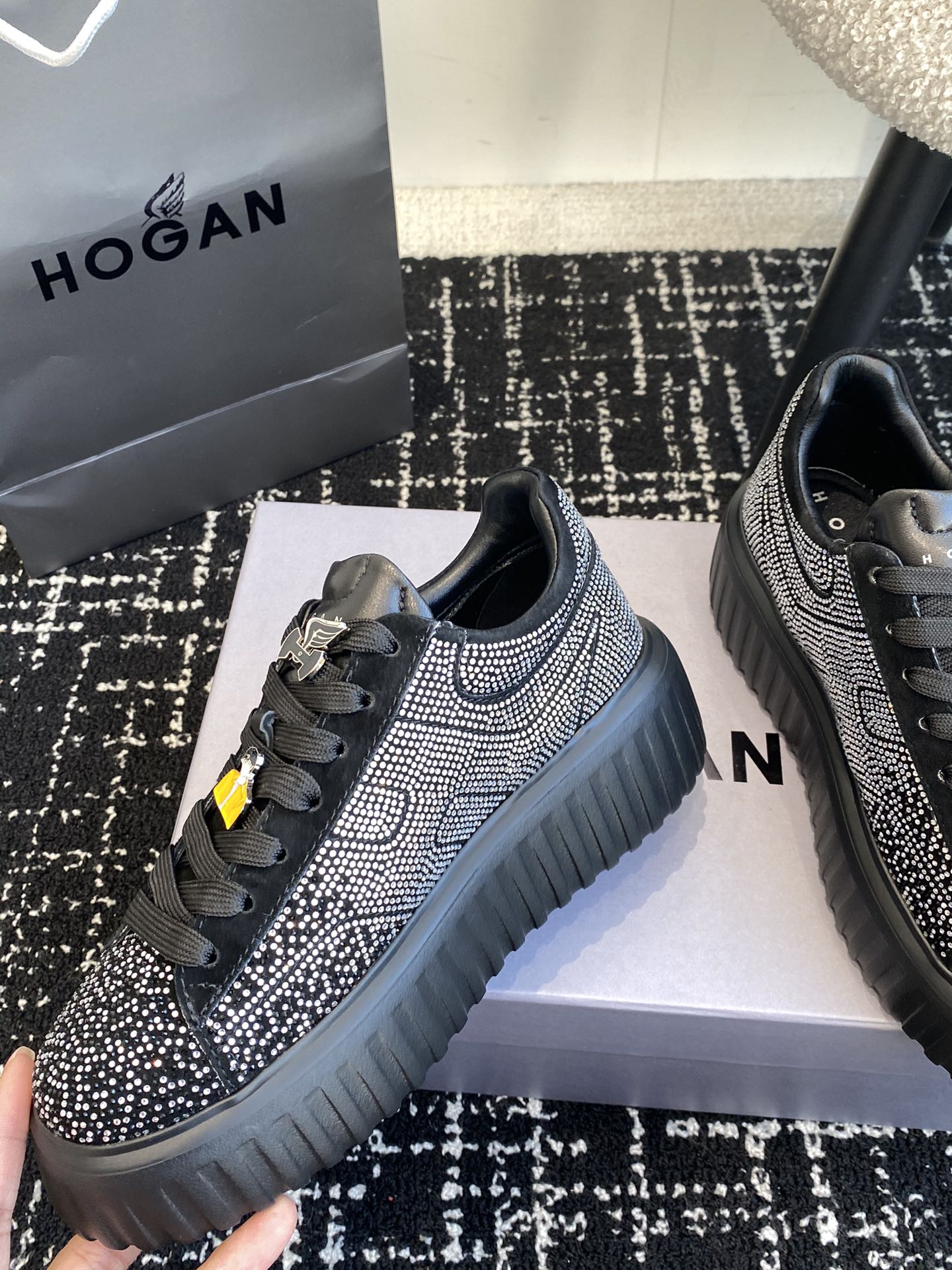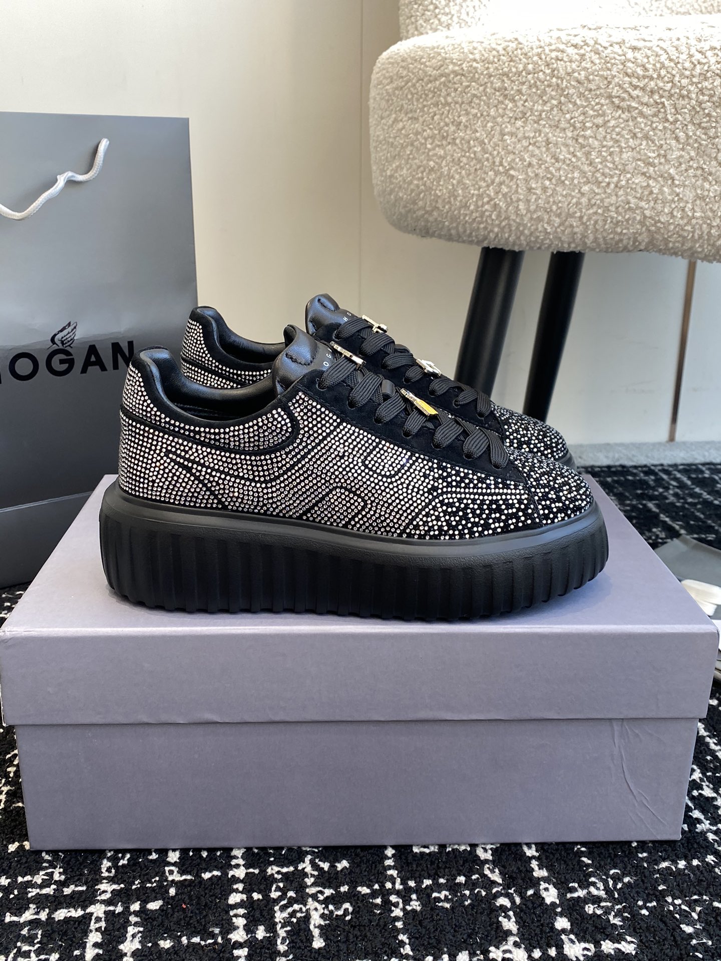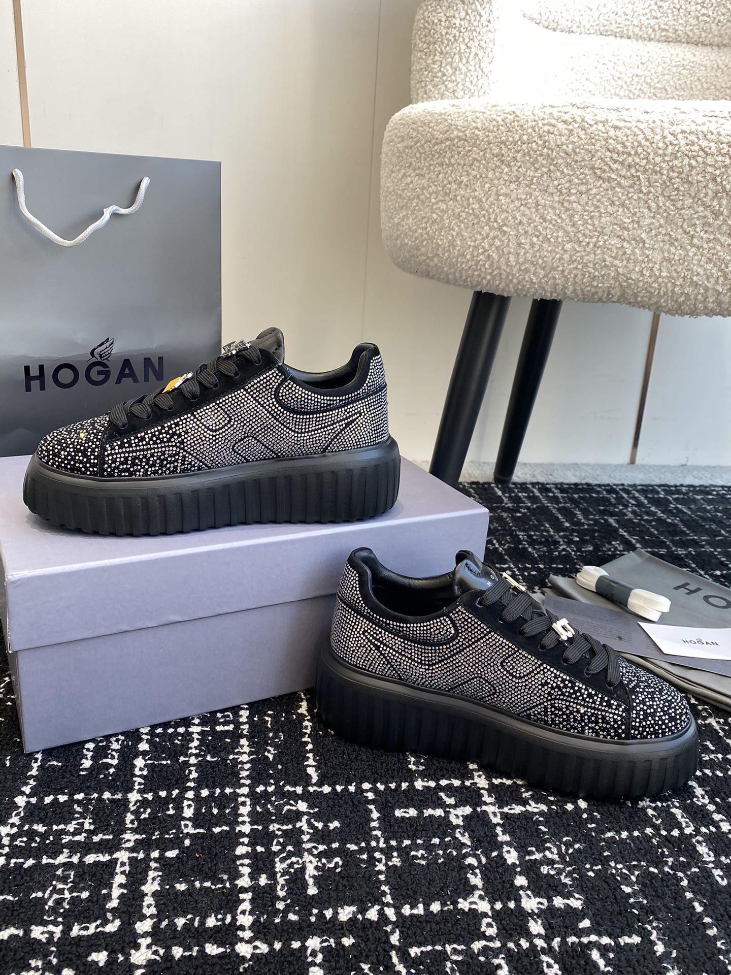 This shoes is AAAAA 1:1 quality (superb). Materials used are identical to the original ones. Hogan trademark marks are indistinguishable to the authentic. Photos take by actual shoes, what you receive will be 100% same with our photos.