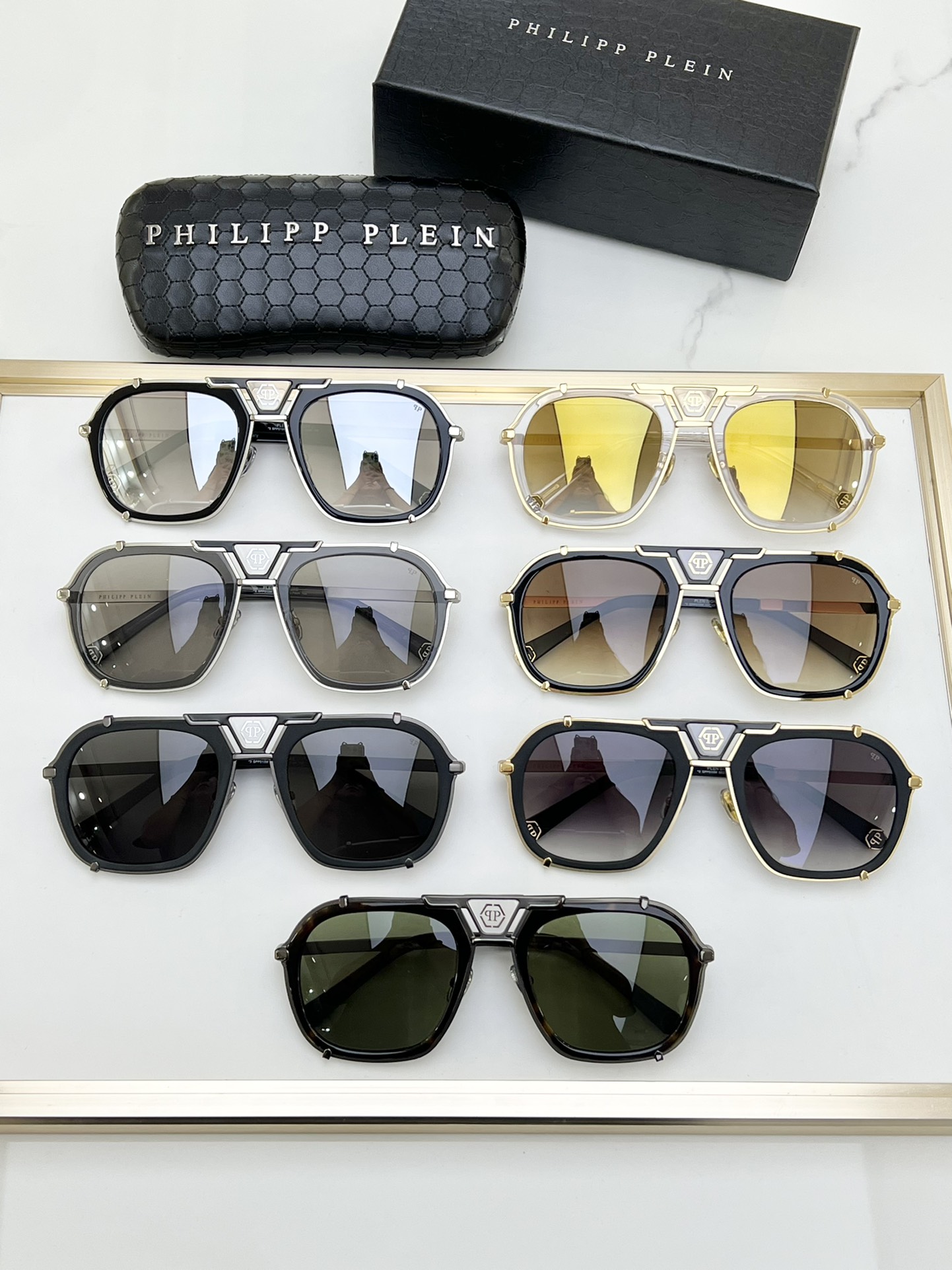 This sunglasses is AAAAA 1:1 quality (superb). Materials used are identical to the original ones. Philipp Plein trademark marks are indistinguishable to the authentic. Photos take by actual sunglasses, what you receive will be 100% same with our photos.
