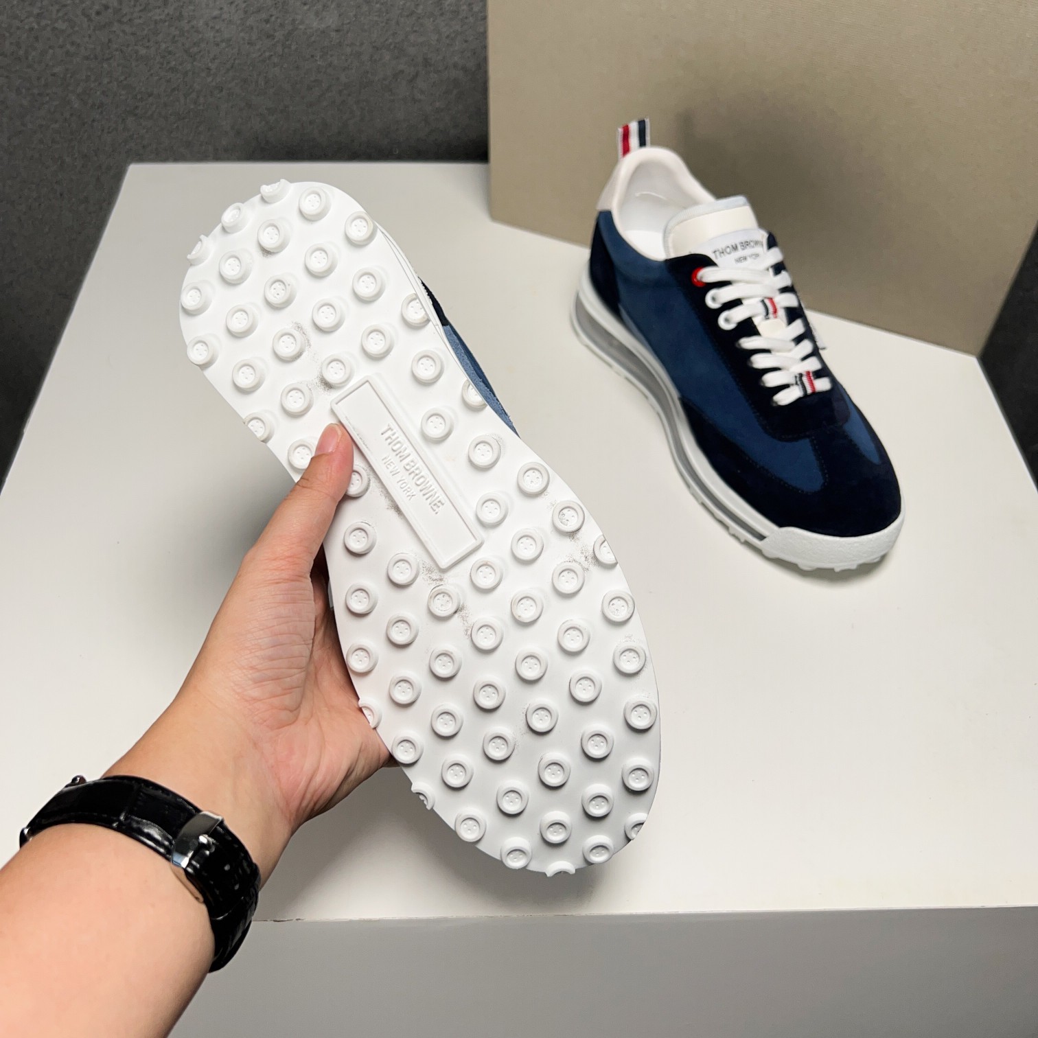 This shoes is AAAAA 1:1 quality (superb). Materials used are identical to the original ones. Thom Browne trademark marks are indistinguishable to the authentic. Photos take by actual shoes, what you receive will be 100% same with our photos.