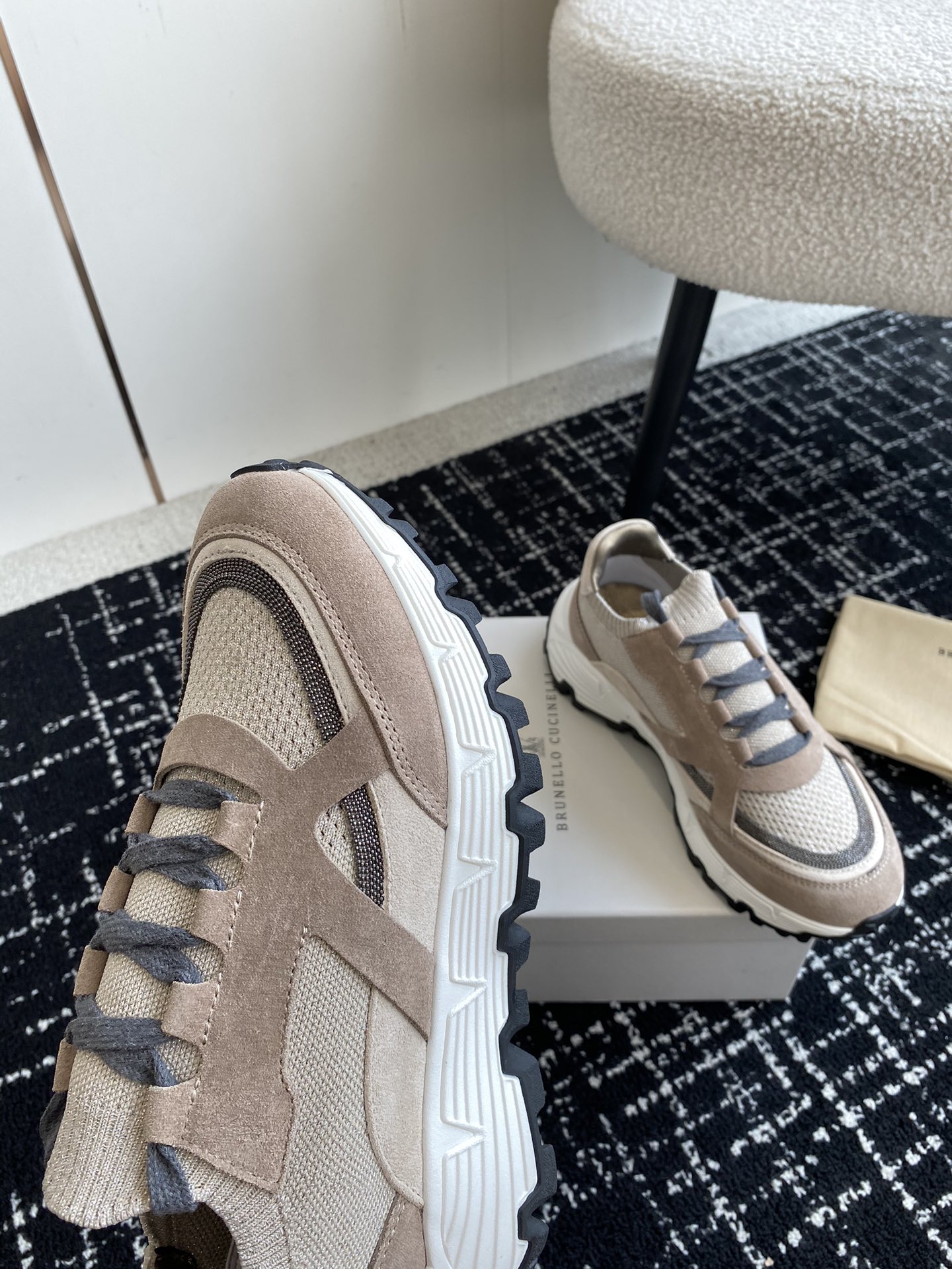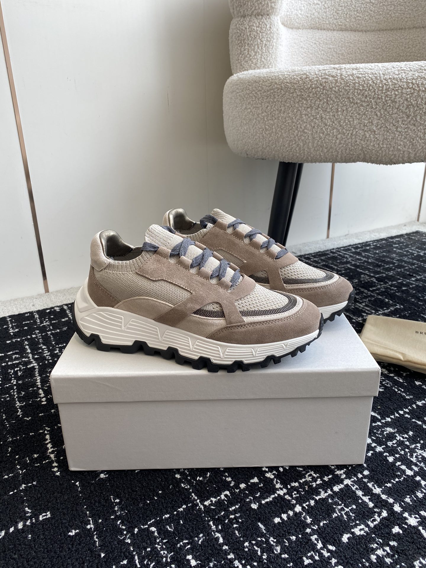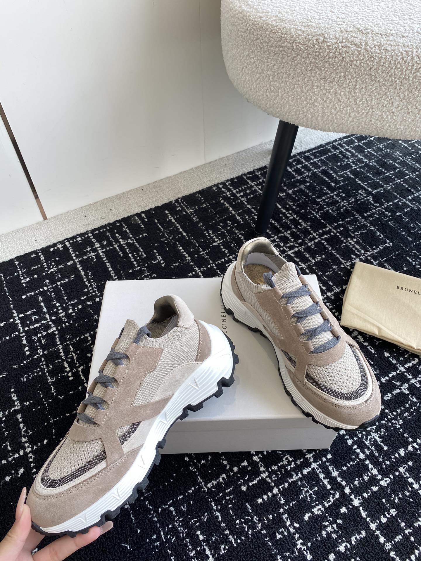 This shoes is AAAAA 1:1 quality (superb). Materials used are identical to the original ones. Brunello Cucinelli trademark marks are indistinguishable to the authentic. Photos take by actual shoes, what you receive will be 100% same with our photos.