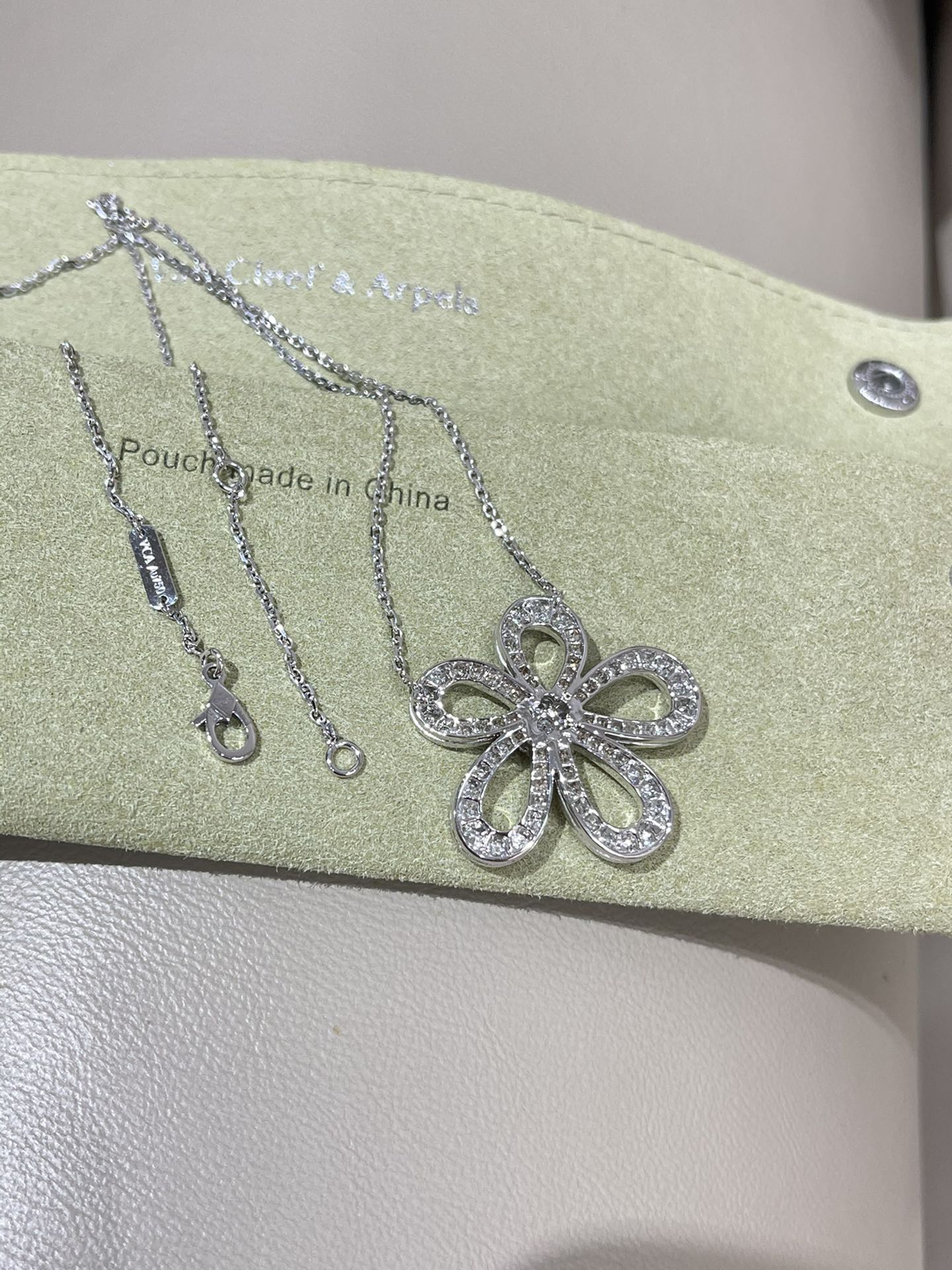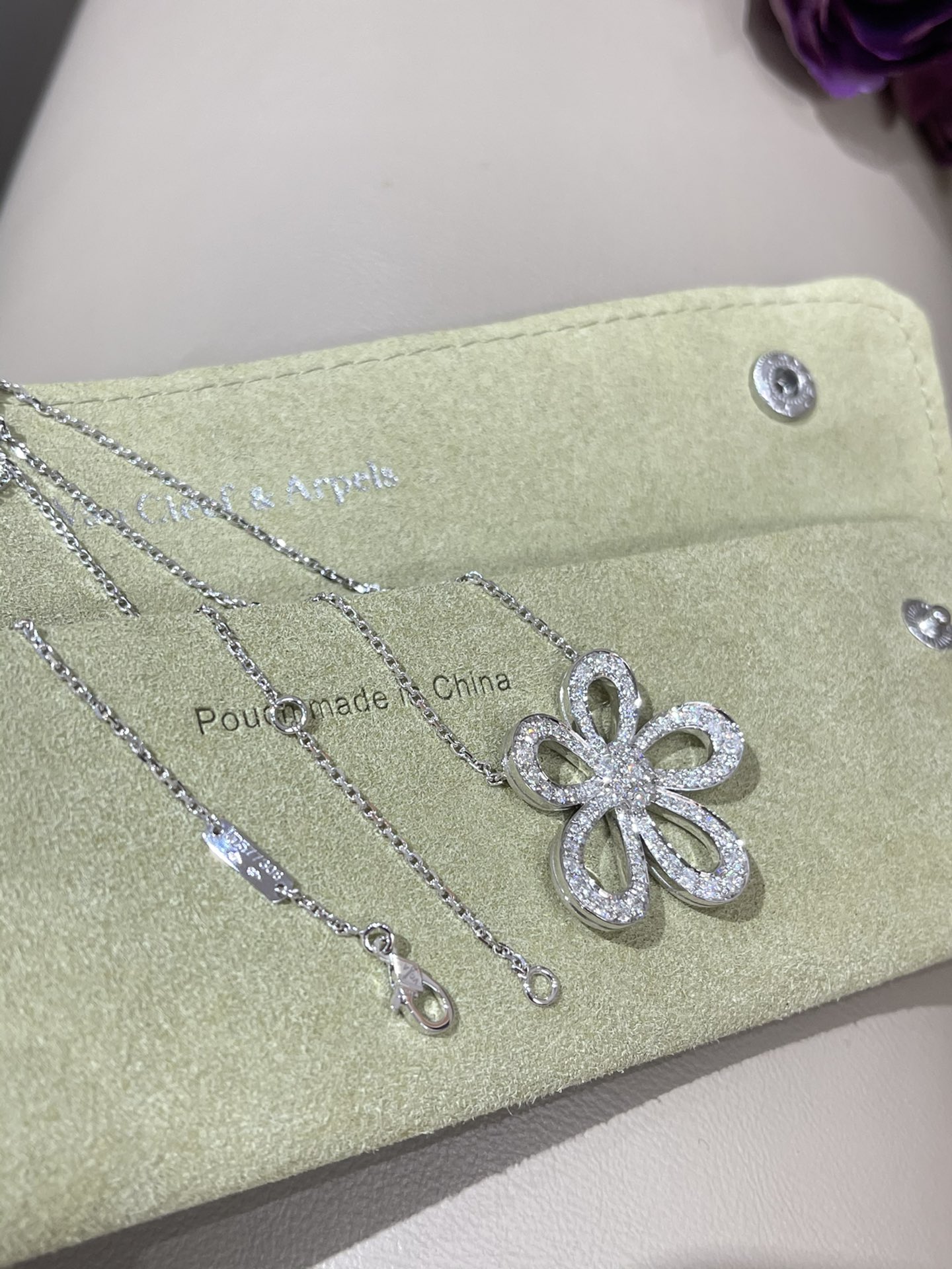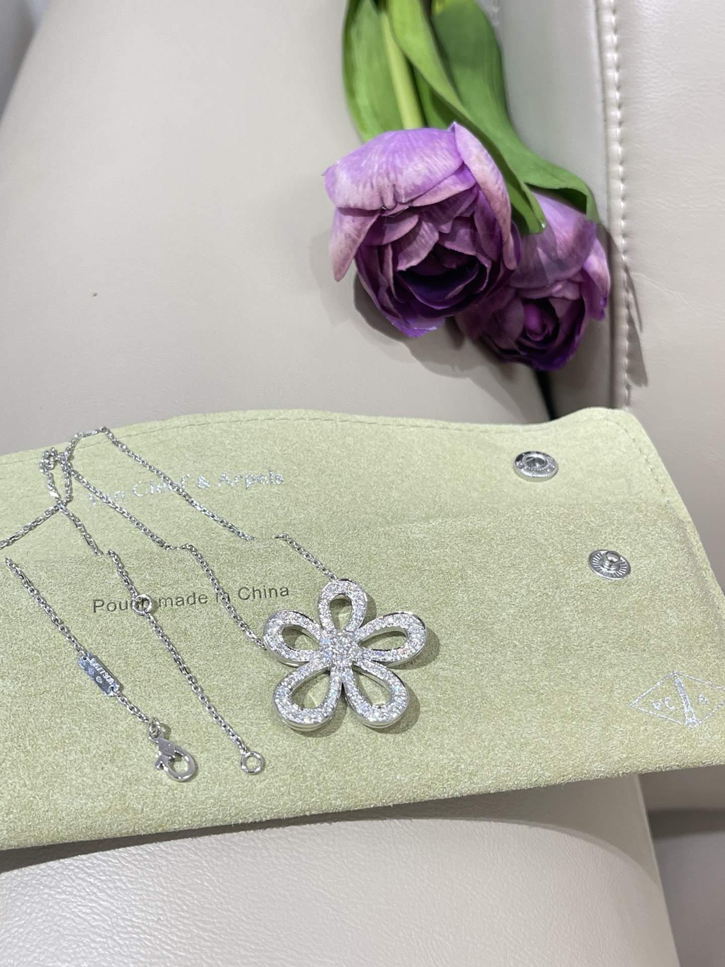 This jewelry is AAAAA 1:1 quality (superb). Materials used are identical to the original ones. Van Cleef & Arpels trademark marks are indistinguishable to the authentic. Photos take by actual jewelry, what you receive will be 100% same with our photos.