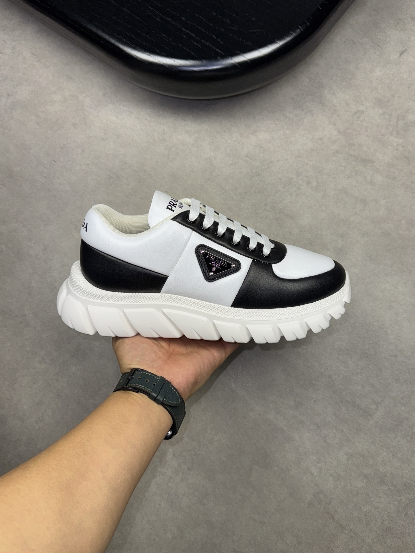 This shoes is AAAAA 1:1 quality (superb). Materials used are identical to the original ones. Prada trademark marks are indistinguishable to the authentic. Photos take by actual shoes, what you receive will be 100% same with our photos.