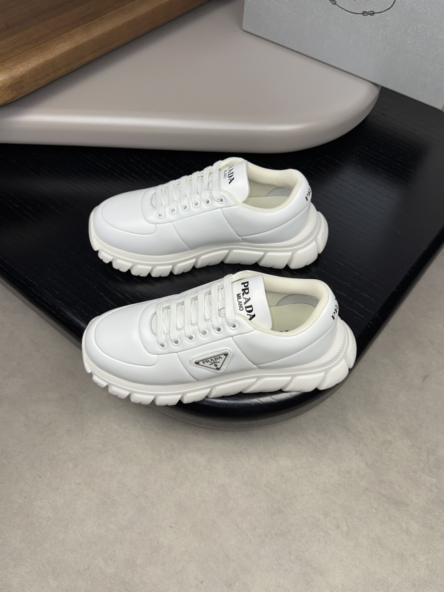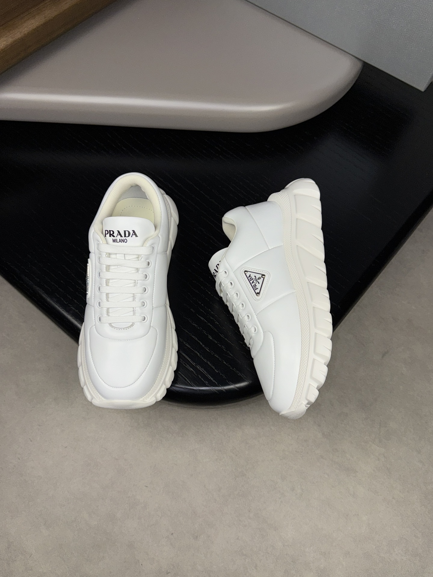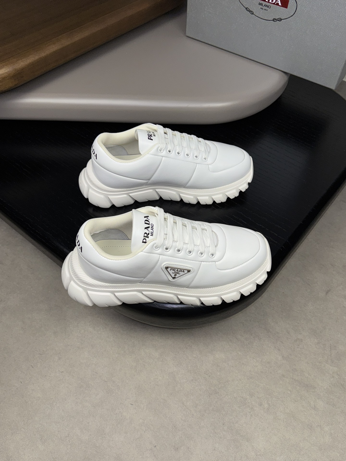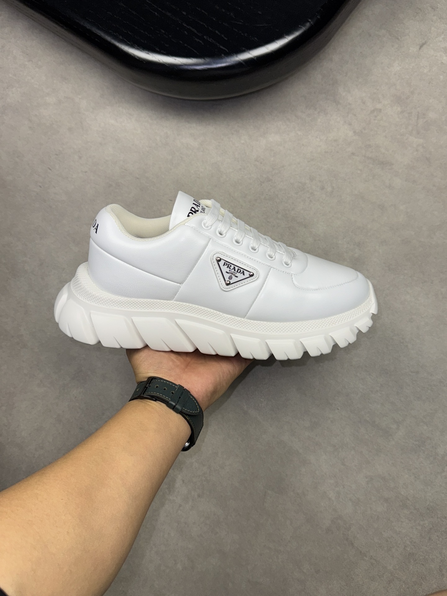 This shoes is AAAAA 1:1 quality (superb). Materials used are identical to the original ones. Prada trademark marks are indistinguishable to the authentic. Photos take by actual shoes, what you receive will be 100% same with our photos.