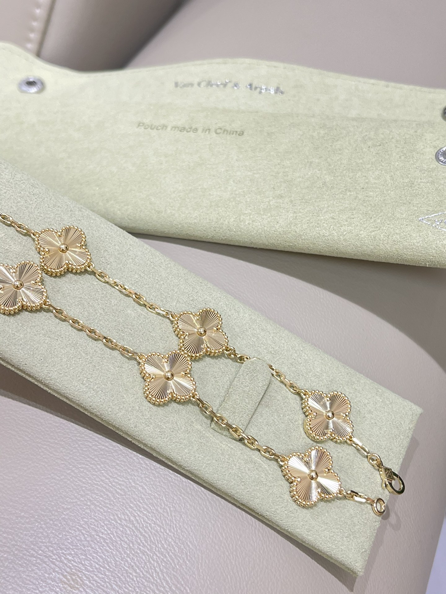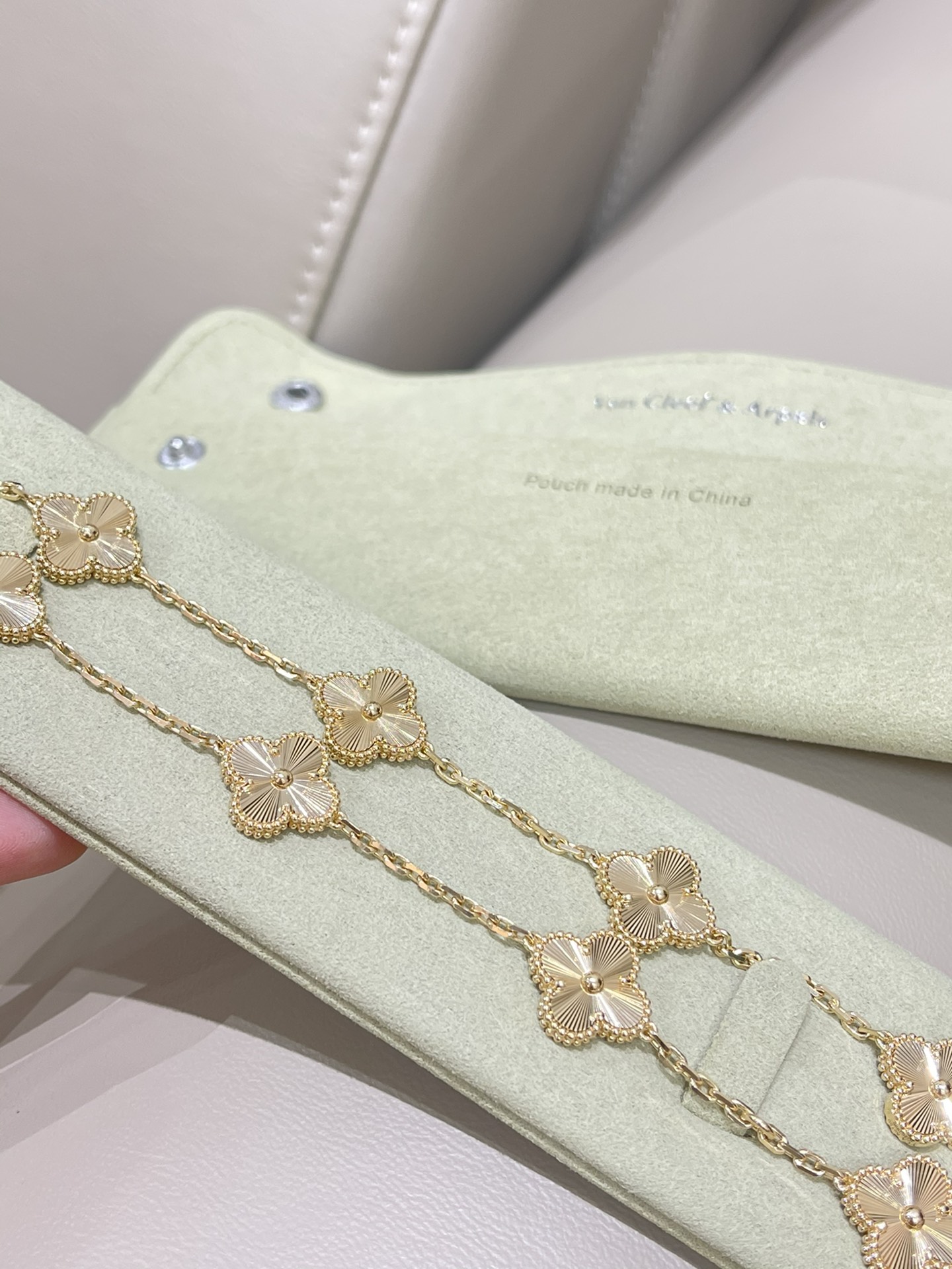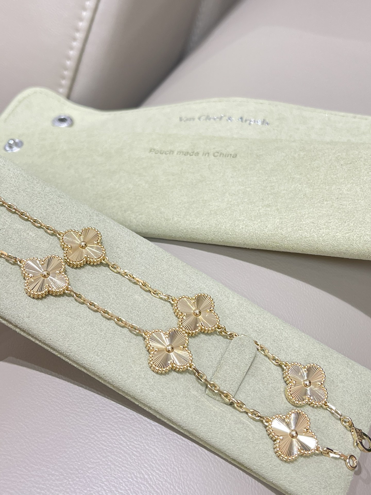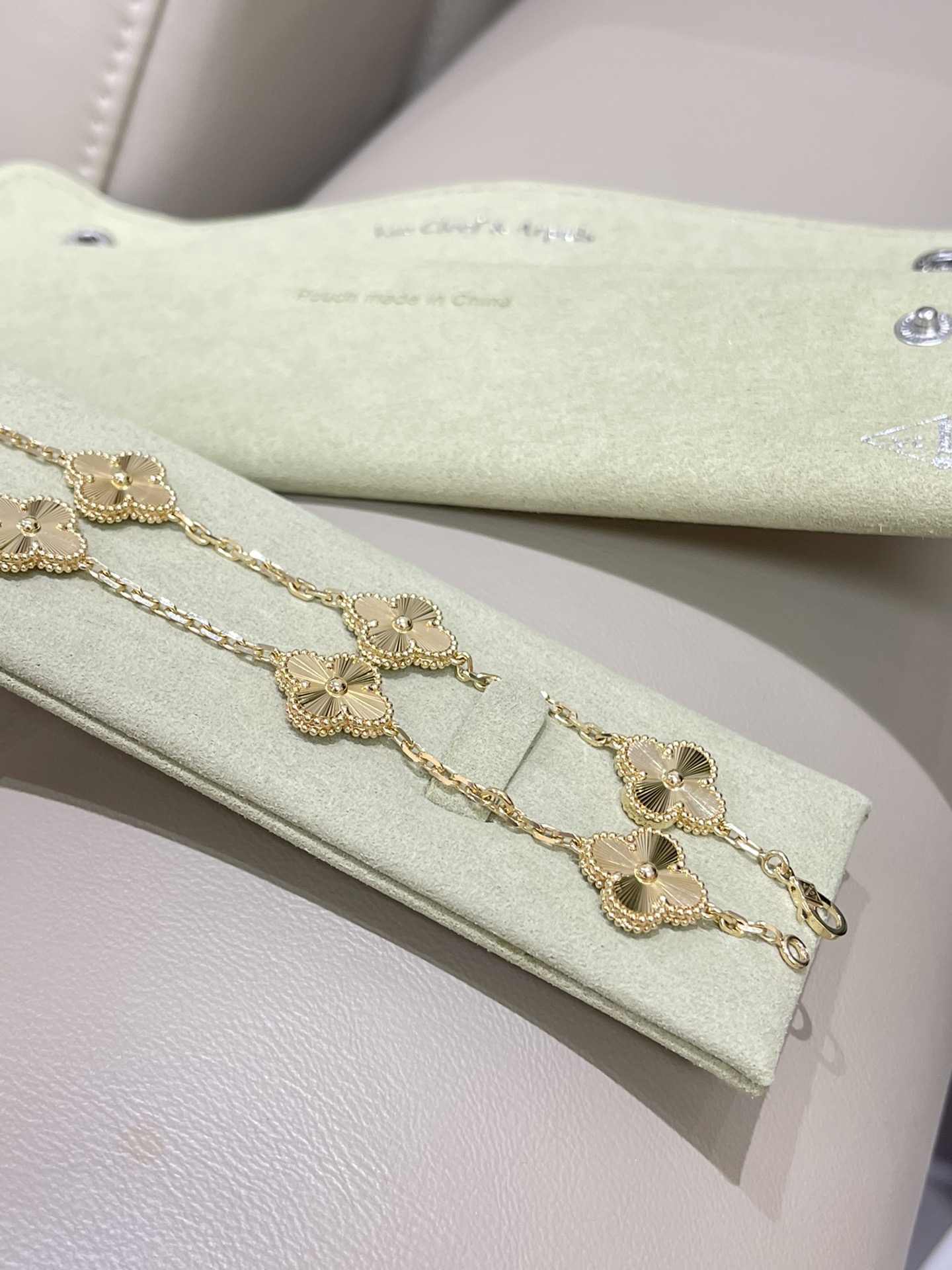 This jewelry is AAAAA 1:1 quality (superb). Materials used are identical to the original ones. Van Cleef & Arpels trademark marks are indistinguishable to the authentic. Photos take by actual jewelry, what you receive will be 100% same with our photos.