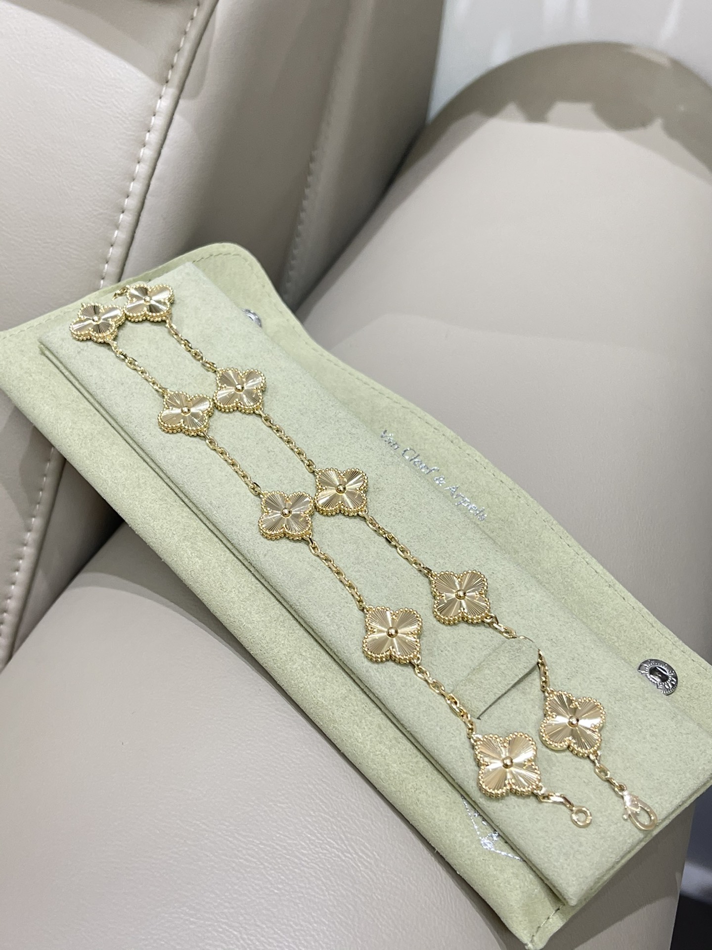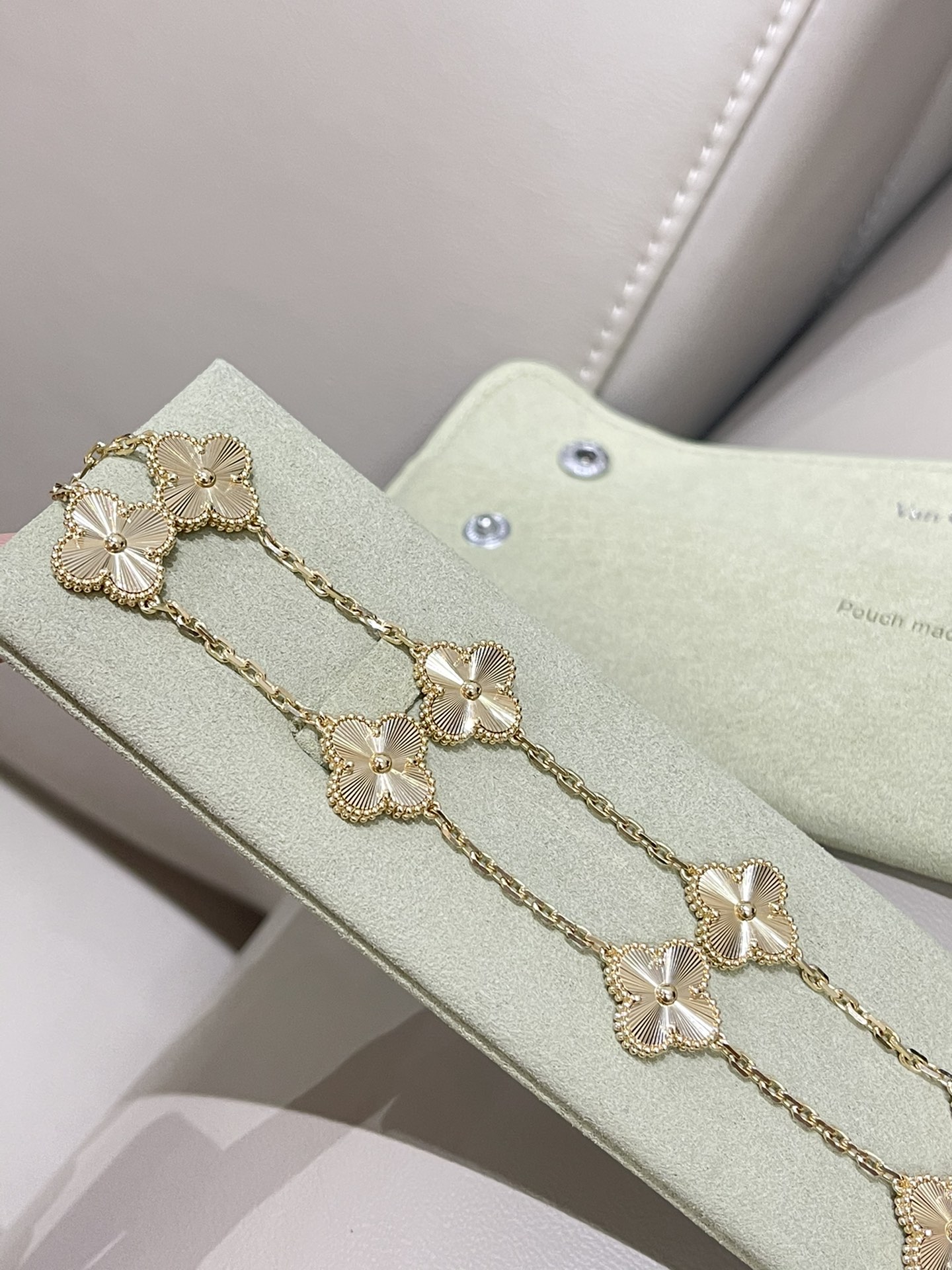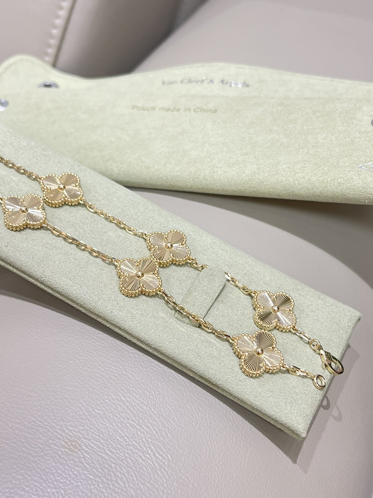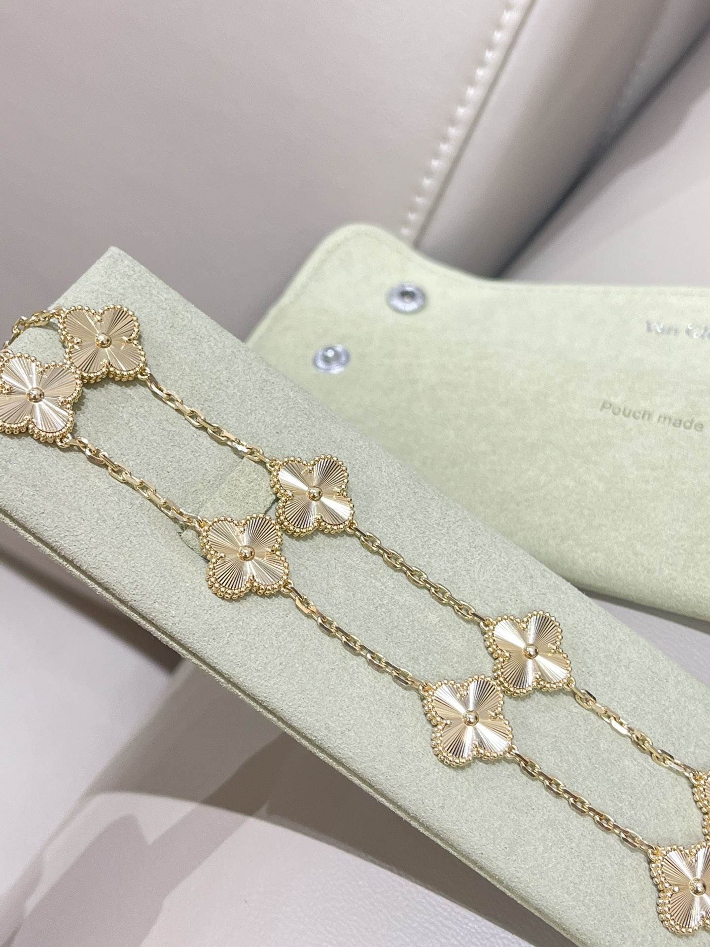 This jewelry is AAAAA 1:1 quality (superb). Materials used are identical to the original ones. Van Cleef & Arpels trademark marks are indistinguishable to the authentic. Photos take by actual jewelry, what you receive will be 100% same with our photos.