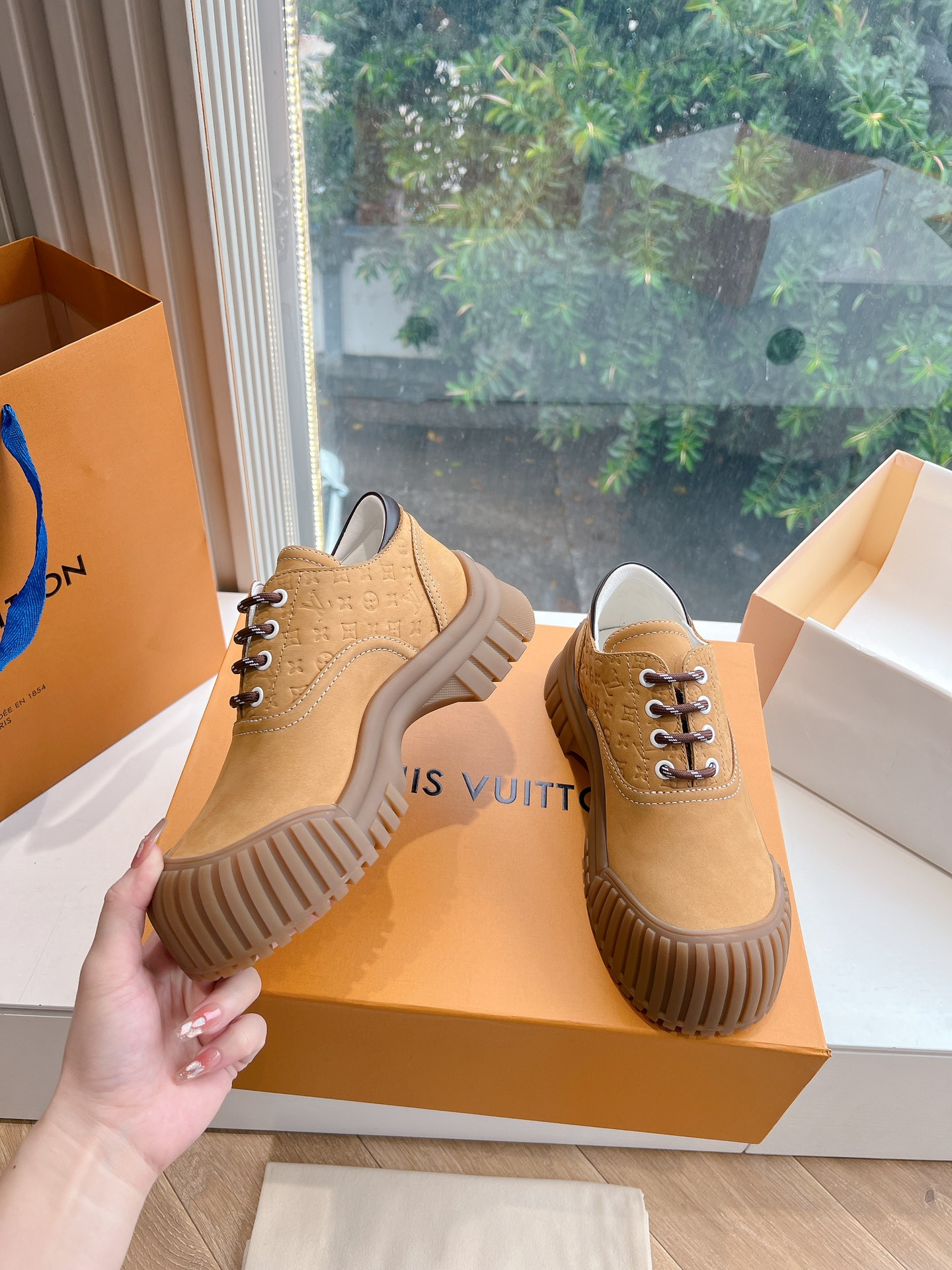 This shoes is AAAAA 1:1 quality (superb). Materials used are identical to the original ones. Louis Vuitton trademark marks are indistinguishable to the authentic. Photos take by actual shoes, what you receive will be 100% same with our photos.