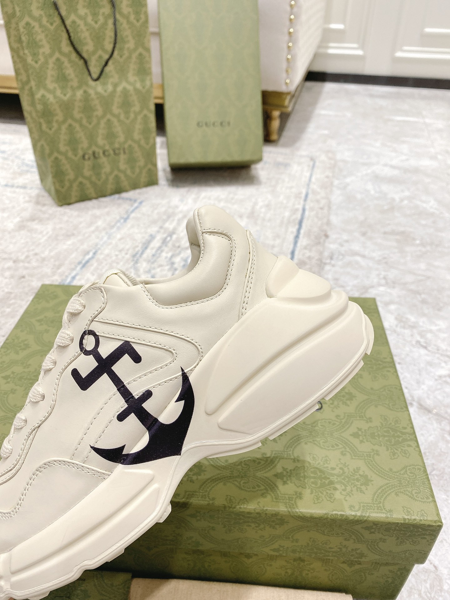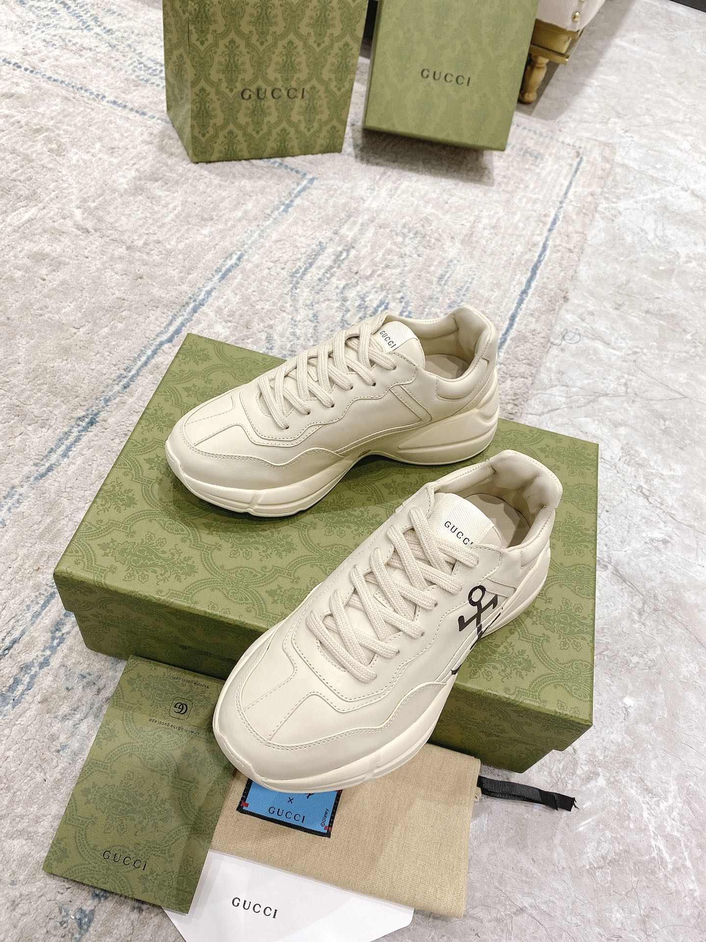 This shoes is AAAAA 1:1 quality (superb). Materials used are identical to the original ones. Gucci trademark marks are indistinguishable to the authentic. Photos take by actual shoes, what you receive will be 100% same with our photos.