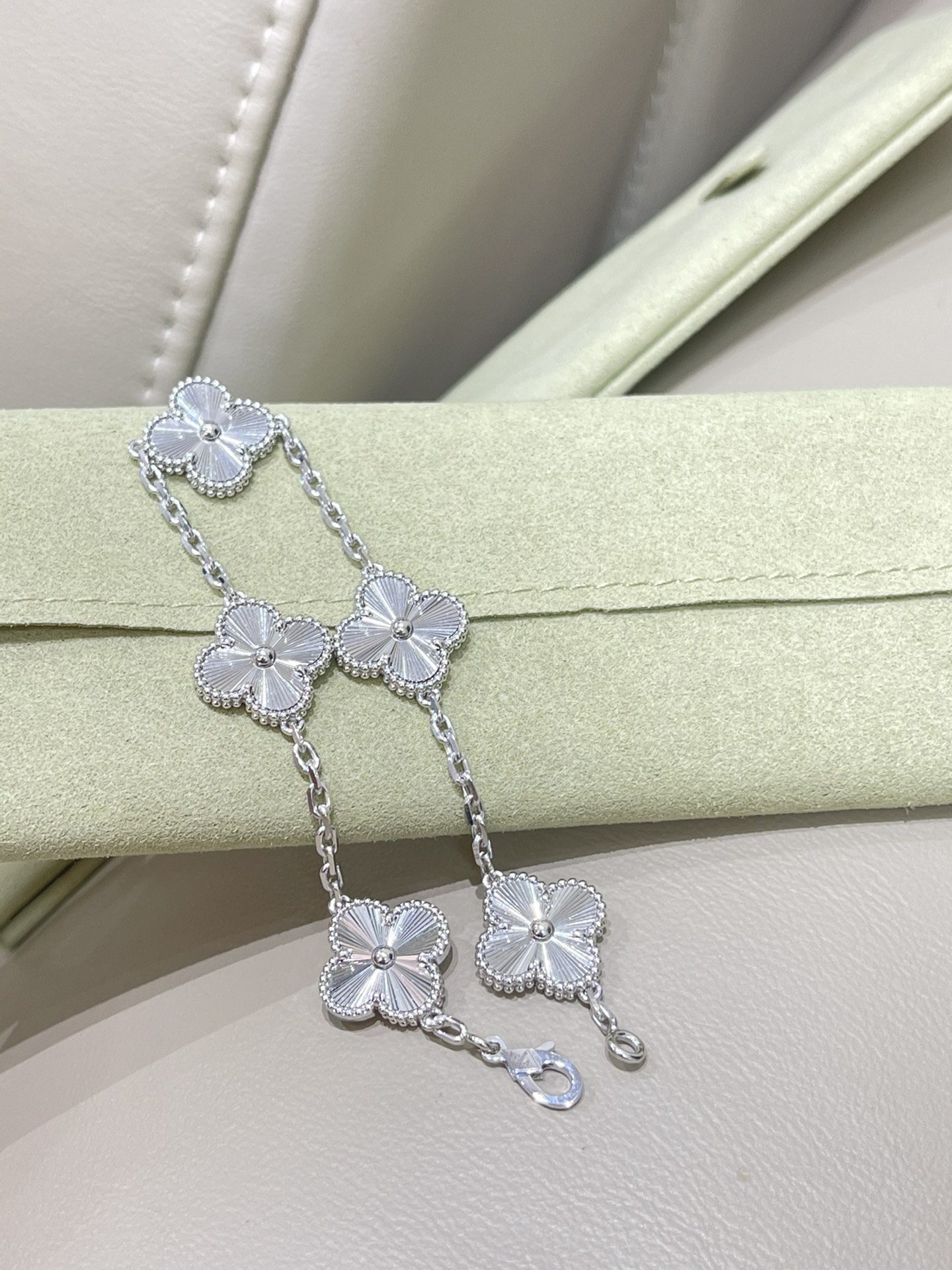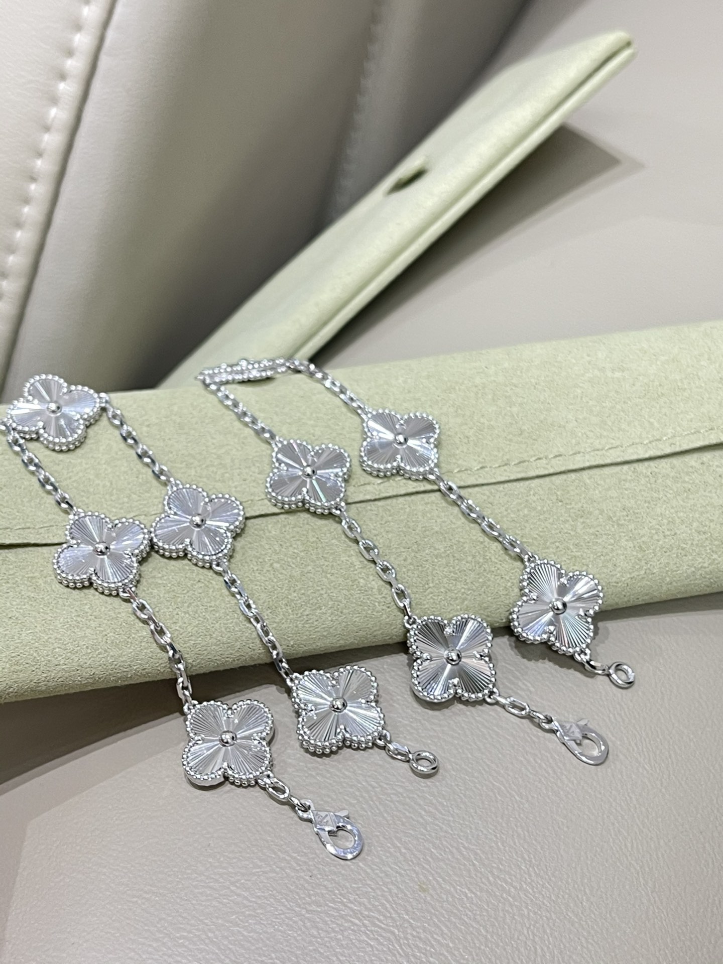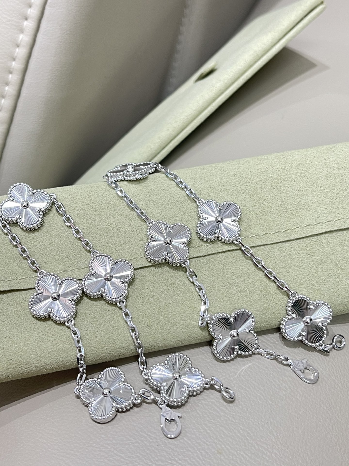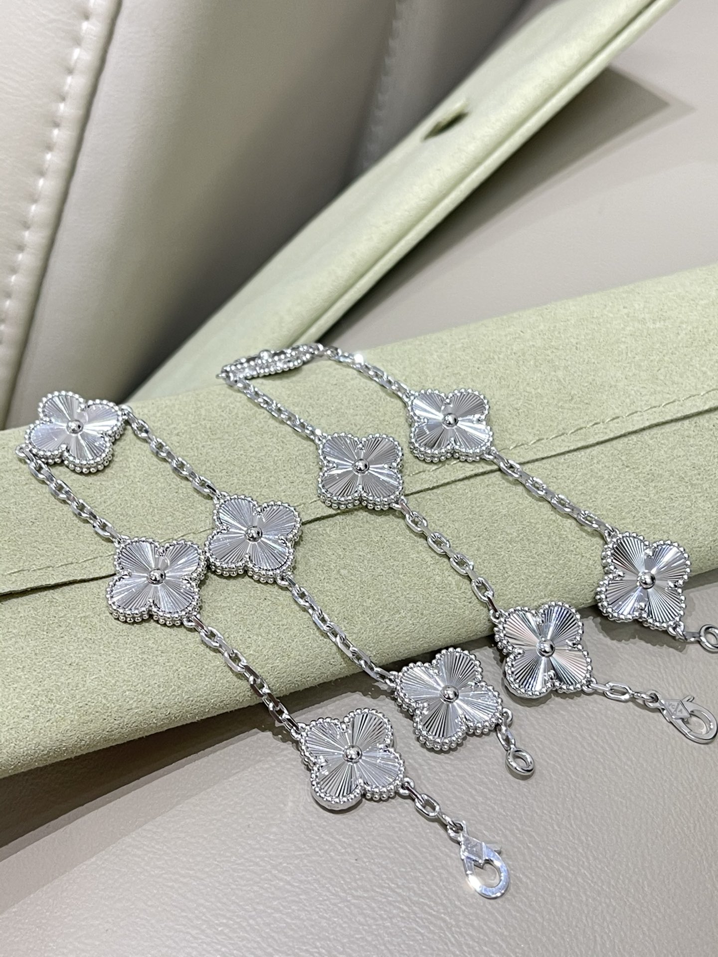 This jewelry is AAAAA 1:1 quality (superb). Materials used are identical to the original ones. Van Cleef & Arpels trademark marks are indistinguishable to the authentic. Photos take by actual jewelry, what you receive will be 100% same with our photos.