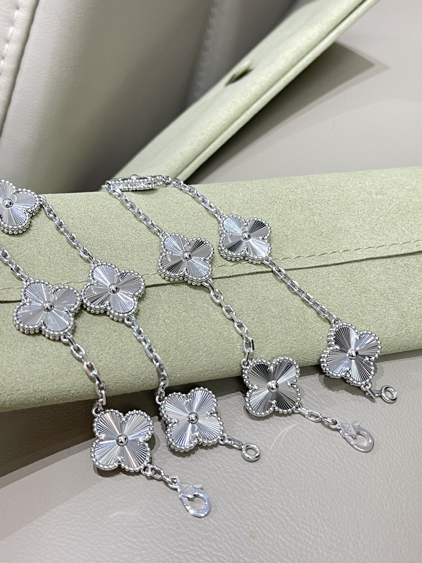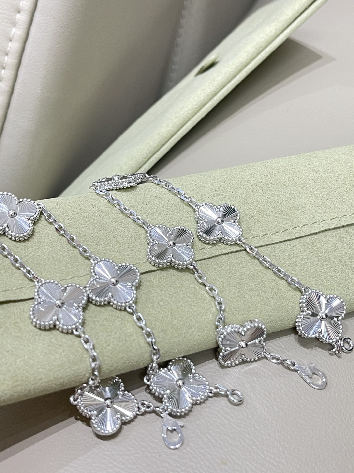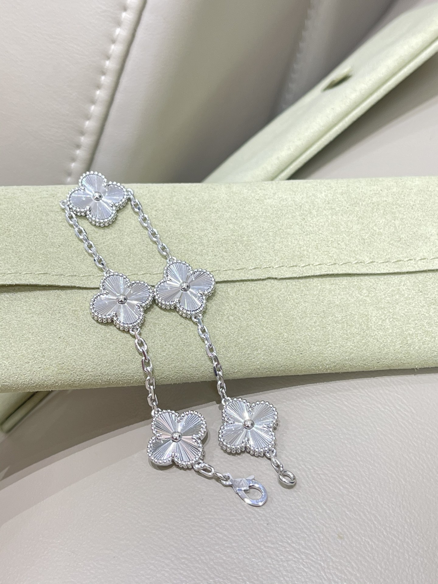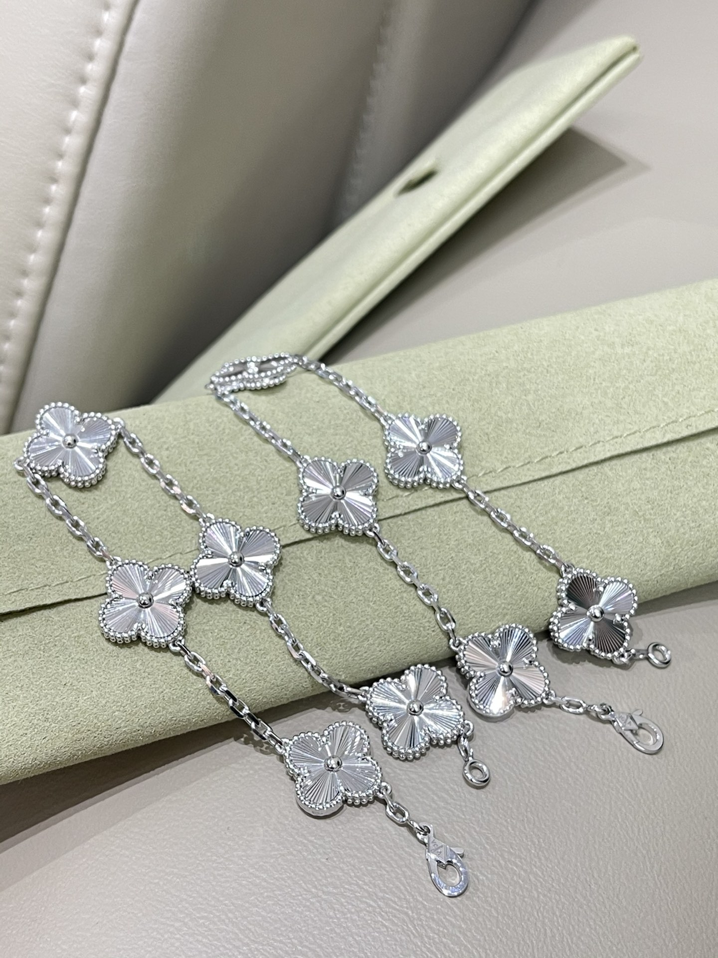 This jewelry is AAAAA 1:1 quality (superb). Materials used are identical to the original ones. Van Cleef & Arpels trademark marks are indistinguishable to the authentic. Photos take by actual jewelry, what you receive will be 100% same with our photos.