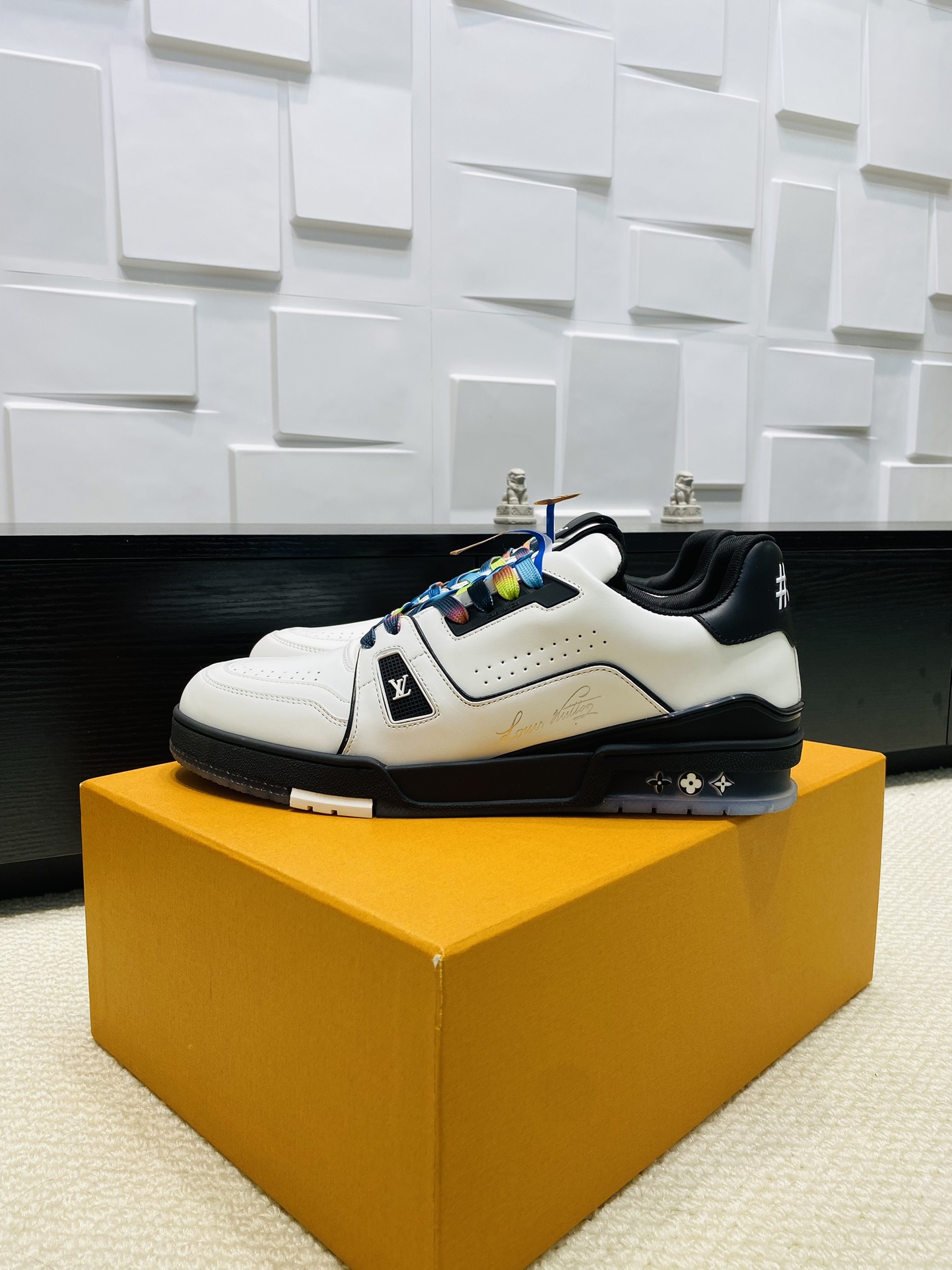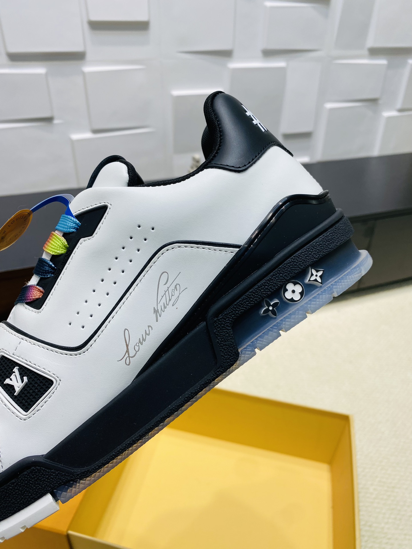 This shoes is AAAAA 1:1 quality (superb). Materials used are identical to the original ones. Louis Vuitton trademark marks are indistinguishable to the authentic. Photos take by actual shoes, what you receive will be 100% same with our photos.