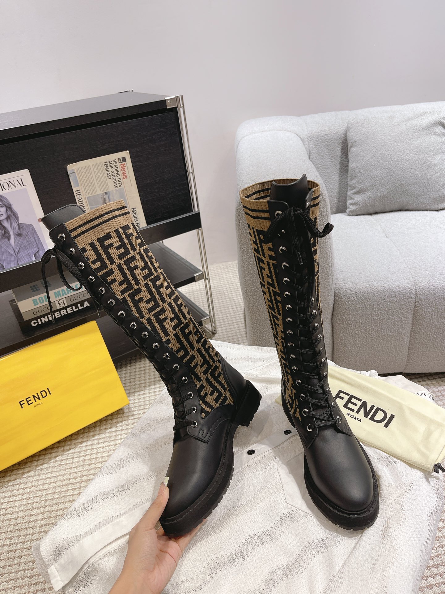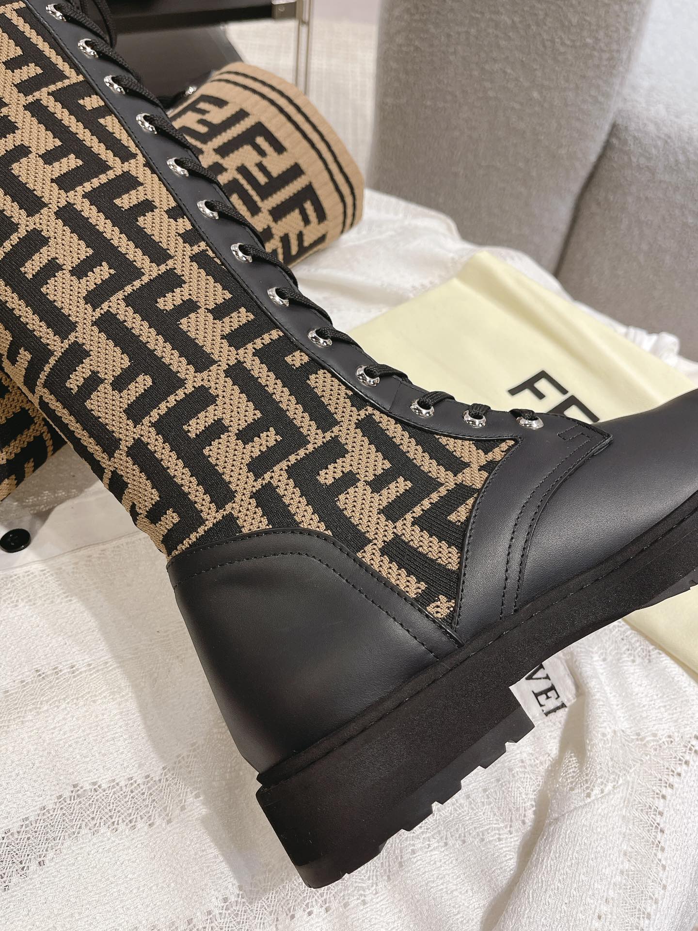 This shoes is AAAAA 1:1 quality (superb). Materials used are identical to the original ones. Fendi trademark marks are indistinguishable to the authentic. Photos take by actual shoes, what you receive will be 100% same with our photos.