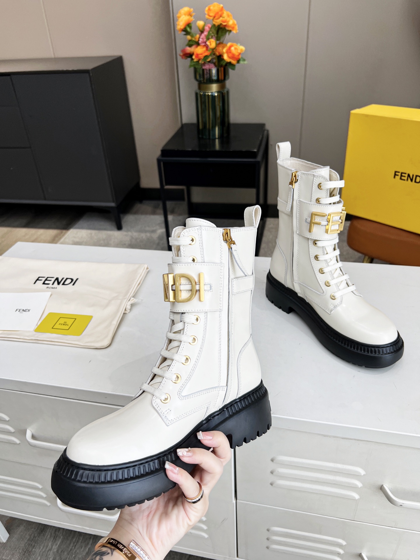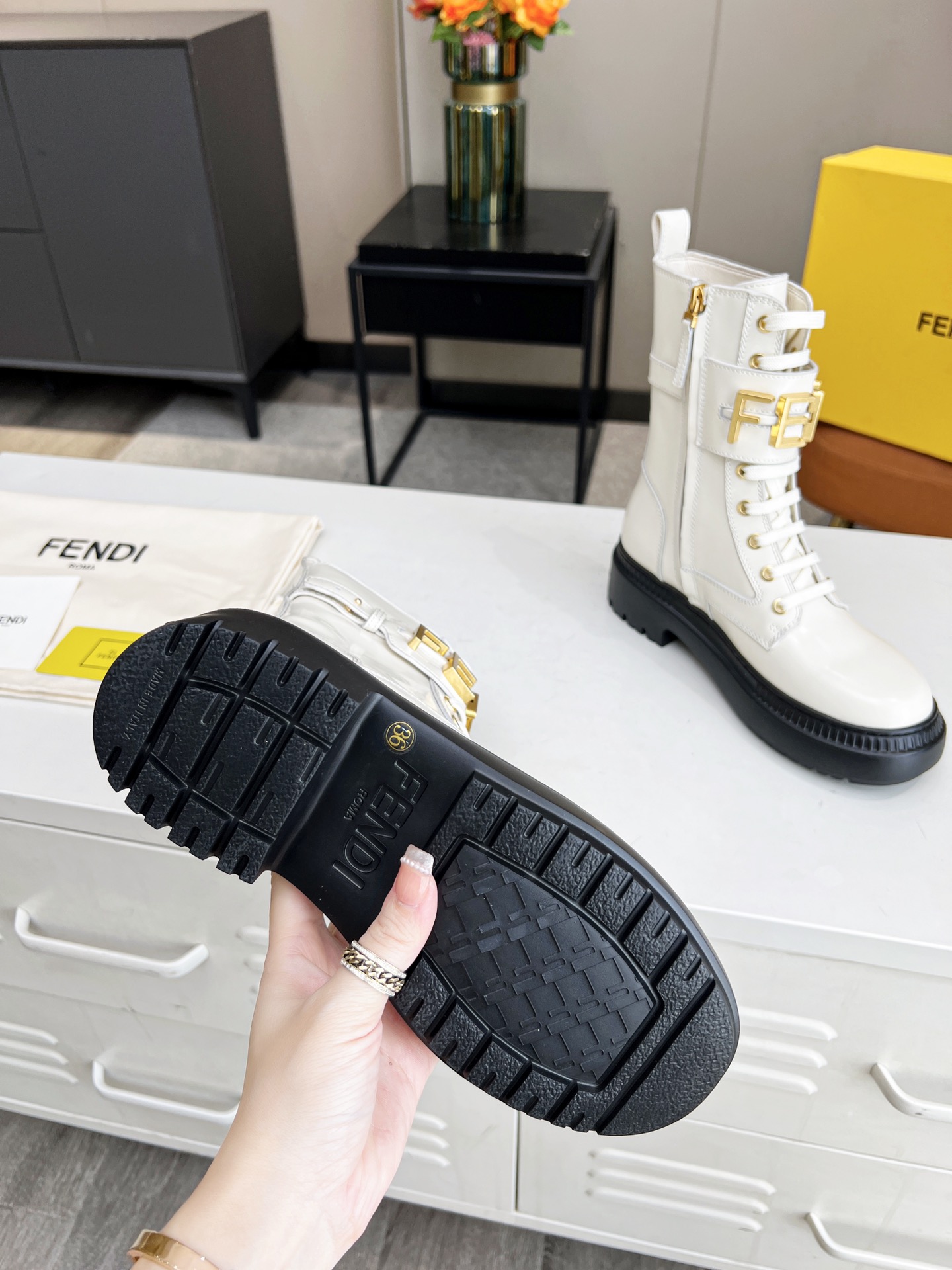 This shoes is AAAAA 1:1 quality (superb). Materials used are identical to the original ones. Fendi trademark marks are indistinguishable to the authentic. Photos take by actual shoes, what you receive will be 100% same with our photos.