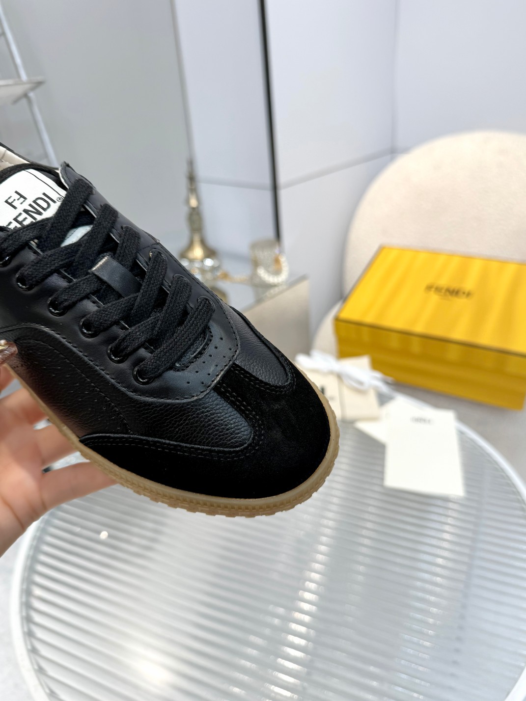 This shoes is AAAAA 1:1 quality (superb). Materials used are identical to the original ones. Fendi trademark marks are indistinguishable to the authentic. Photos take by actual shoes, what you receive will be 100% same with our photos.