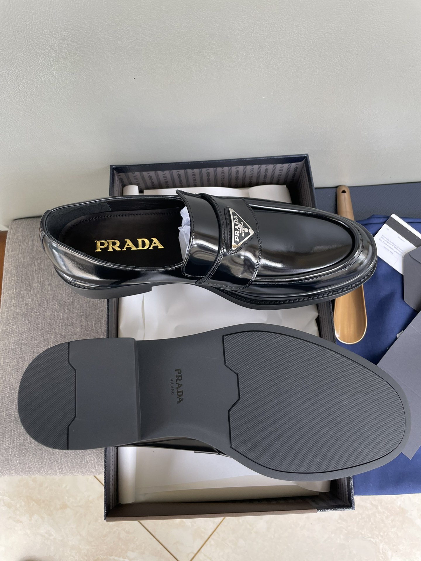 This shoes is AAAAA 1:1 quality (superb). Materials used are identical to the original ones. Prada trademark marks are indistinguishable to the authentic. Photos take by actual shoes, what you receive will be 100% same with our photos.