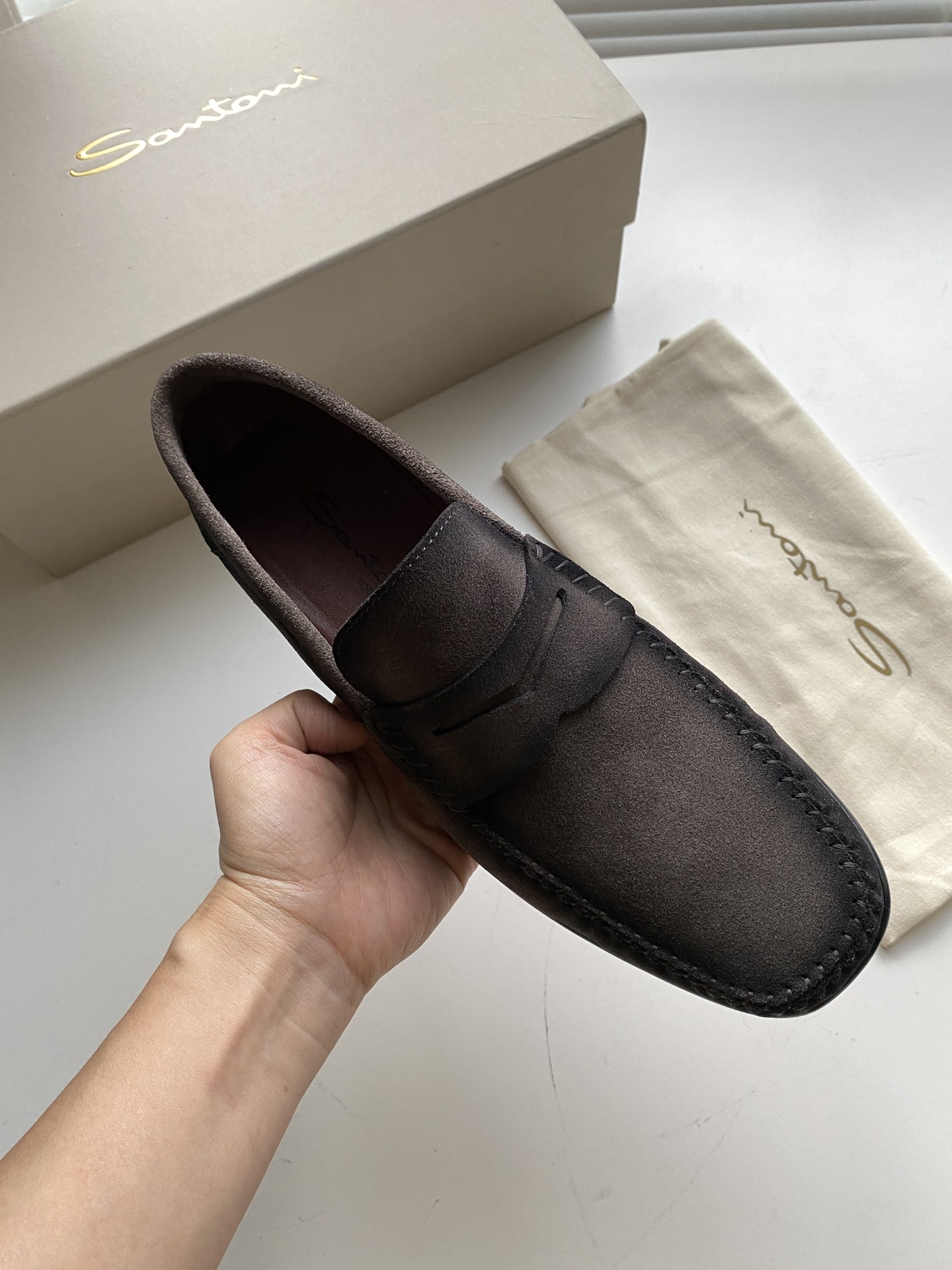 This shoes is AAAAA 1:1 quality (superb). Materials used are identical to the original ones. Santoni trademark marks are indistinguishable to the authentic. Photos take by actual shoes, what you receive will be 100% same with our photos.