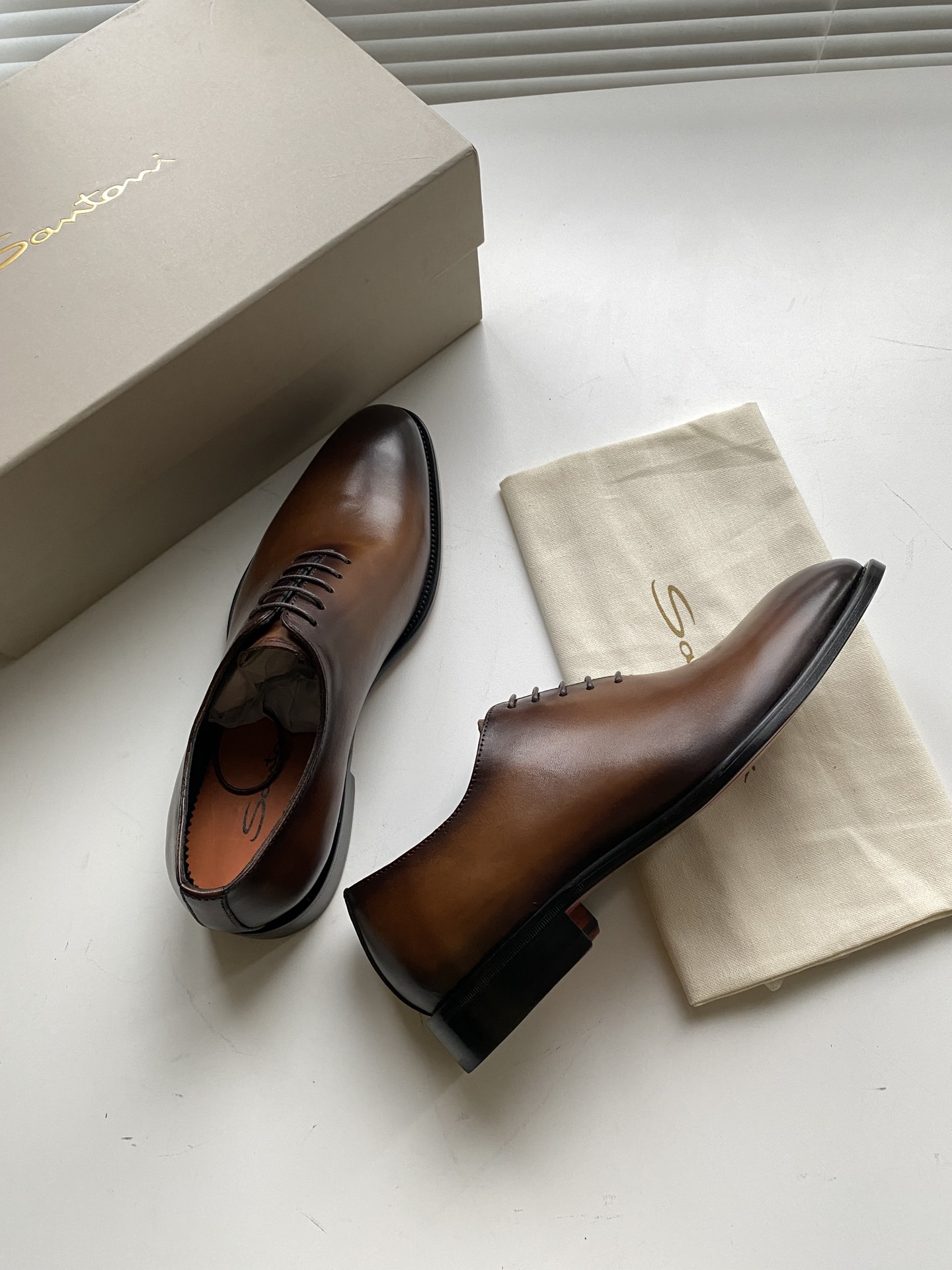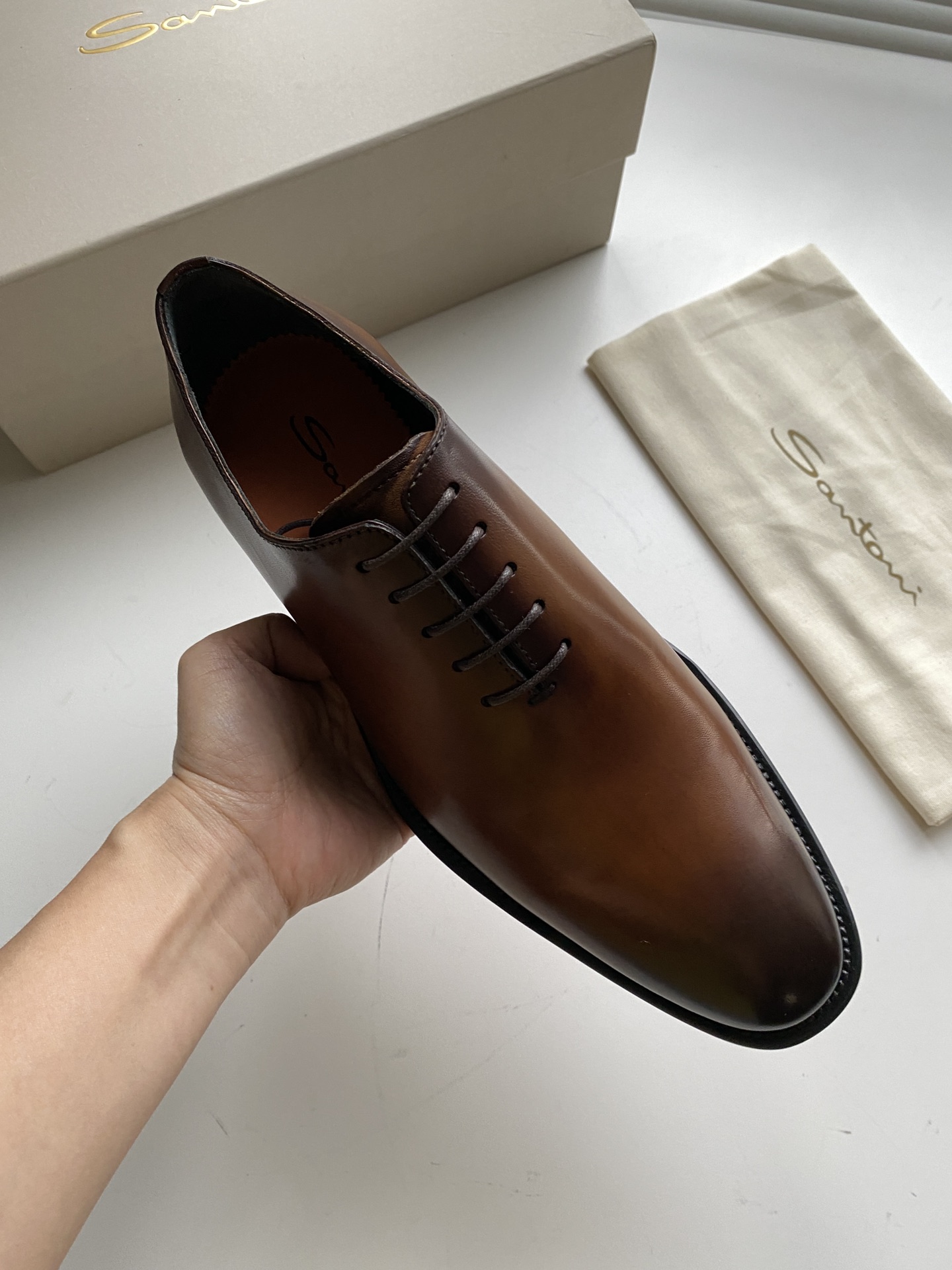 This shoes is AAAAA 1:1 quality (superb). Materials used are identical to the original ones. Santoni trademark marks are indistinguishable to the authentic. Photos take by actual shoes, what you receive will be 100% same with our photos.
