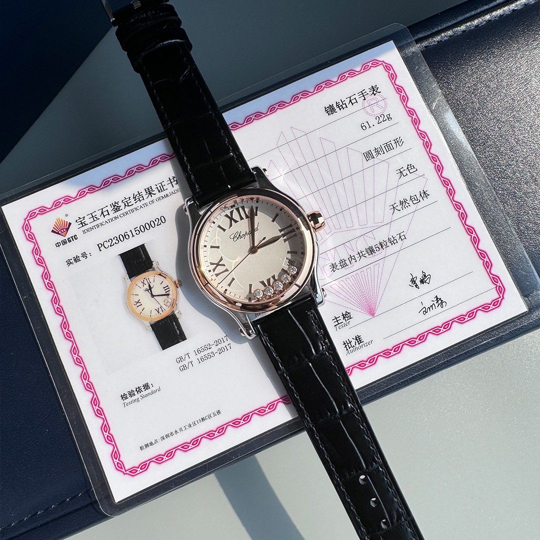 This watches is AAAAA 1:1 quality (superb). Materials used are identical to the original ones. Chopard trademark marks are indistinguishable to the authentic. Photos take by actual watches, what you receive will be 100% same with our photos.