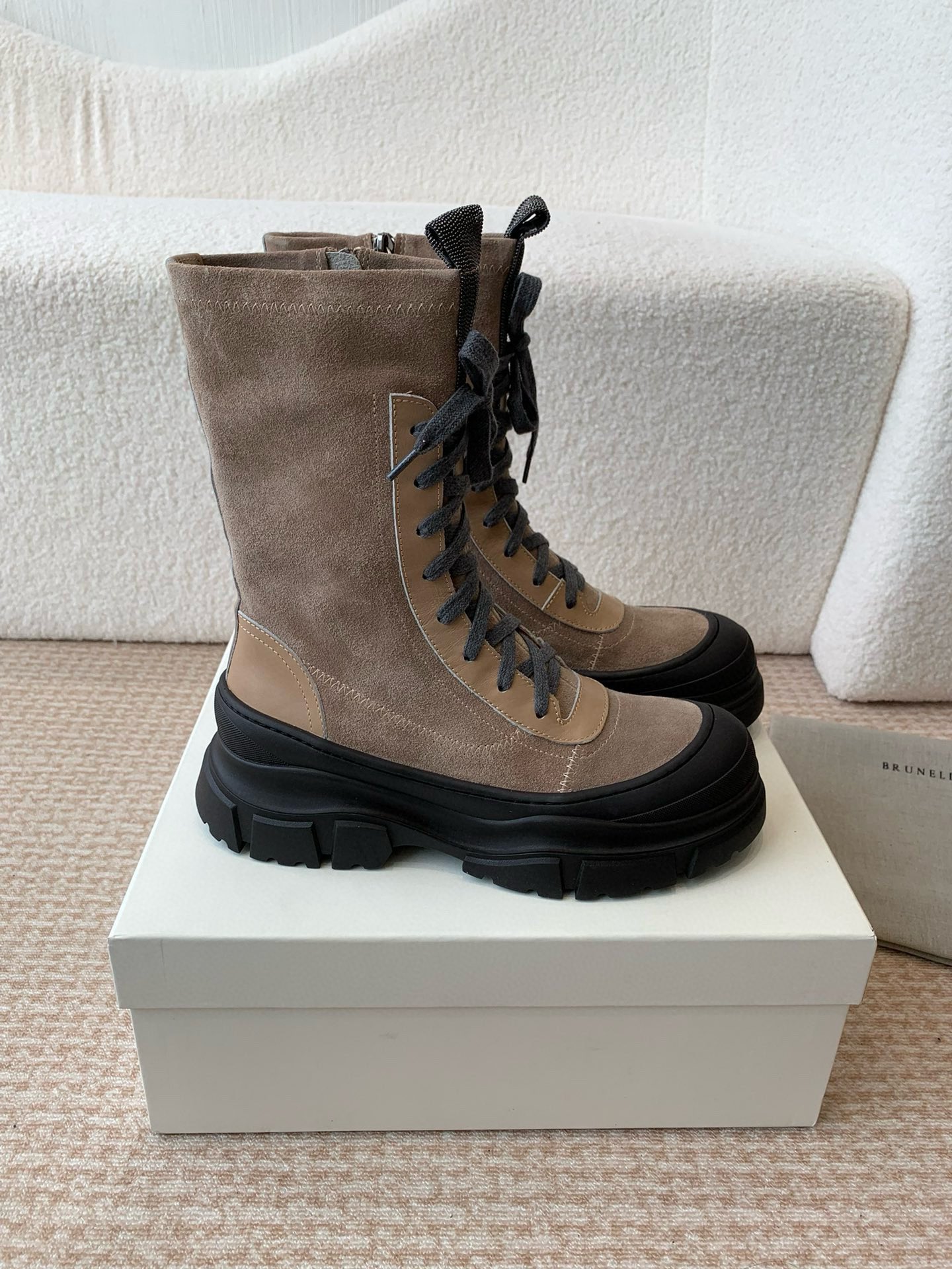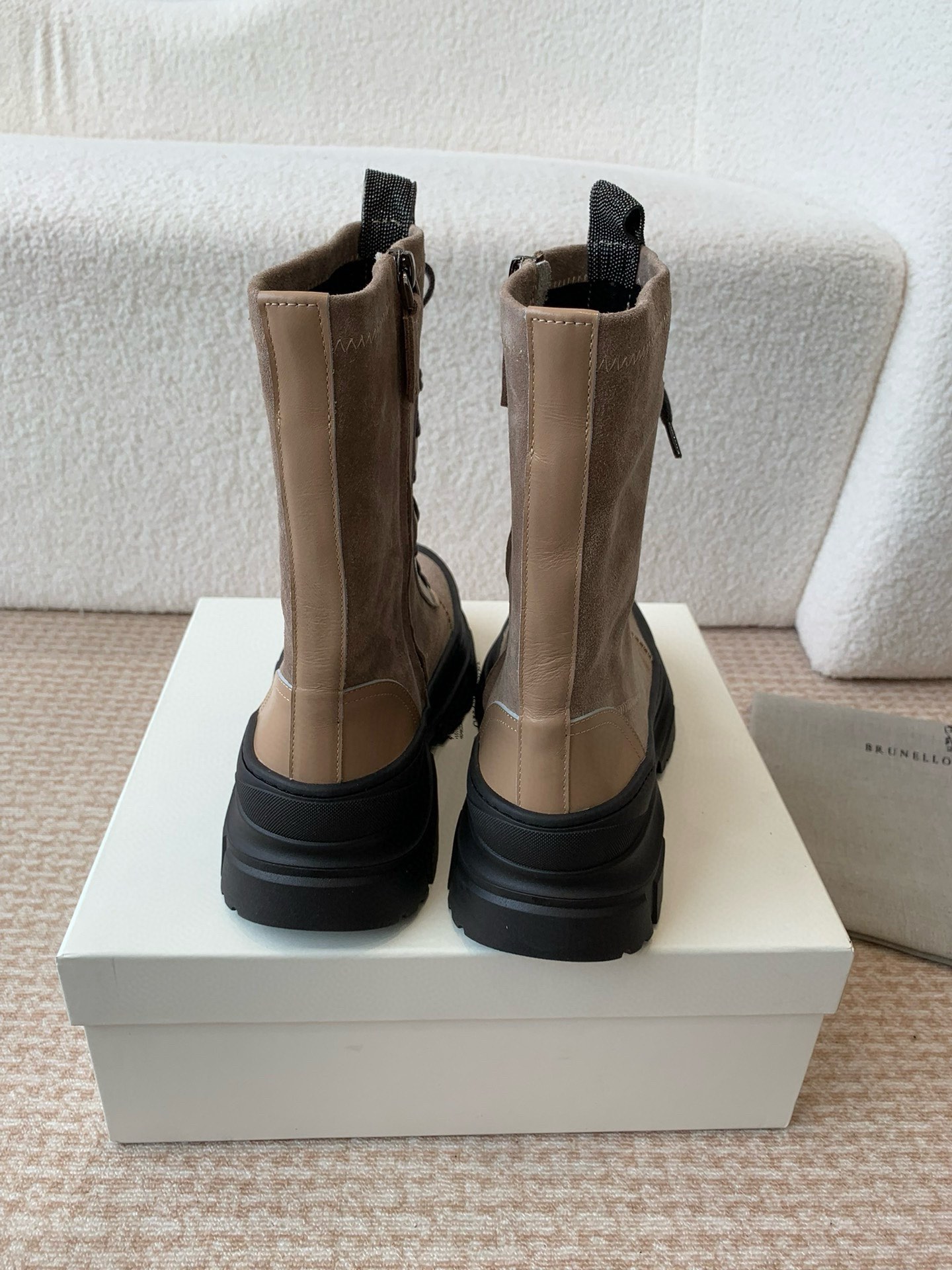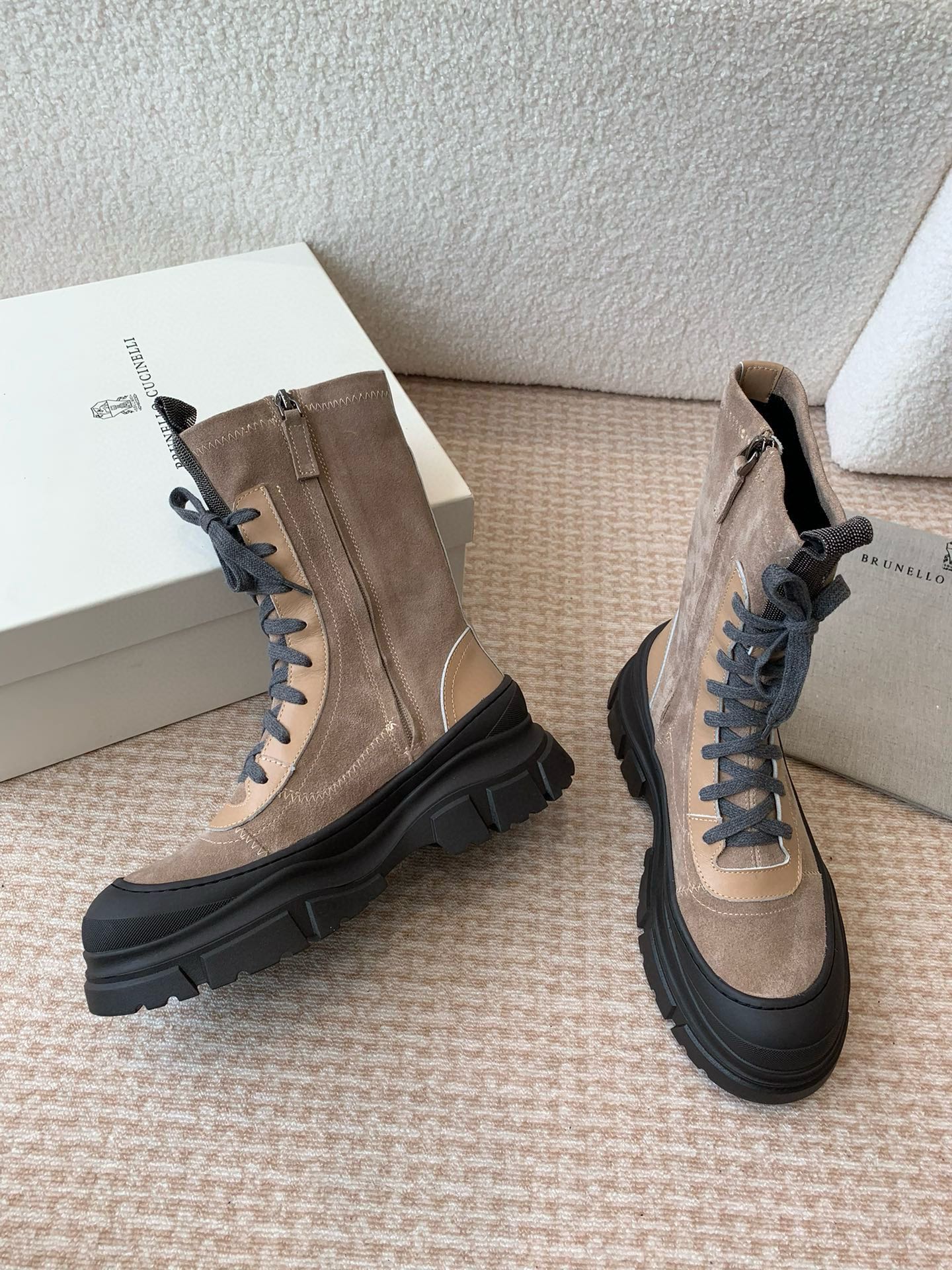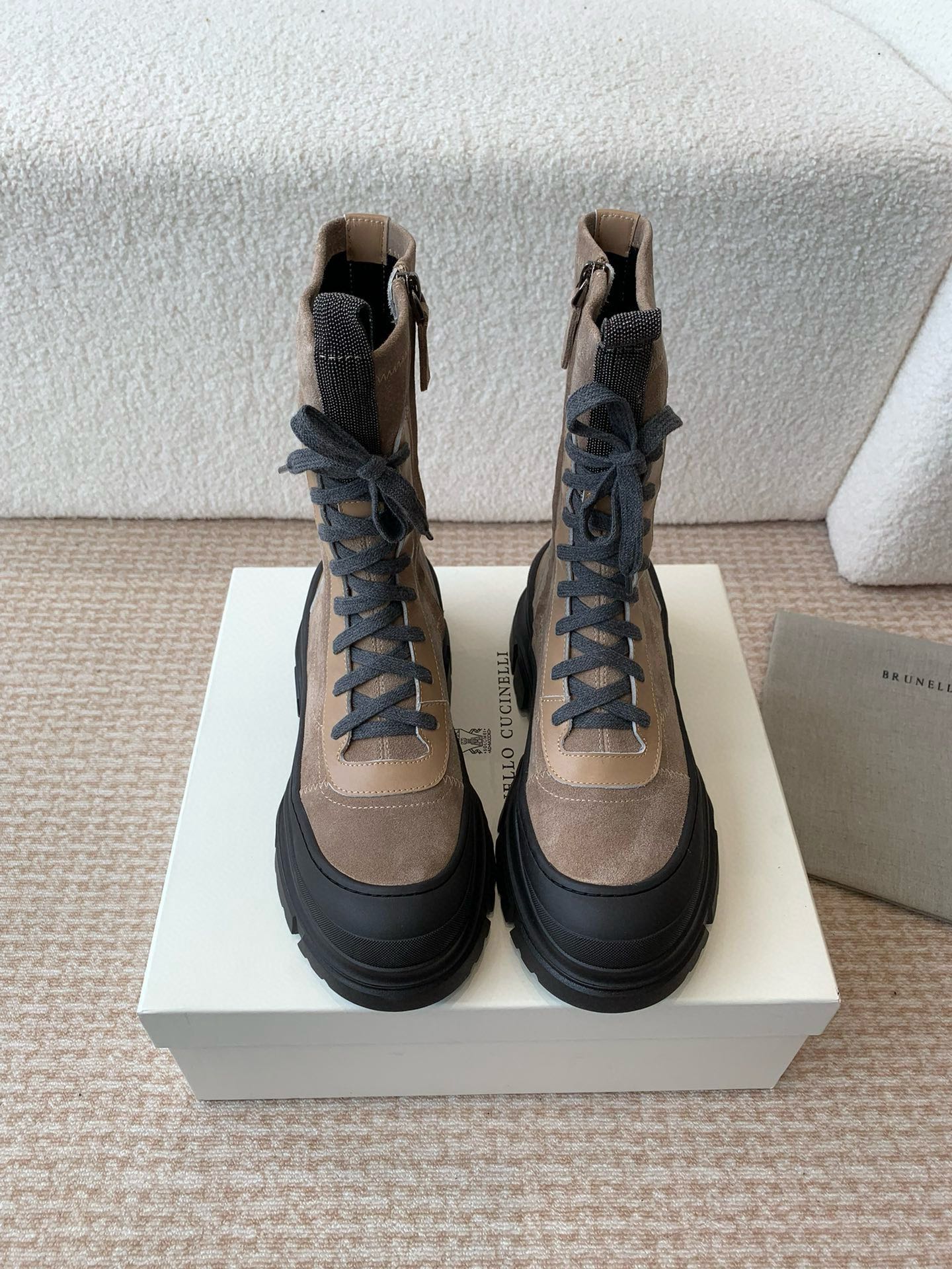 This shoes is AAAAA 1:1 quality (superb). Materials used are identical to the original ones. Brunello Cucinelli trademark marks are indistinguishable to the authentic. Photos take by actual shoes, what you receive will be 100% same with our photos.