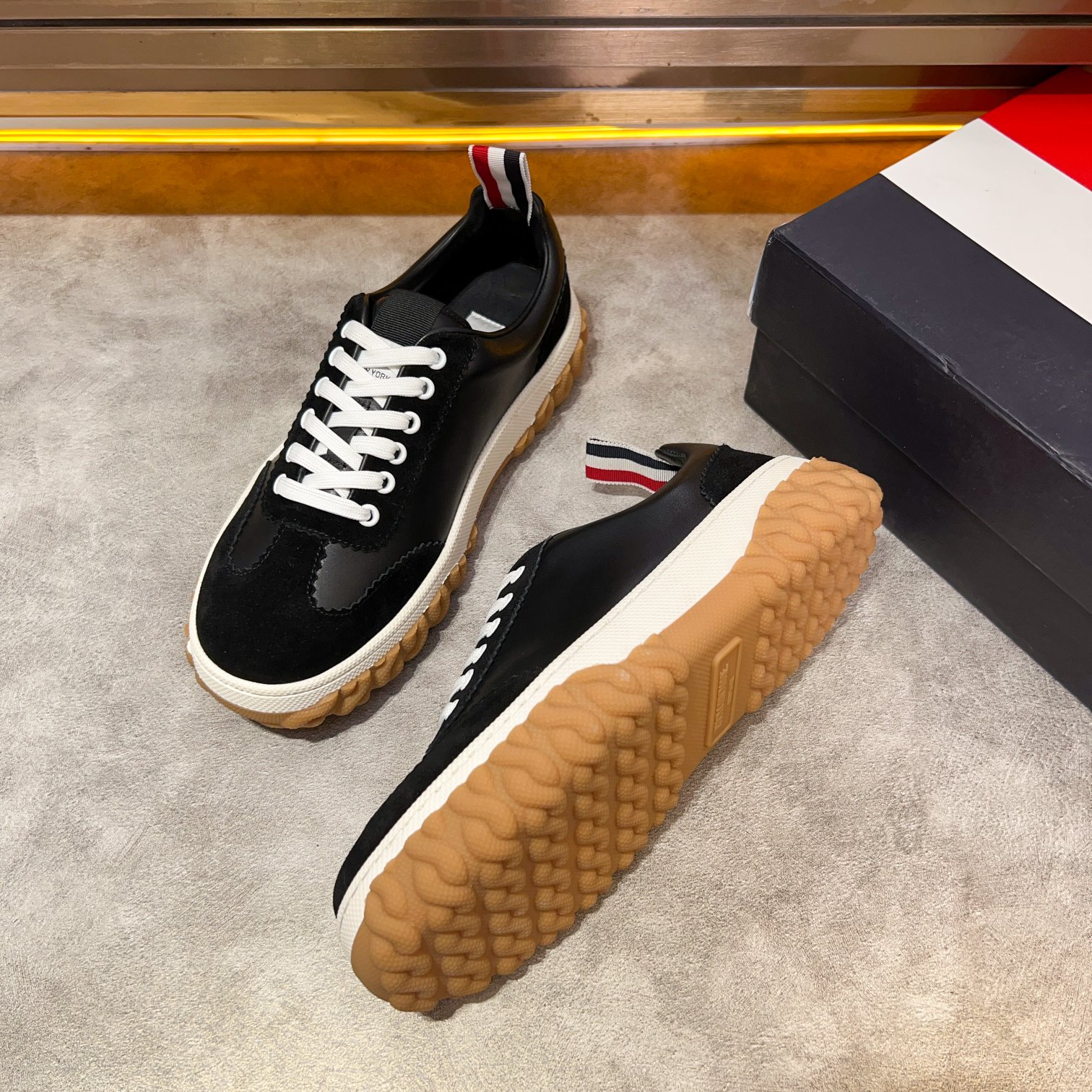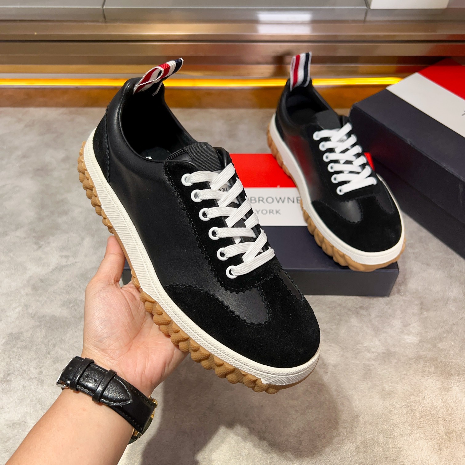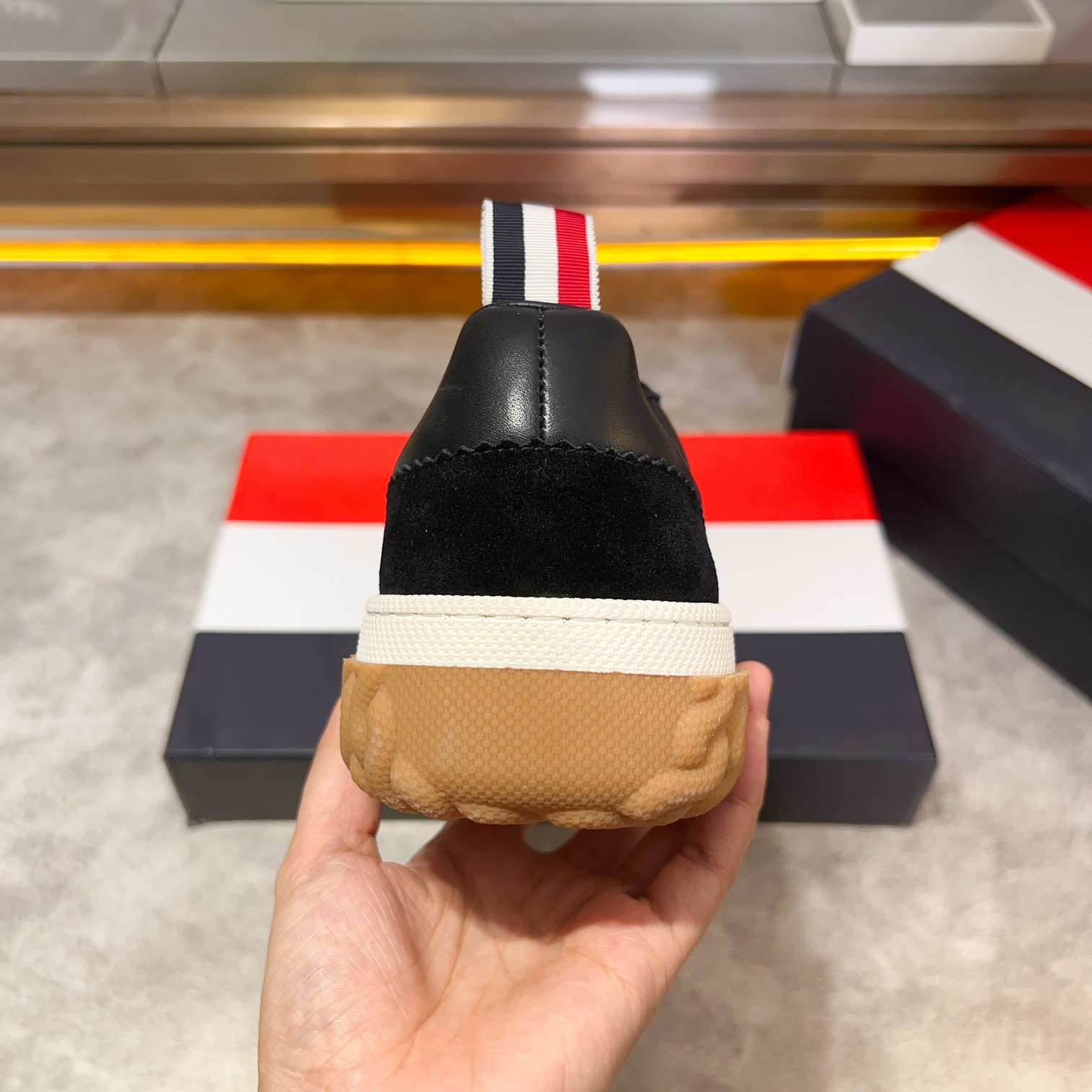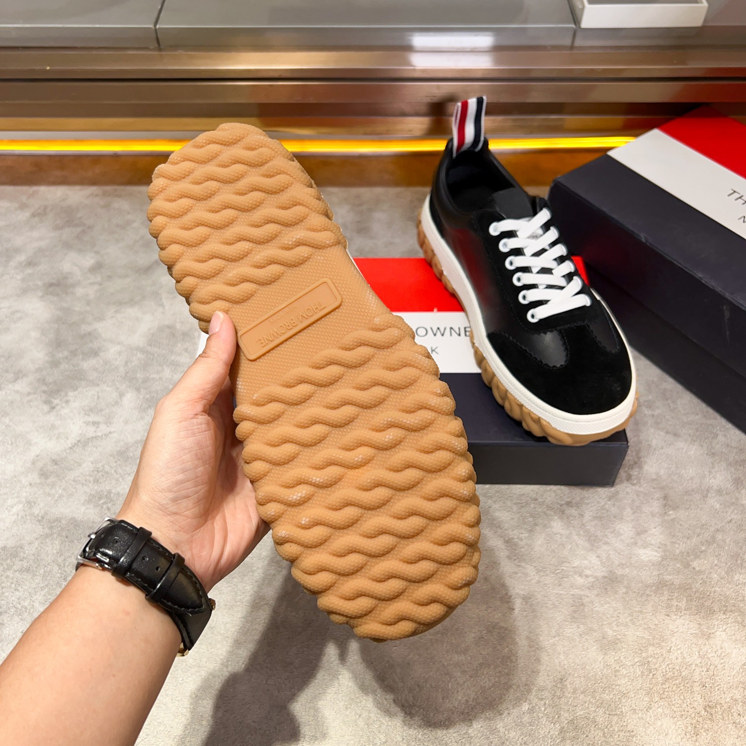 This shoes is AAAAA 1:1 quality (superb). Materials used are identical to the original ones. Thom Browne trademark marks are indistinguishable to the authentic. Photos take by actual shoes, what you receive will be 100% same with our photos.