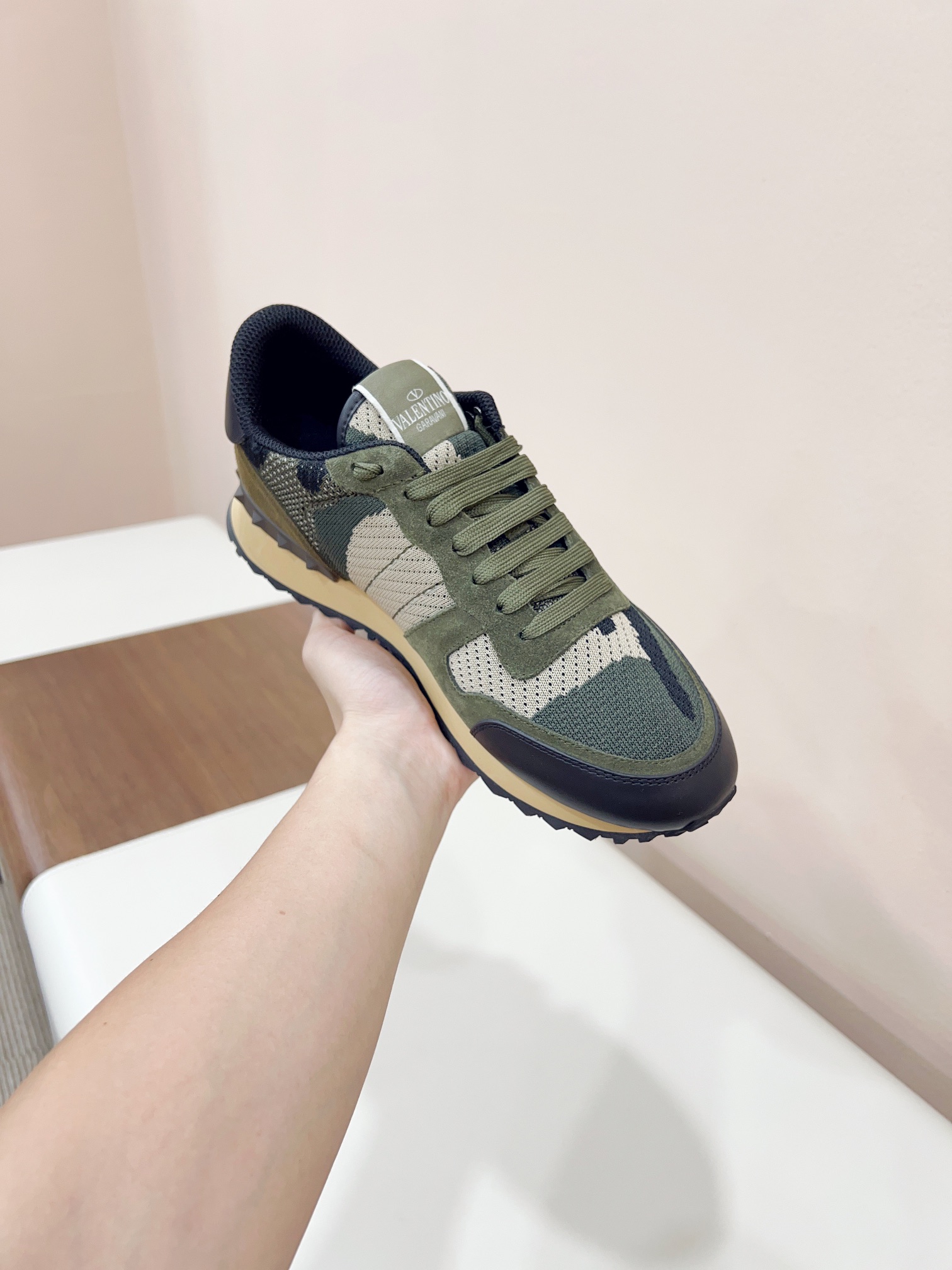 This shoes is AAAAA 1:1 quality (superb). Materials used are identical to the original ones. Valentino trademark marks are indistinguishable to the authentic. Photos take by actual shoes, what you receive will be 100% same with our photos.