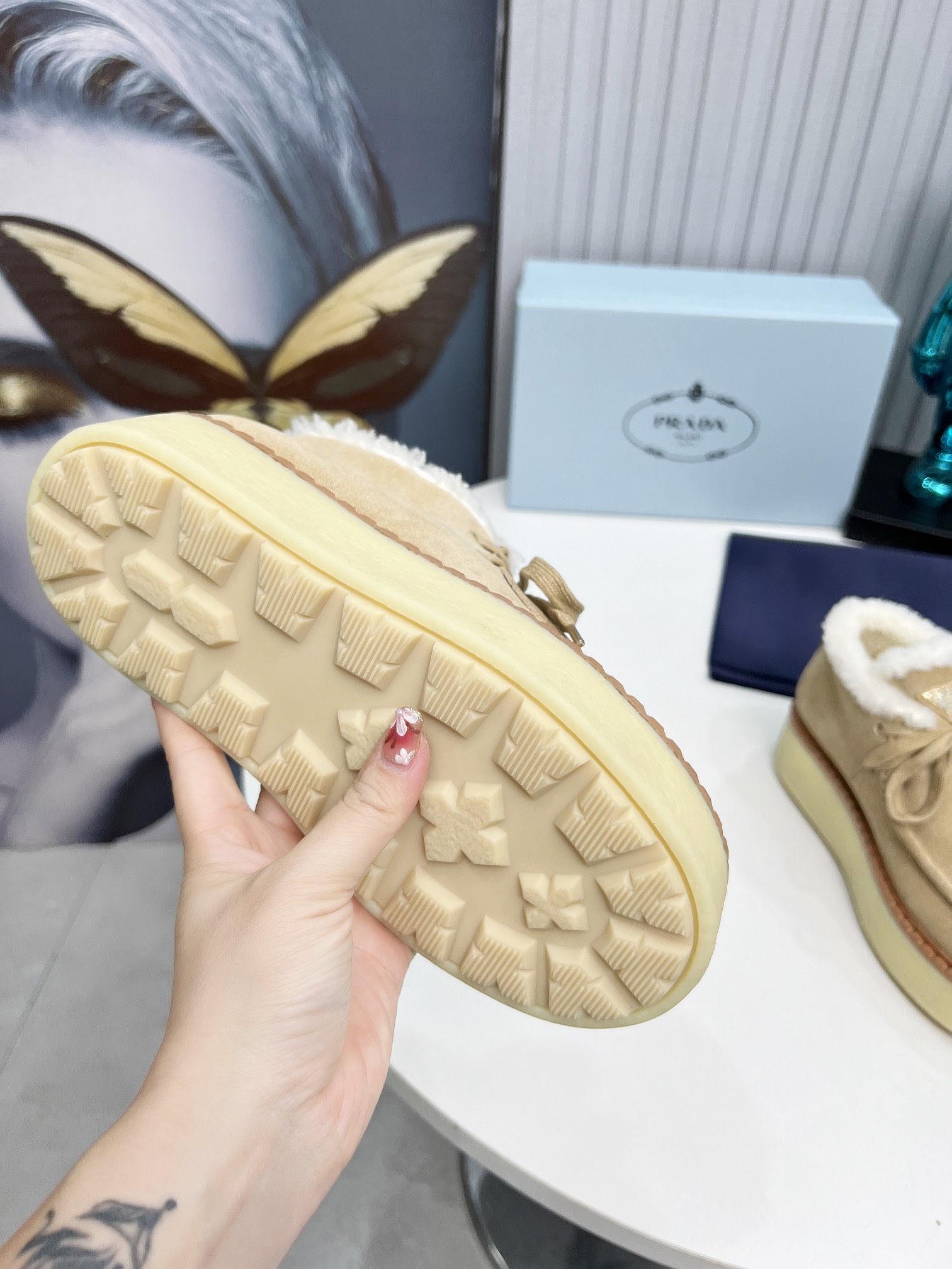 This shoes is AAAAA 1:1 quality (superb). Materials used are identical to the original ones. Prada trademark marks are indistinguishable to the authentic. Photos take by actual shoes, what you receive will be 100% same with our photos.