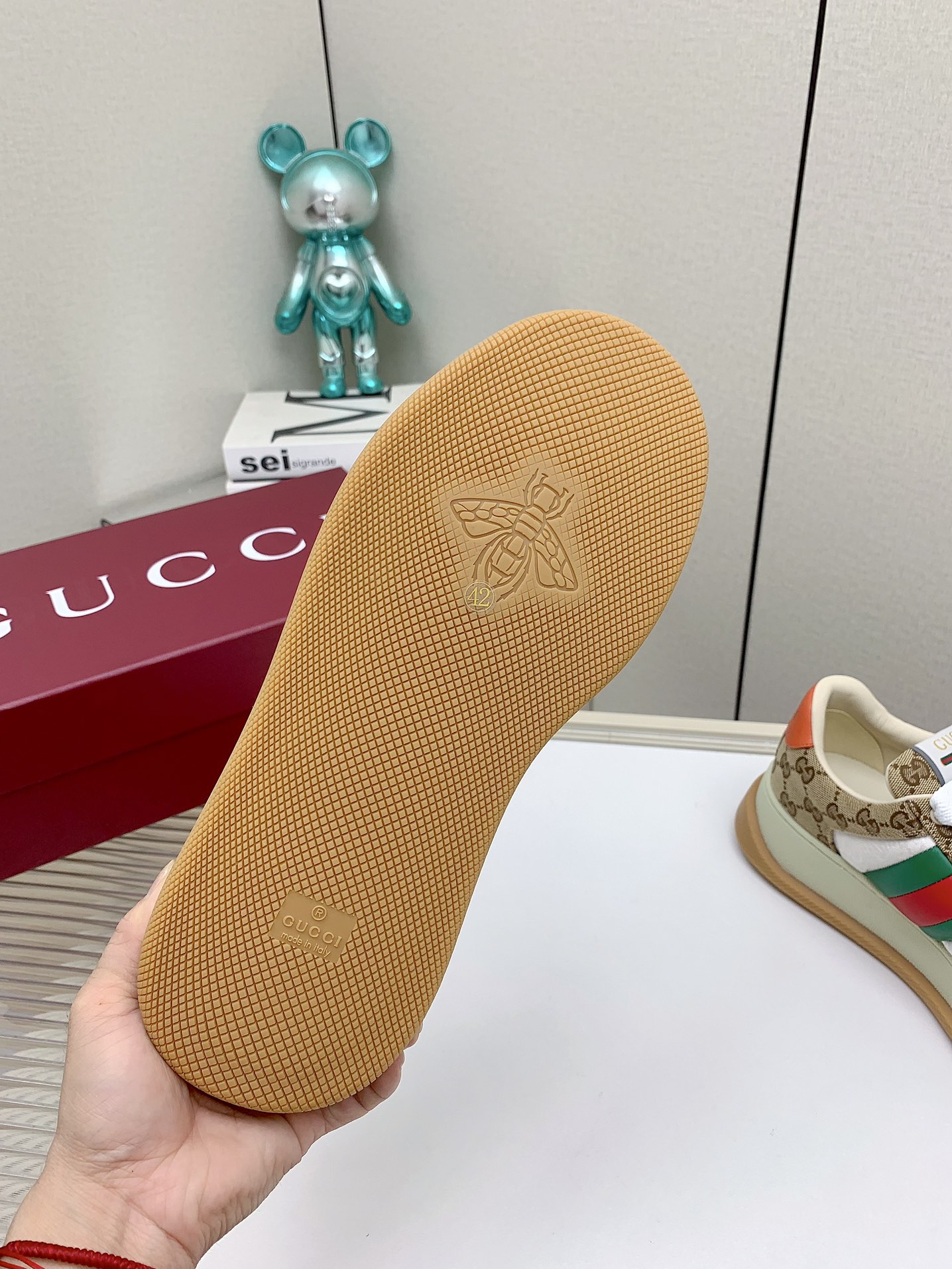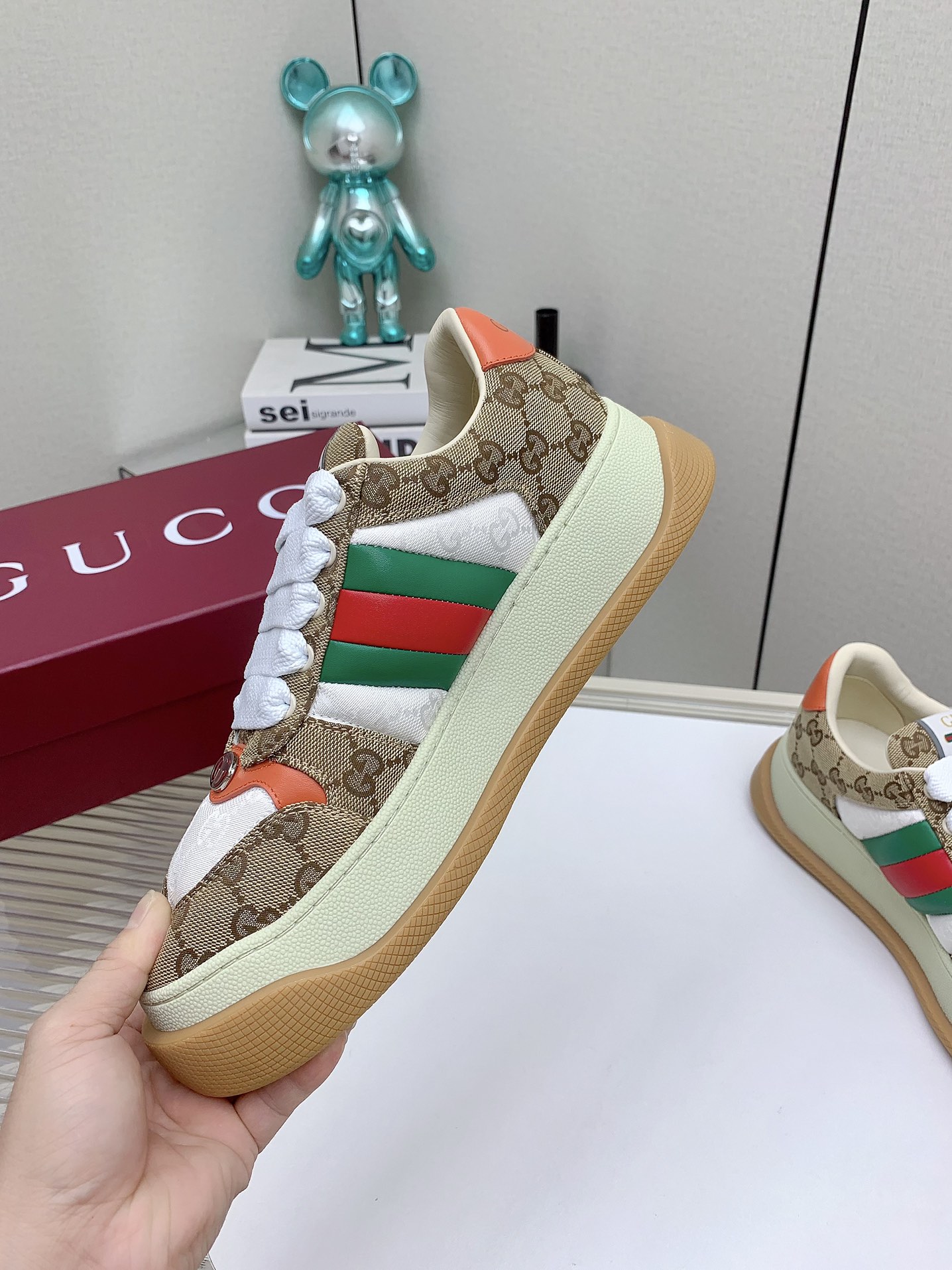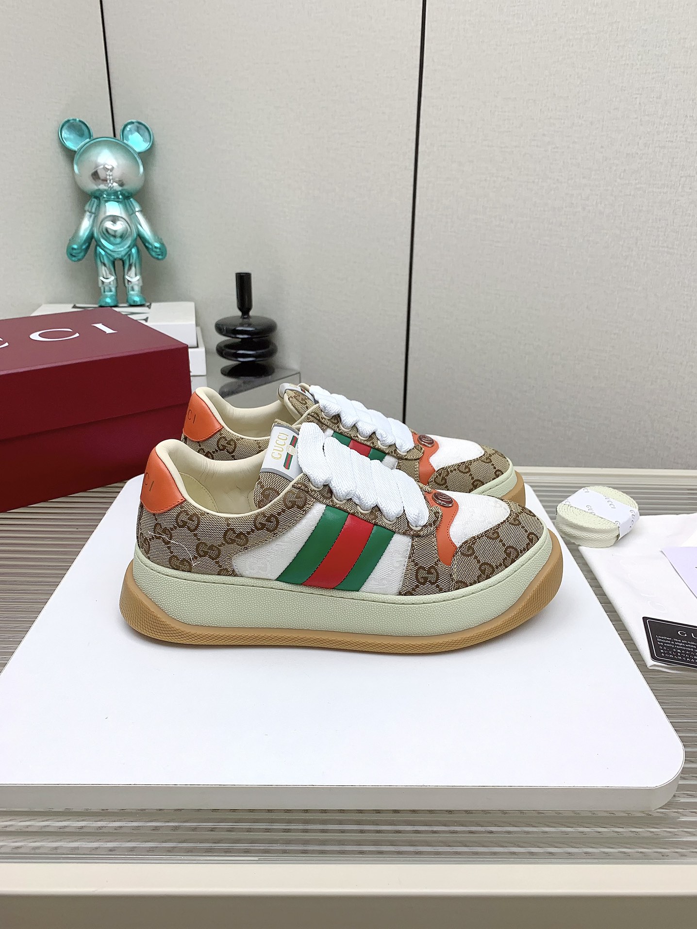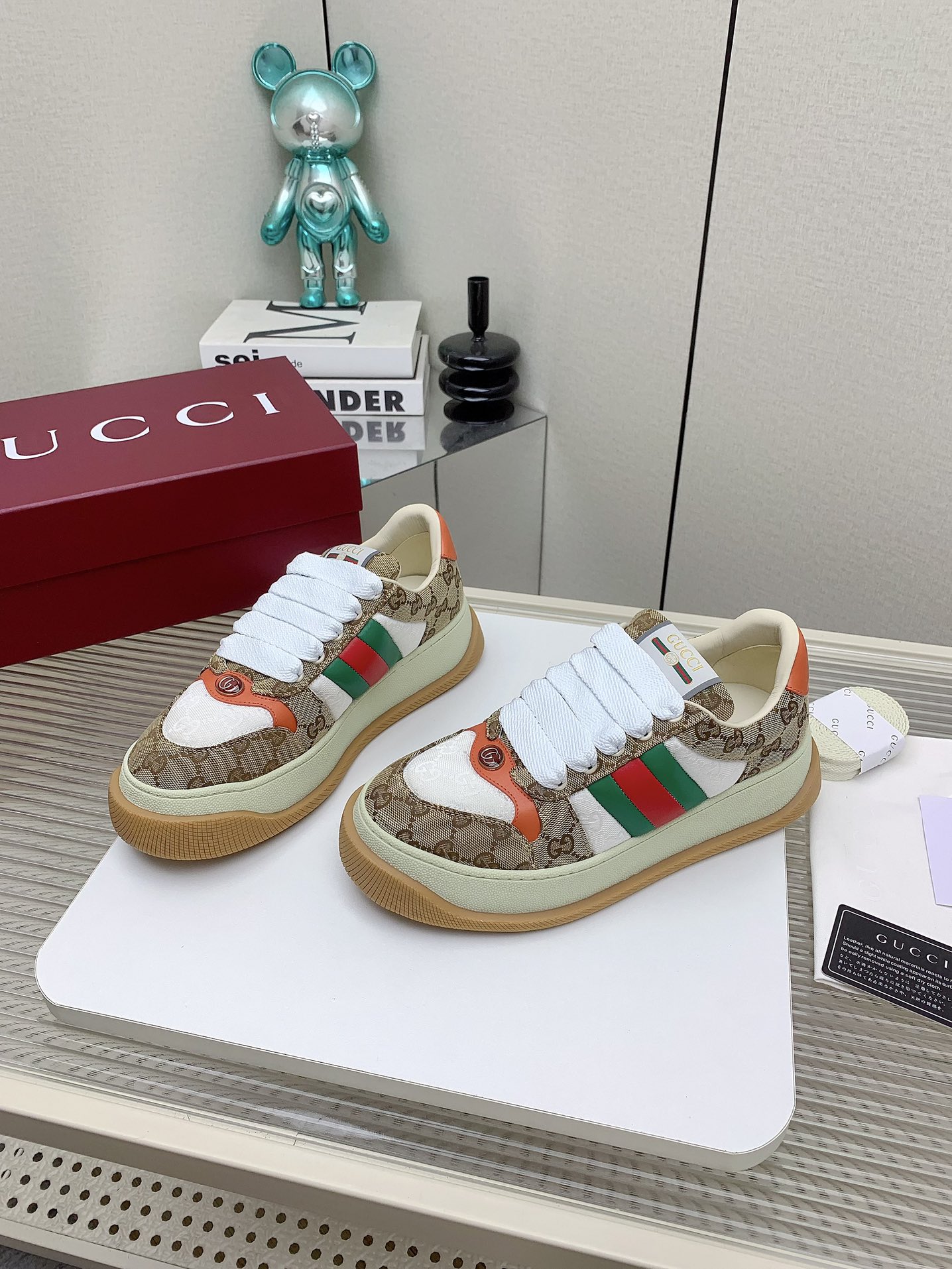 This shoes is AAAAA 1:1 quality (superb). Materials used are identical to the original ones. Gucci trademark marks are indistinguishable to the authentic. Photos take by actual shoes, what you receive will be 100% same with our photos.