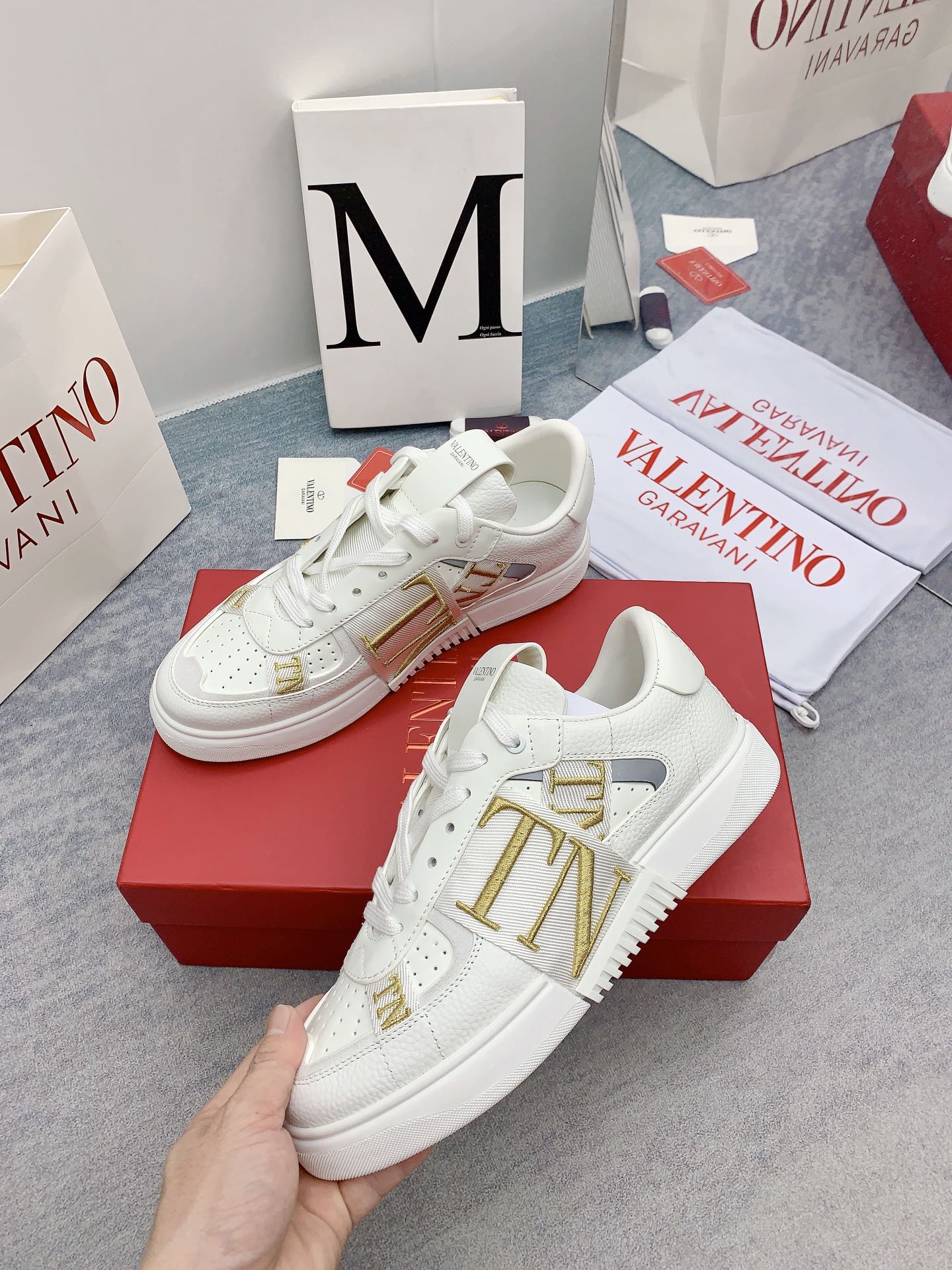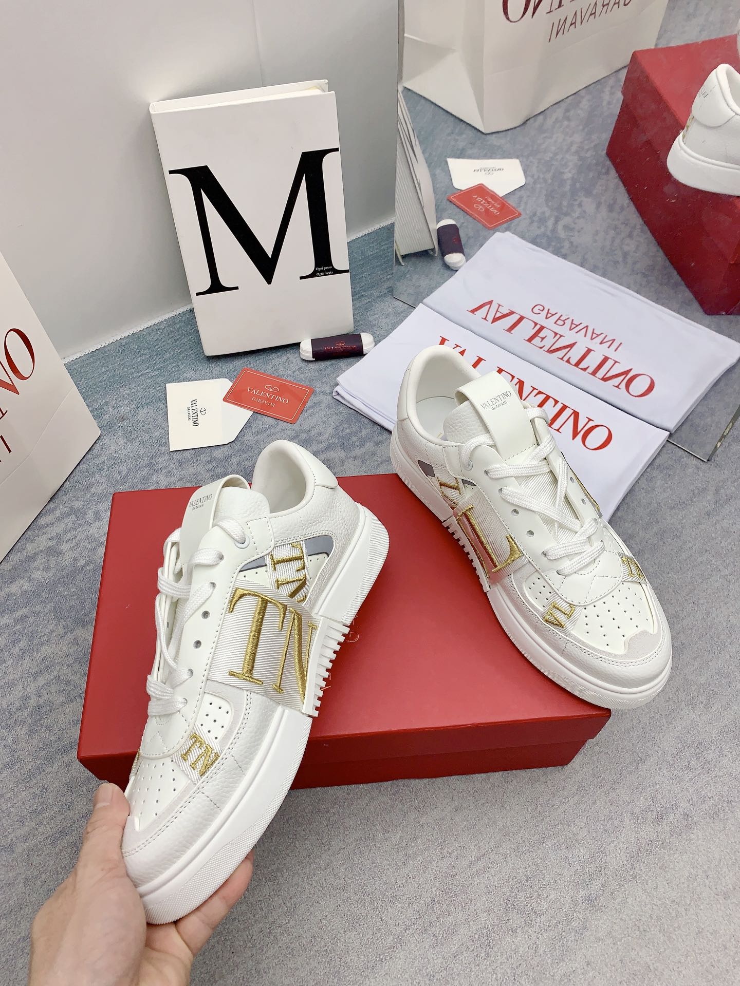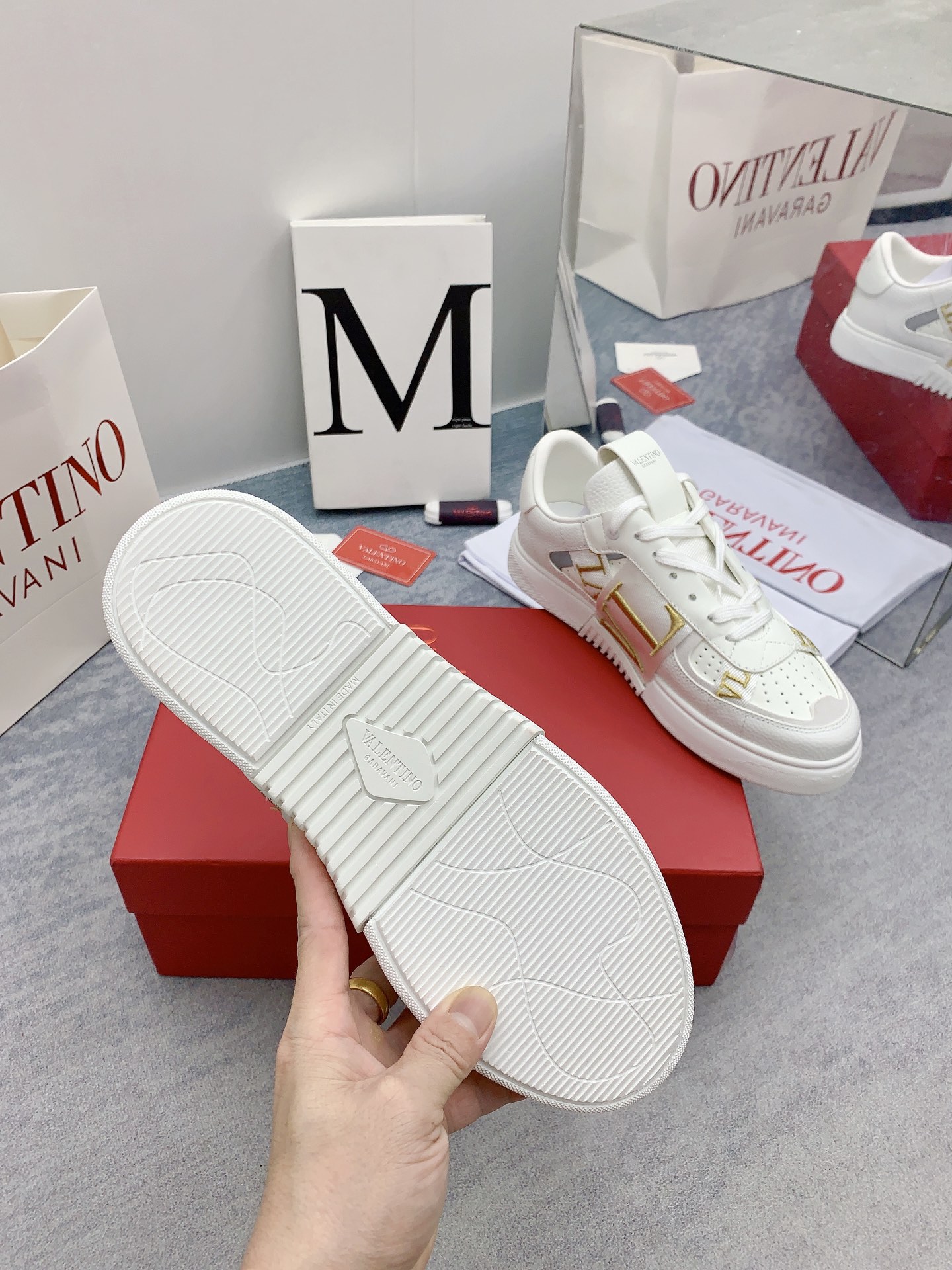 This shoes is AAAAA 1:1 quality (superb). Materials used are identical to the original ones. Valentino trademark marks are indistinguishable to the authentic. Photos take by actual shoes, what you receive will be 100% same with our photos.