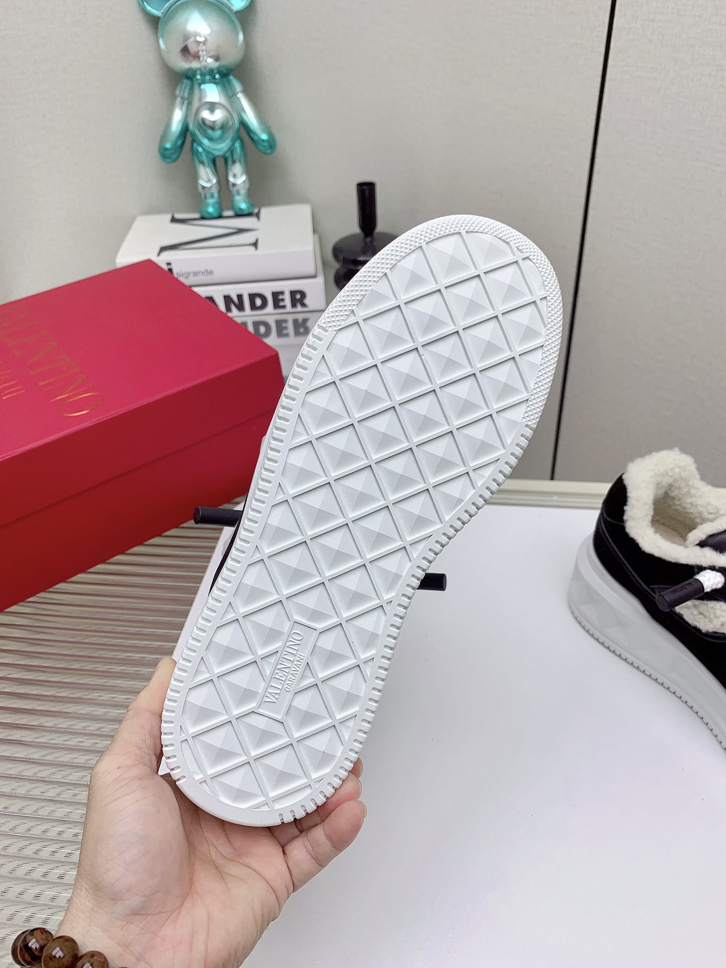 This shoes is AAAAA 1:1 quality (superb). Materials used are identical to the original ones. Valentino trademark marks are indistinguishable to the authentic. Photos take by actual shoes, what you receive will be 100% same with our photos.