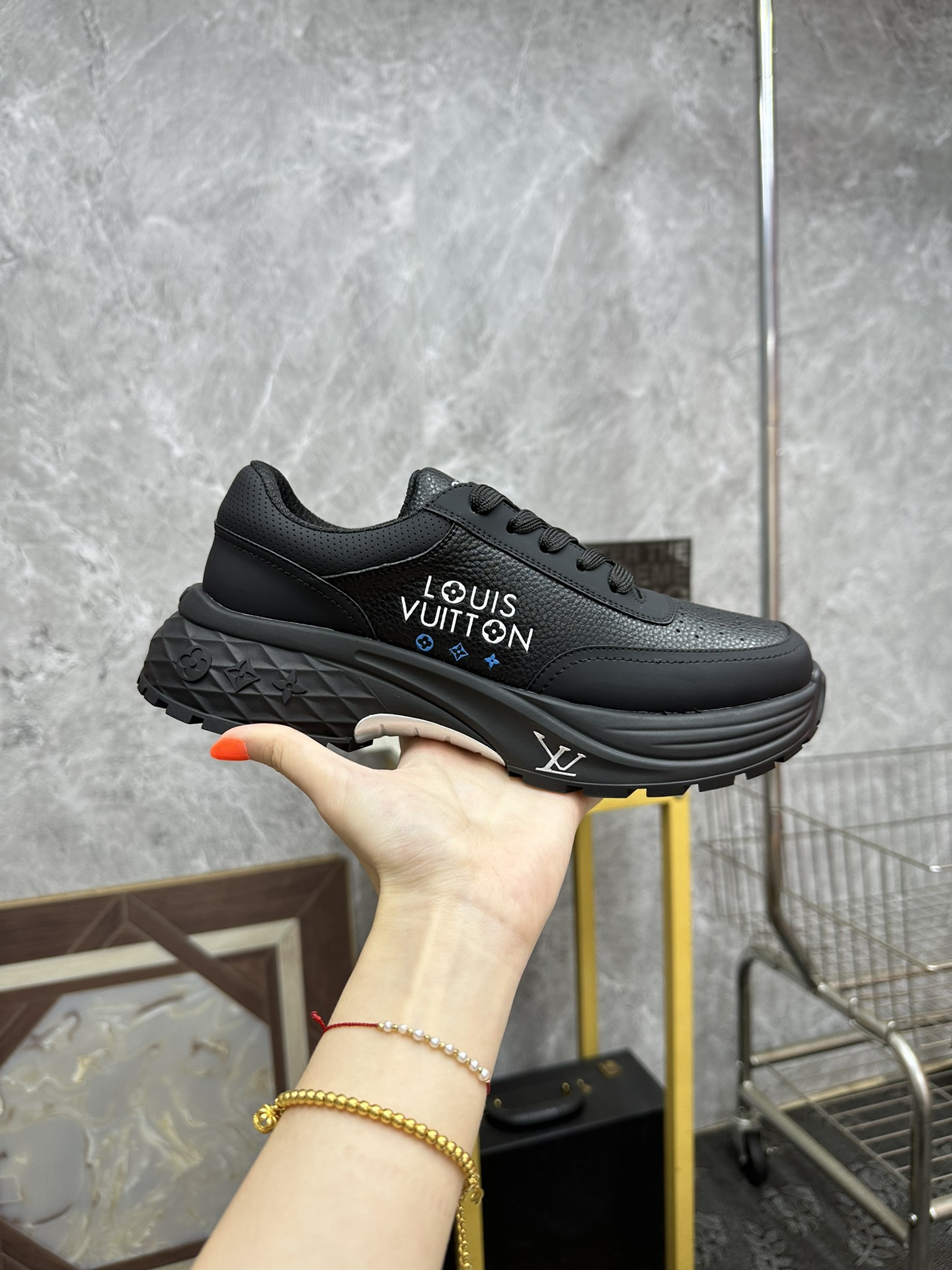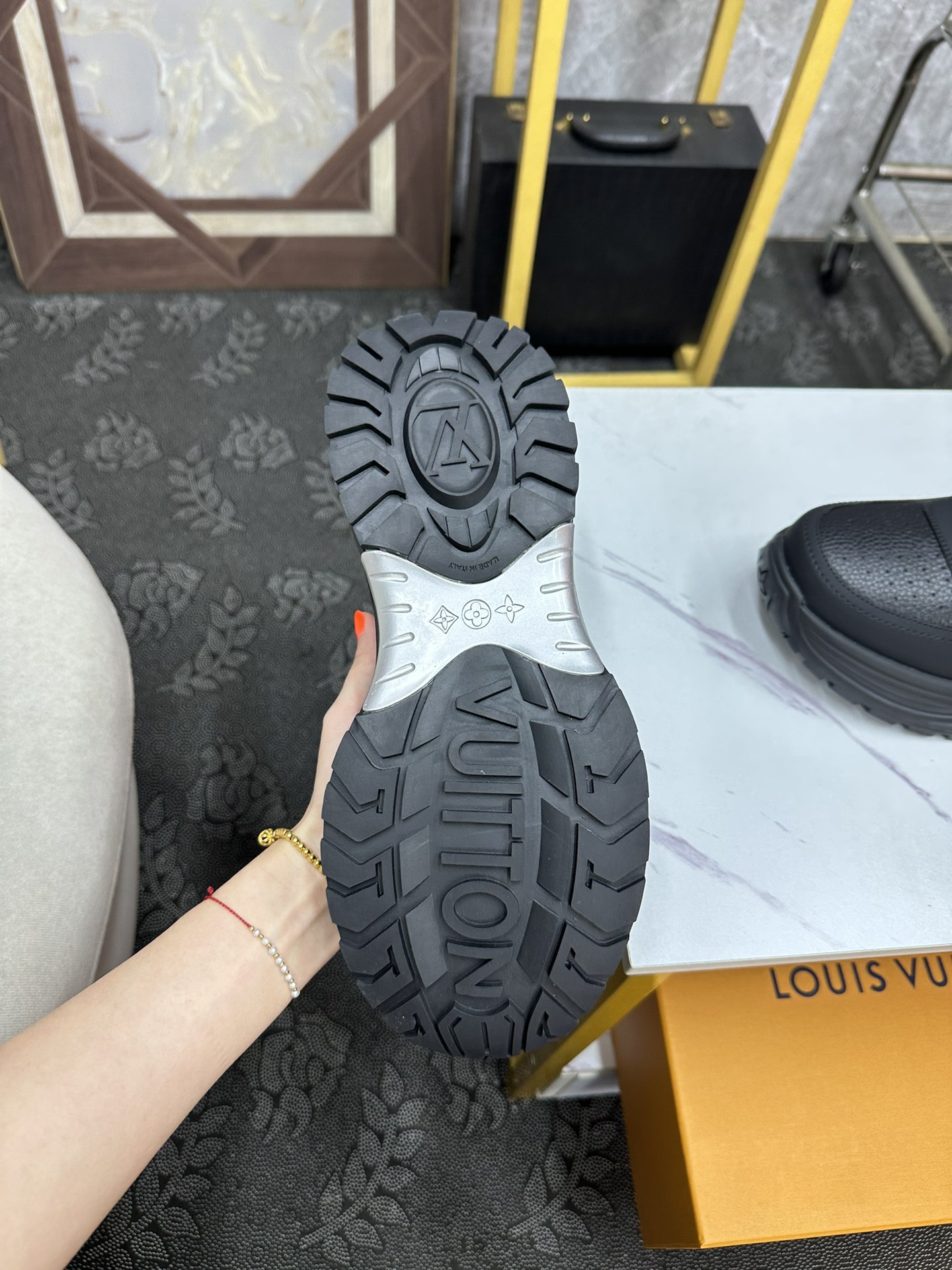 This shoes is AAAAA 1:1 quality (superb). Materials used are identical to the original ones. Louis Vuitton trademark marks are indistinguishable to the authentic. Photos take by actual shoes, what you receive will be 100% same with our photos.