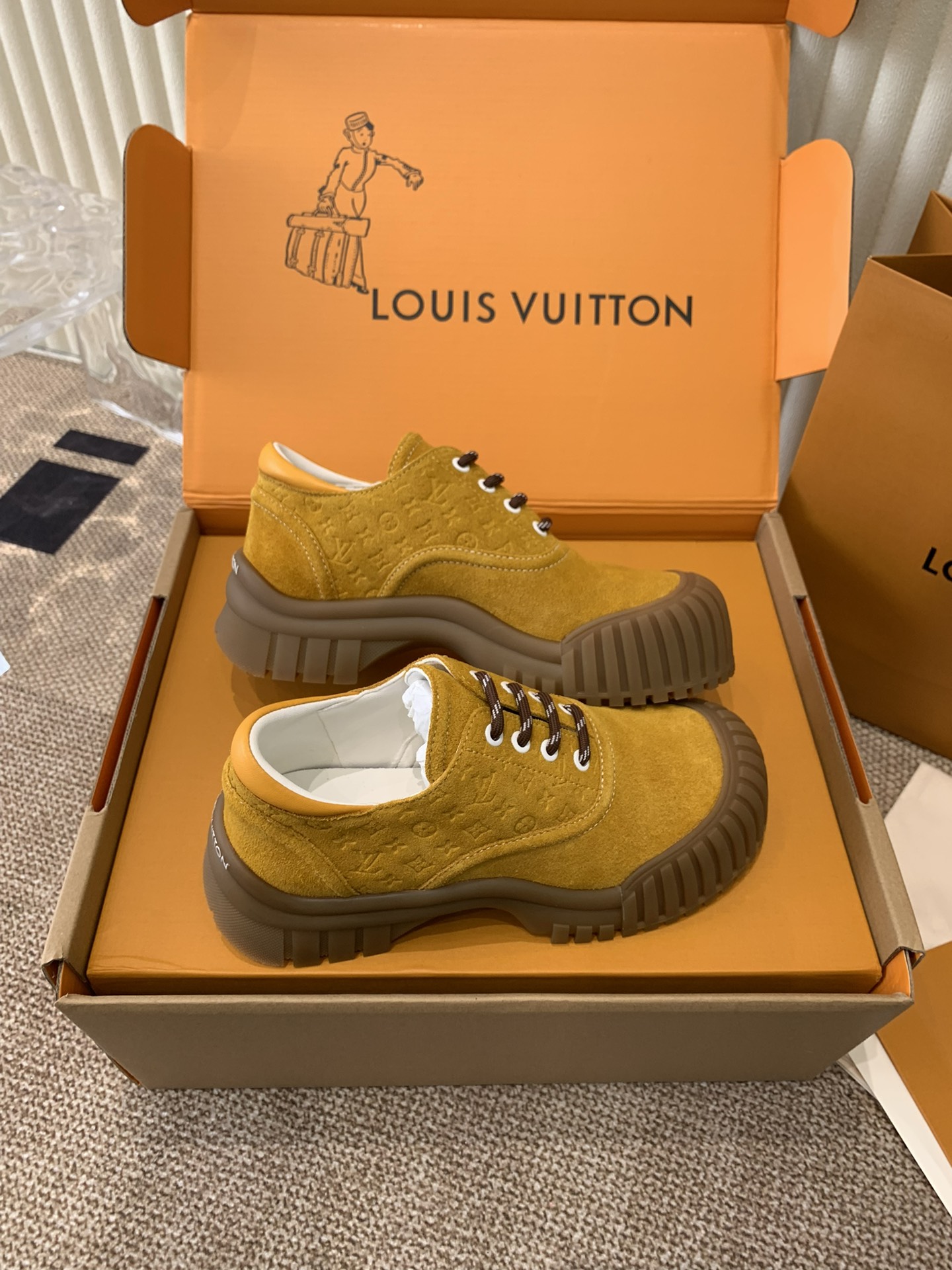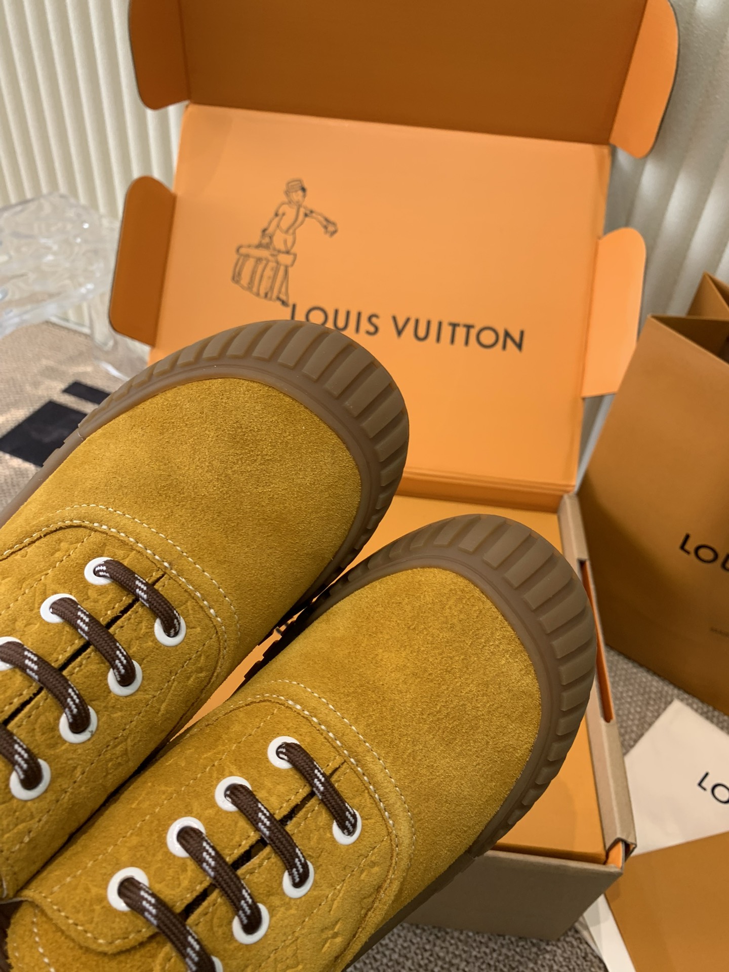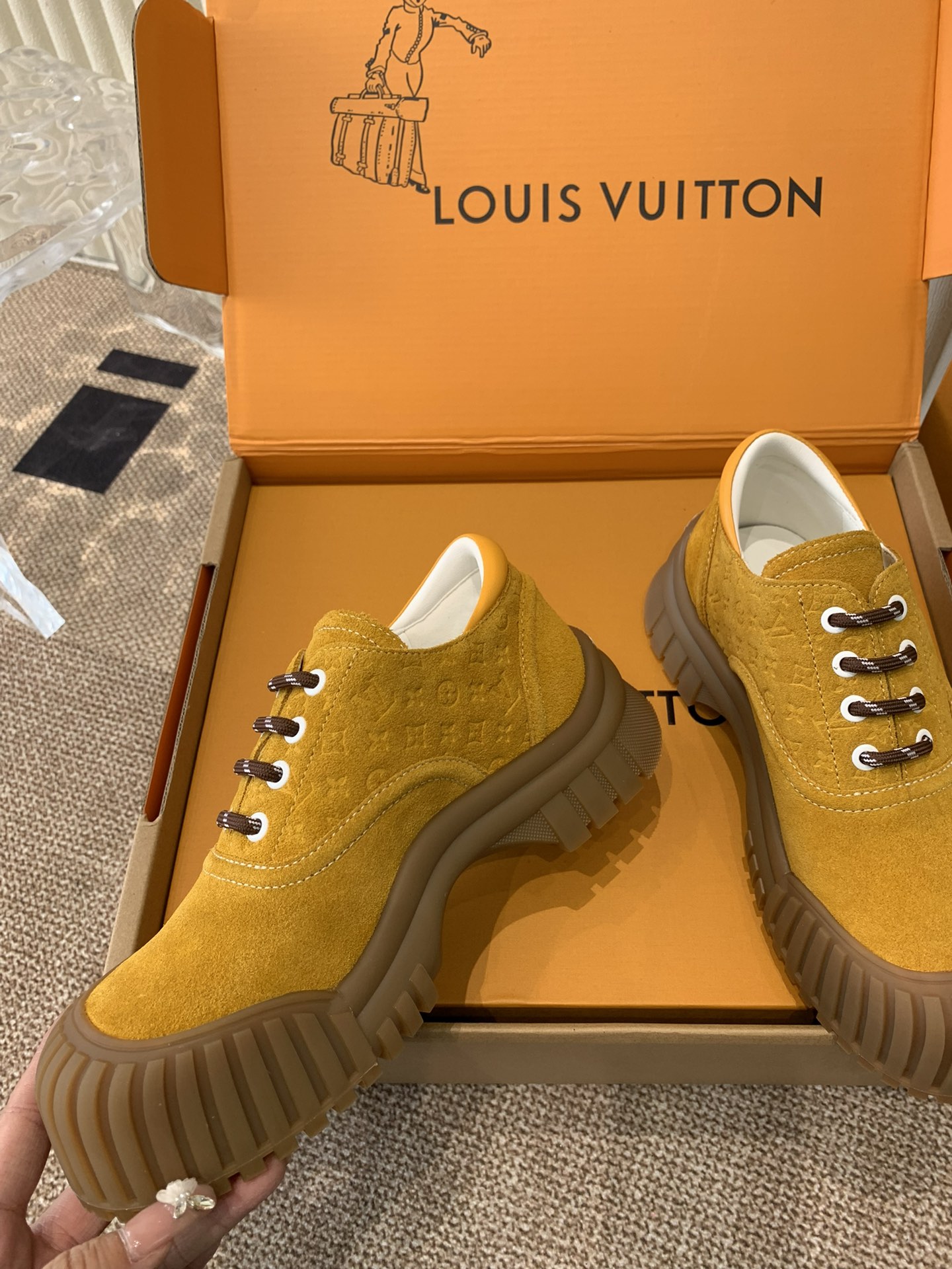 This shoes is AAAAA 1:1 quality (superb). Materials used are identical to the original ones. Louis Vuitton trademark marks are indistinguishable to the authentic. Photos take by actual shoes, what you receive will be 100% same with our photos.