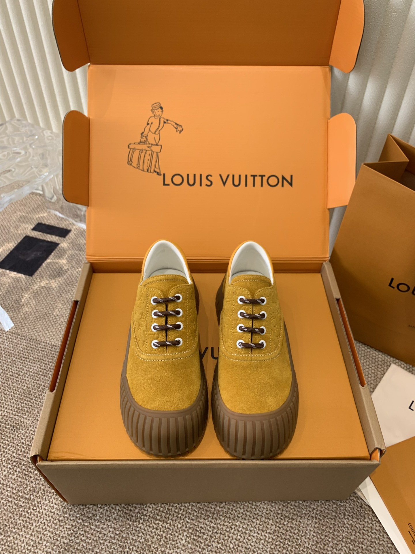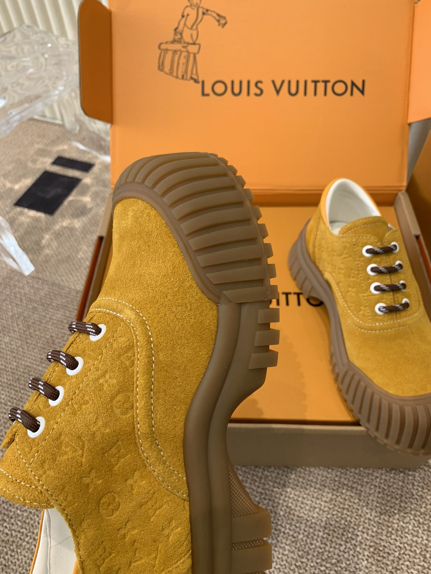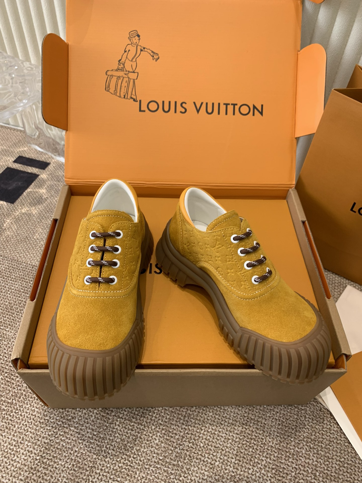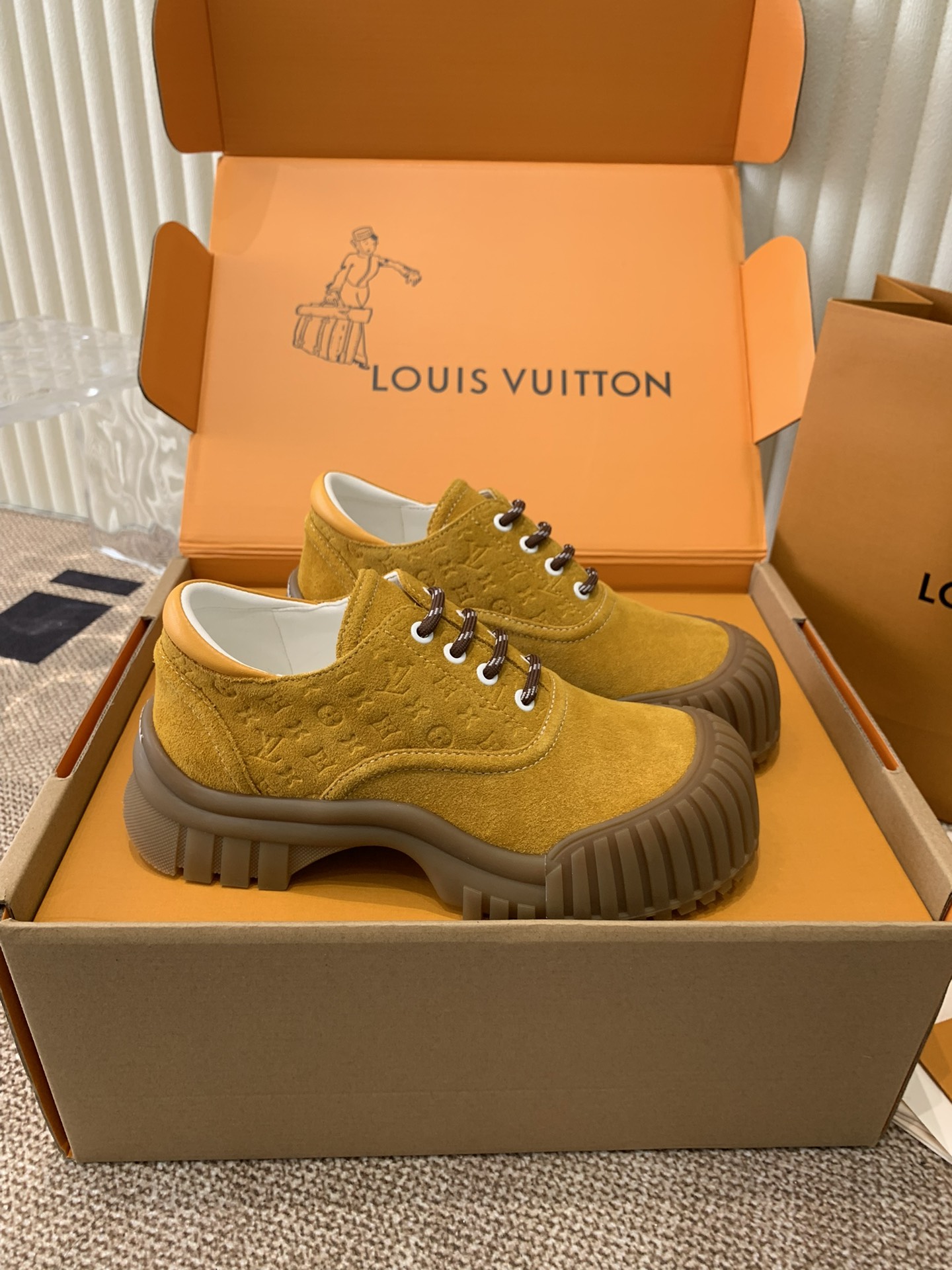 This shoes is AAAAA 1:1 quality (superb). Materials used are identical to the original ones. Louis Vuitton trademark marks are indistinguishable to the authentic. Photos take by actual shoes, what you receive will be 100% same with our photos.