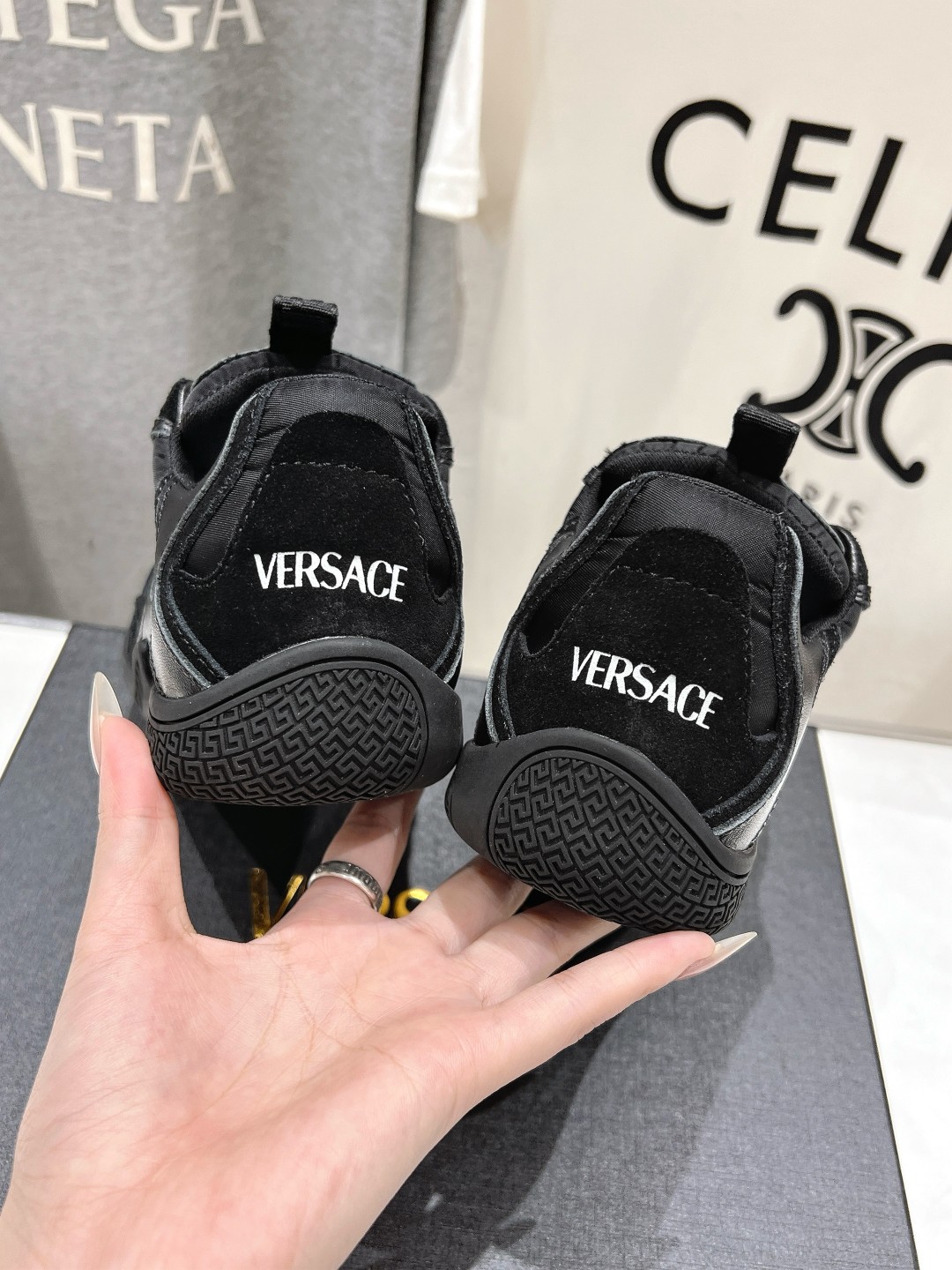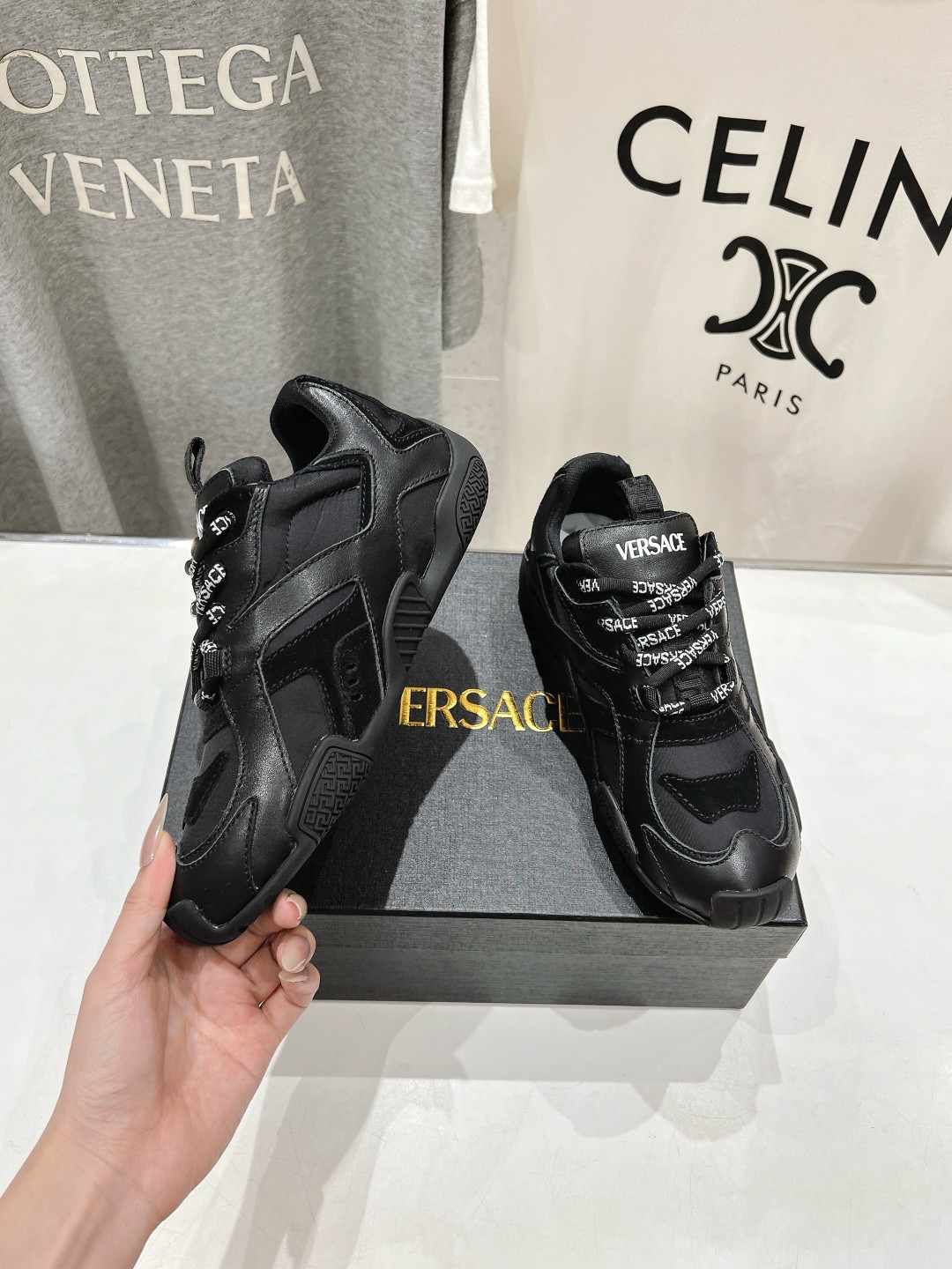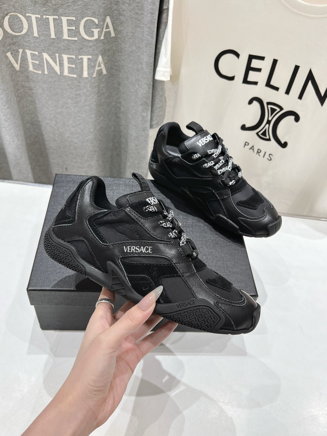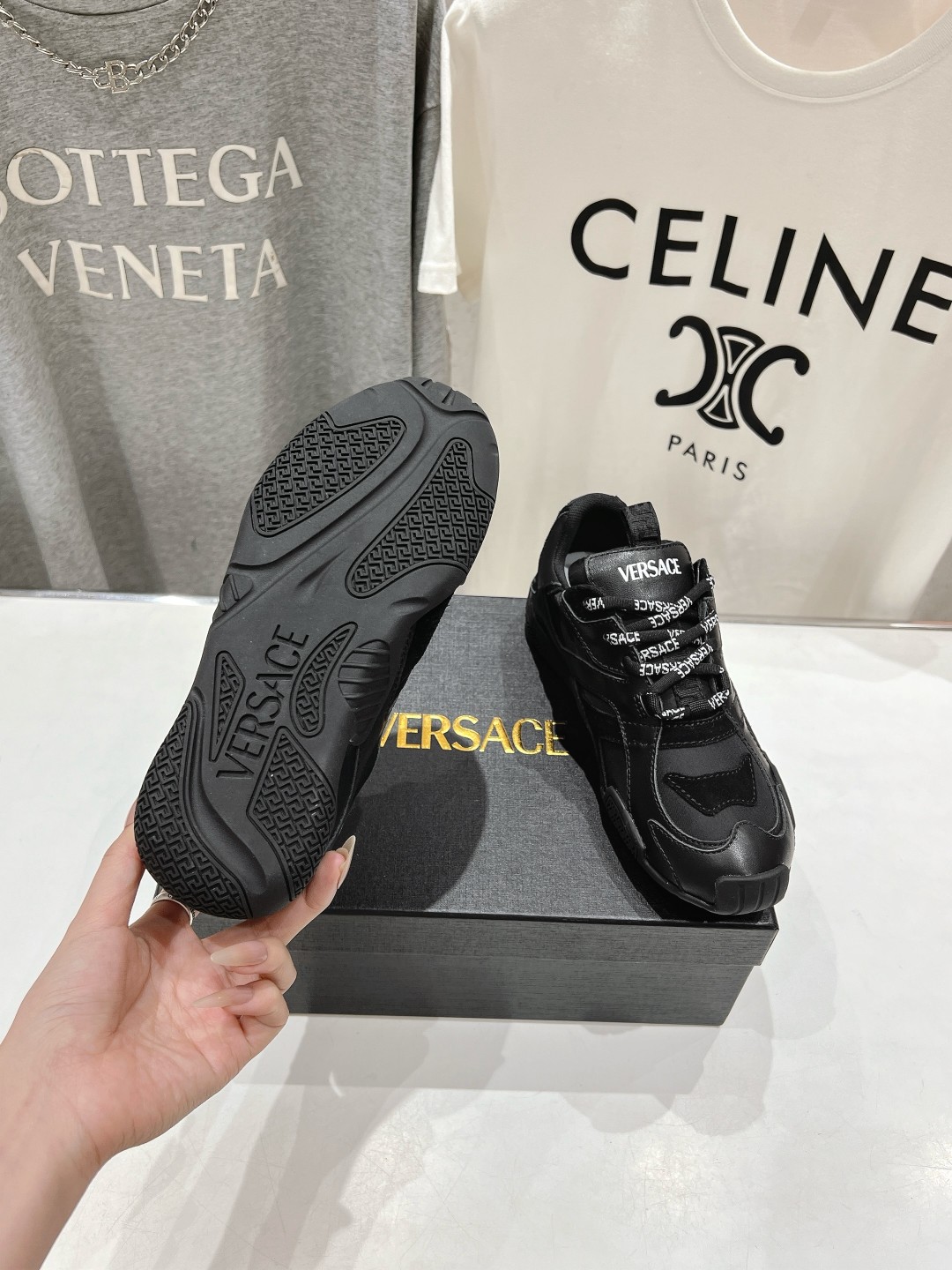 This shoes is AAAAA 1:1 quality (superb). Materials used are identical to the original ones. Versace trademark marks are indistinguishable to the authentic. Photos take by actual shoes, what you receive will be 100% same with our photos.