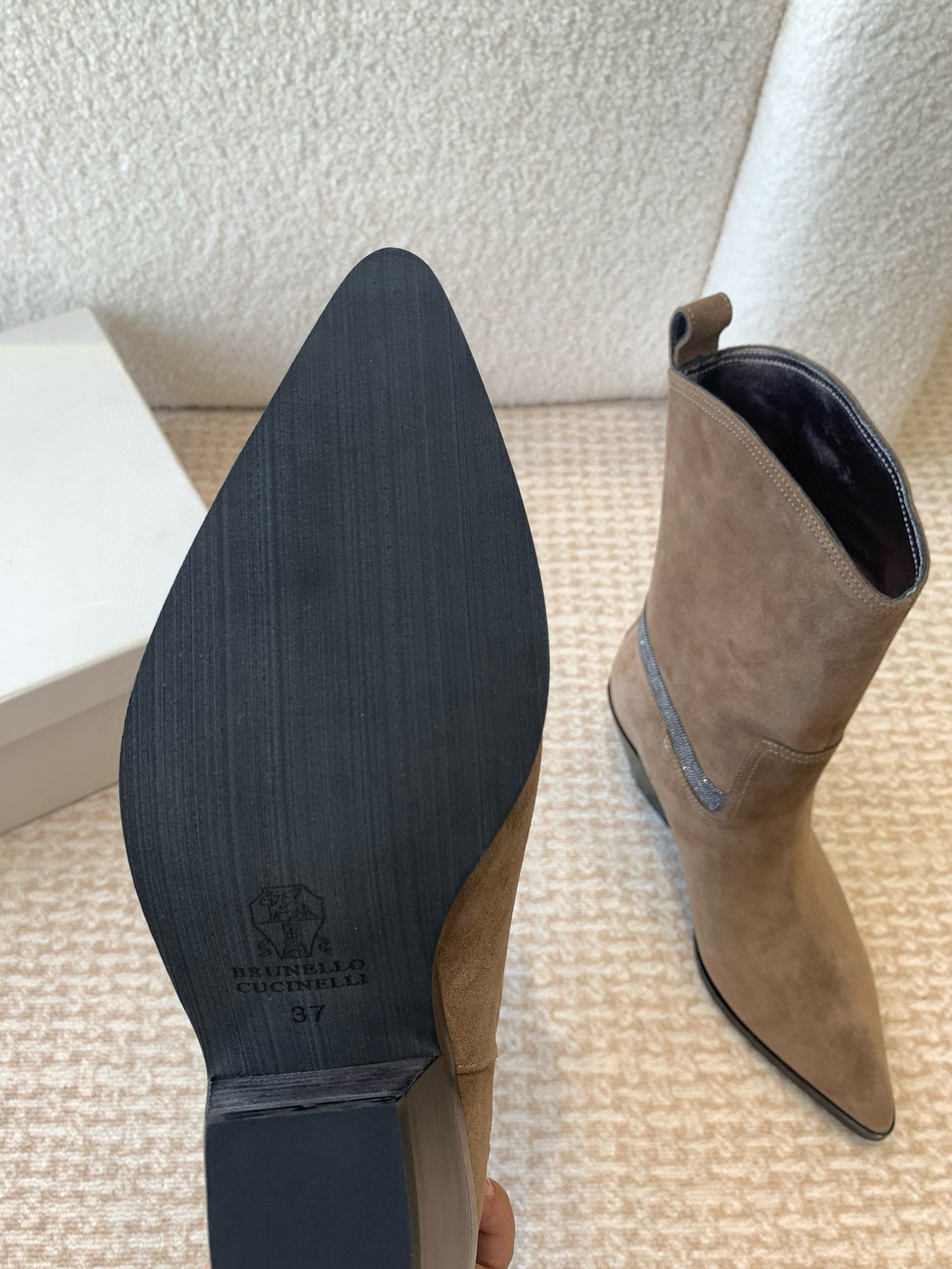 This shoes is AAAAA 1:1 quality (superb). Materials used are identical to the original ones. Brunello Cucinelli trademark marks are indistinguishable to the authentic. Photos take by actual shoes, what you receive will be 100% same with our photos.