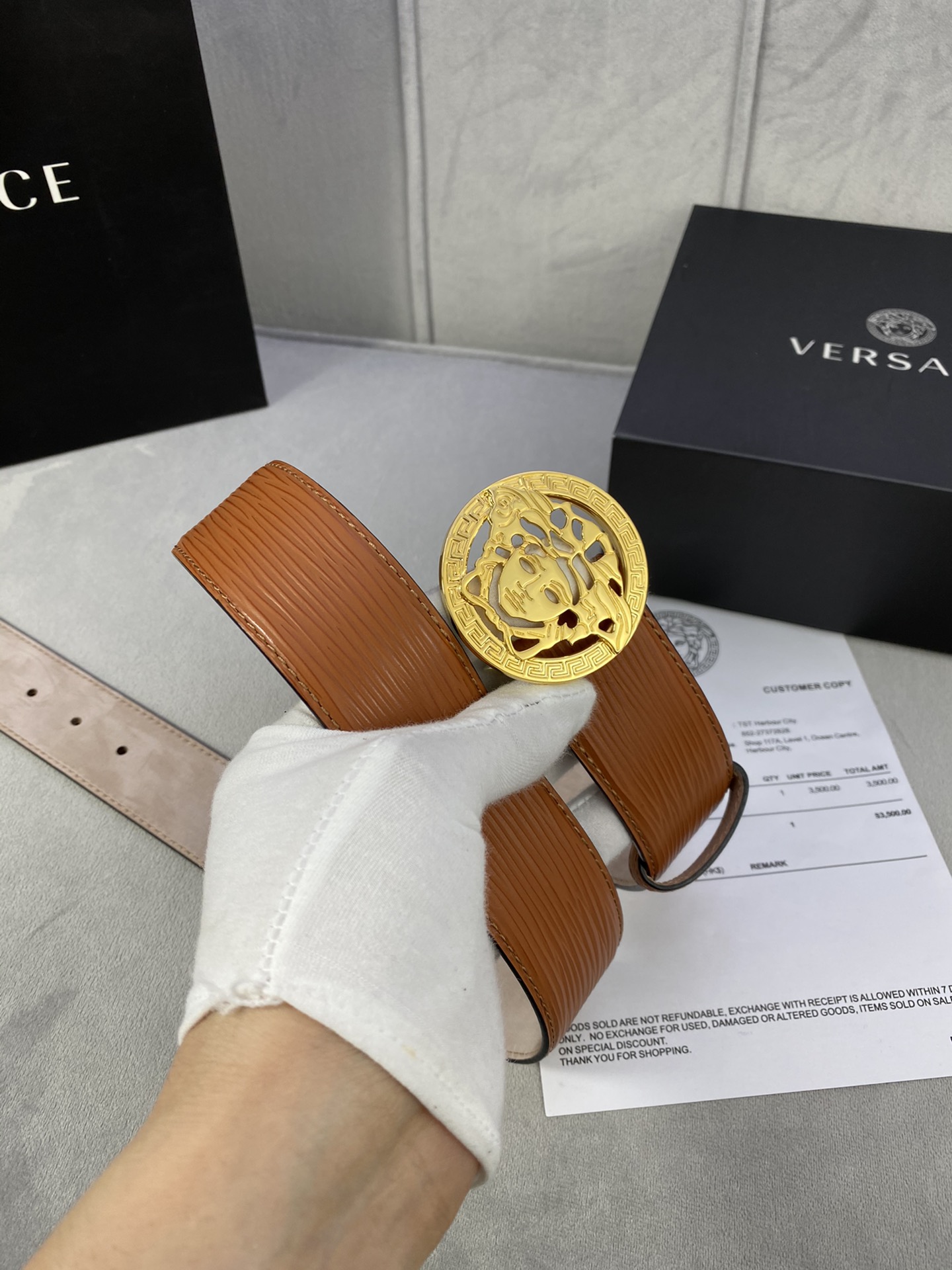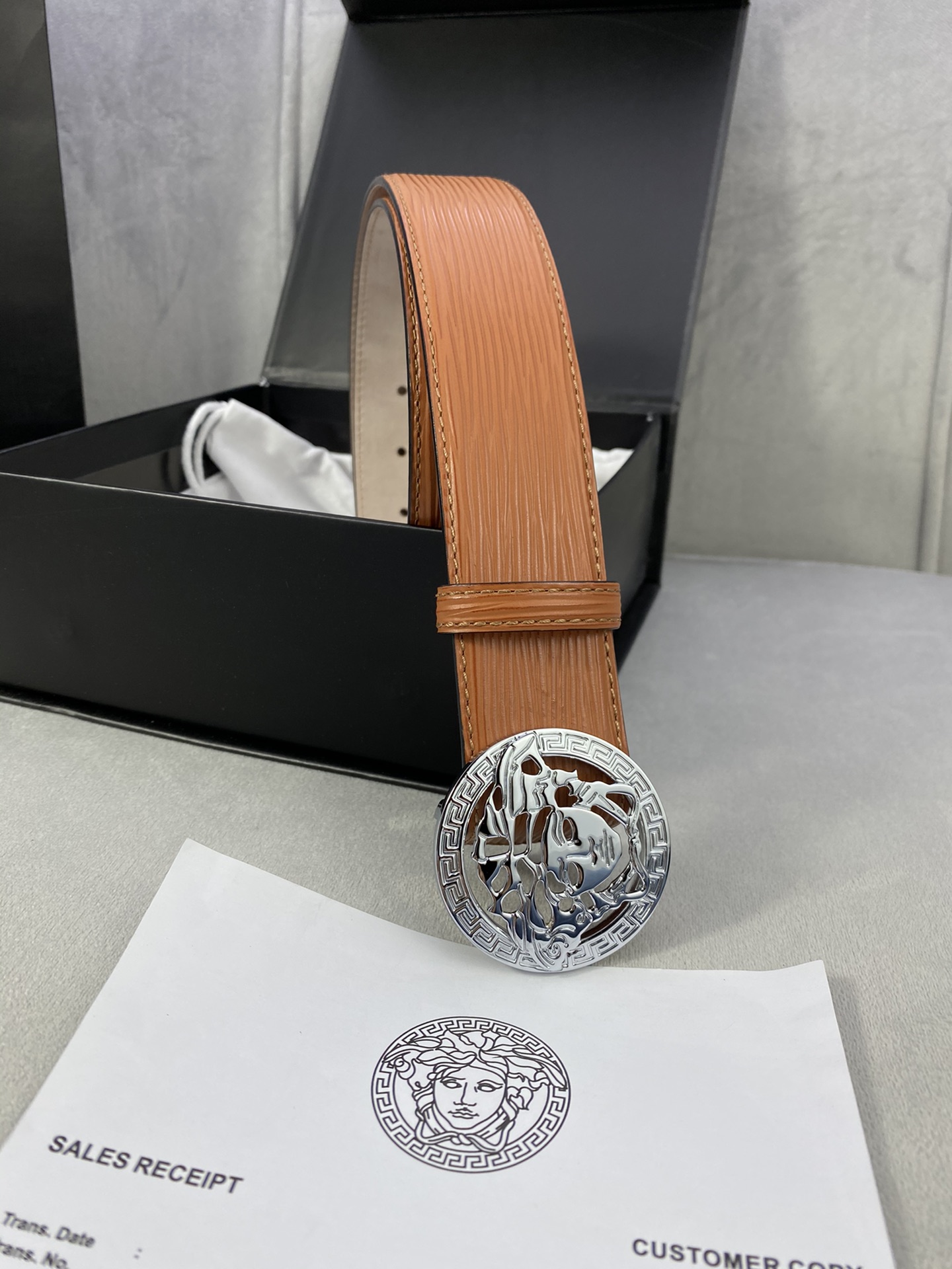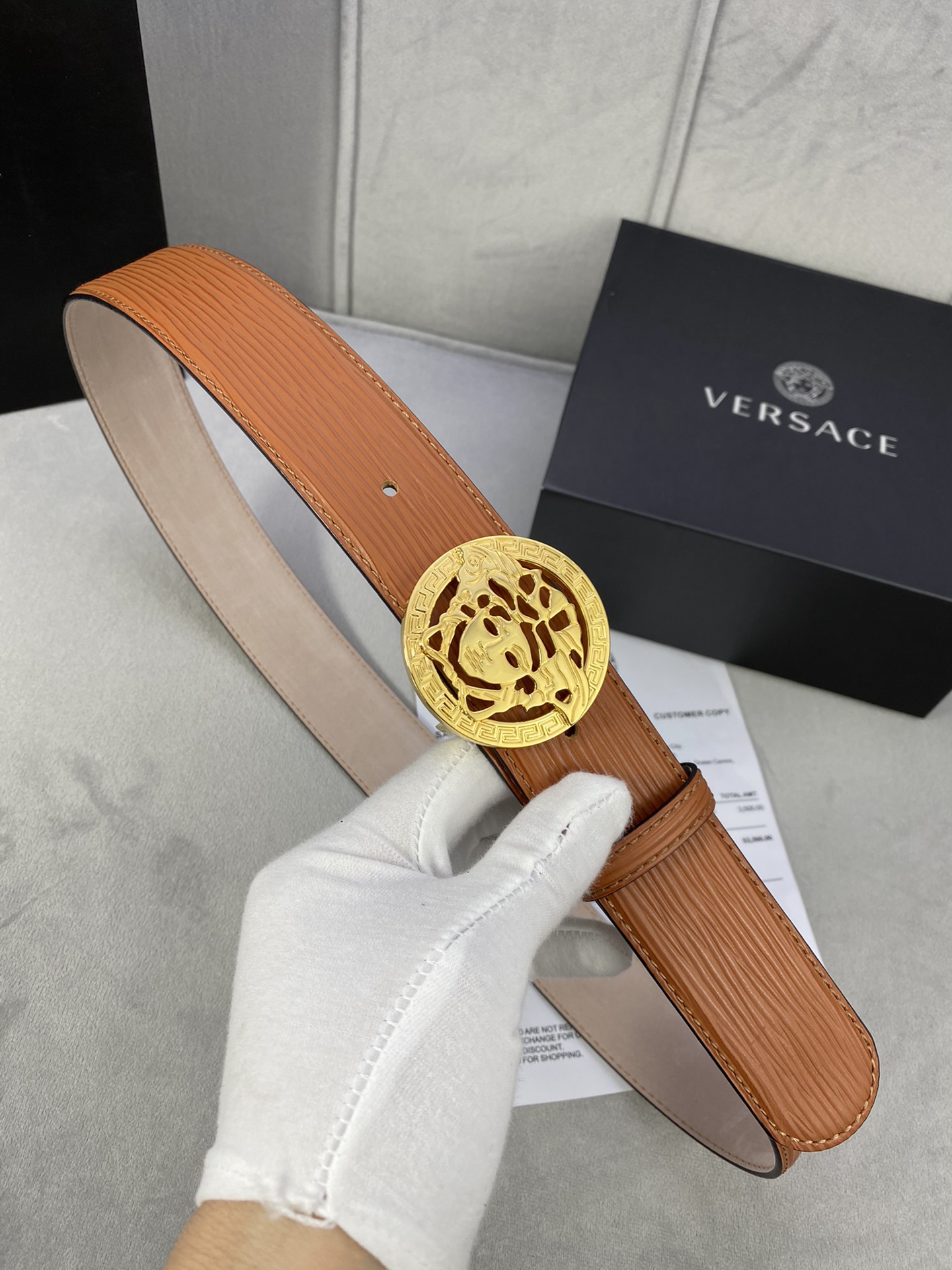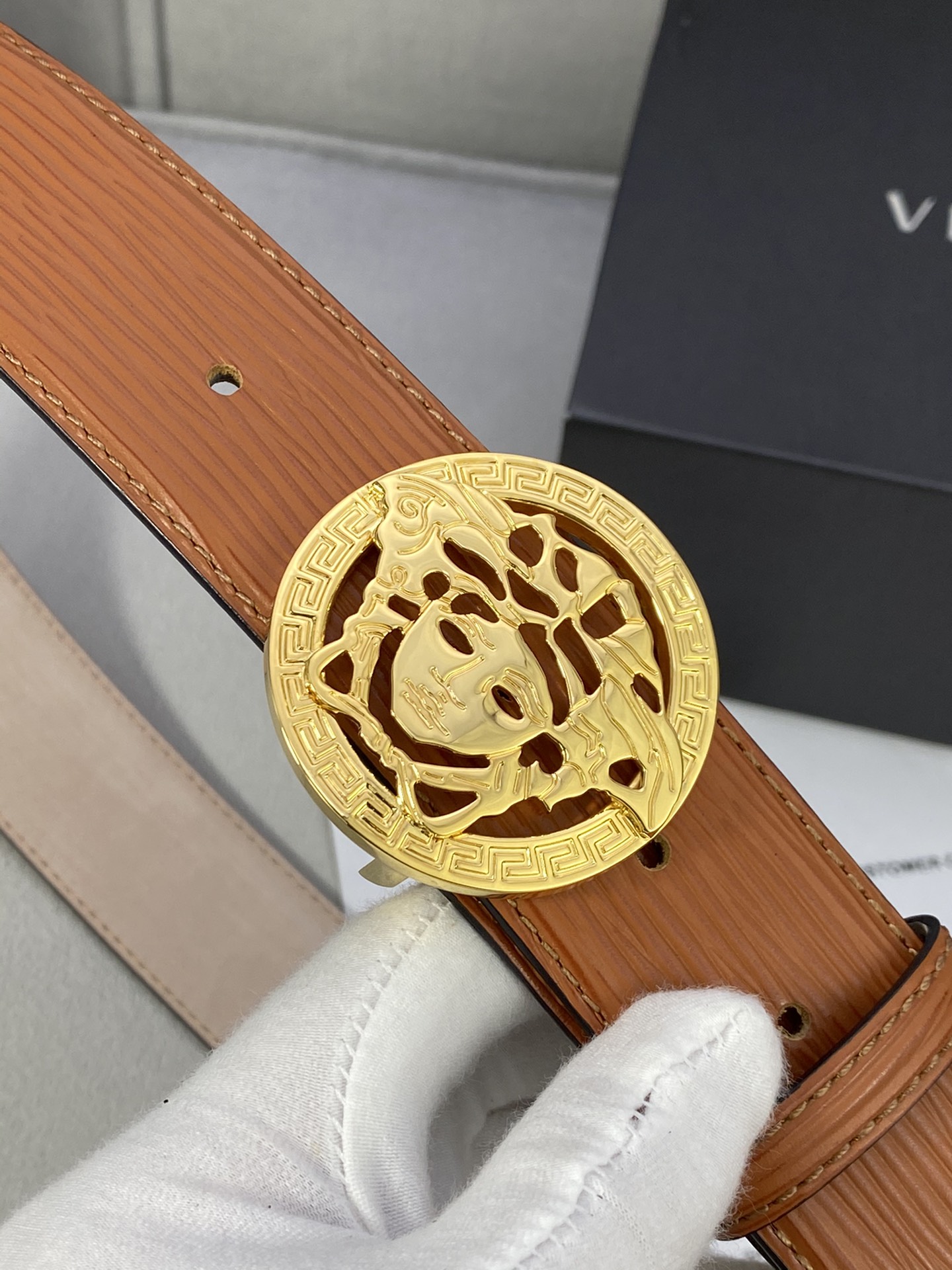 This belt is AAAAA 1:1 quality (superb). Materials used are identical to the original ones. Versace trademark marks are indistinguishable to the authentic. Photos take by actual belt, what you receive will be 100% same with our photos.