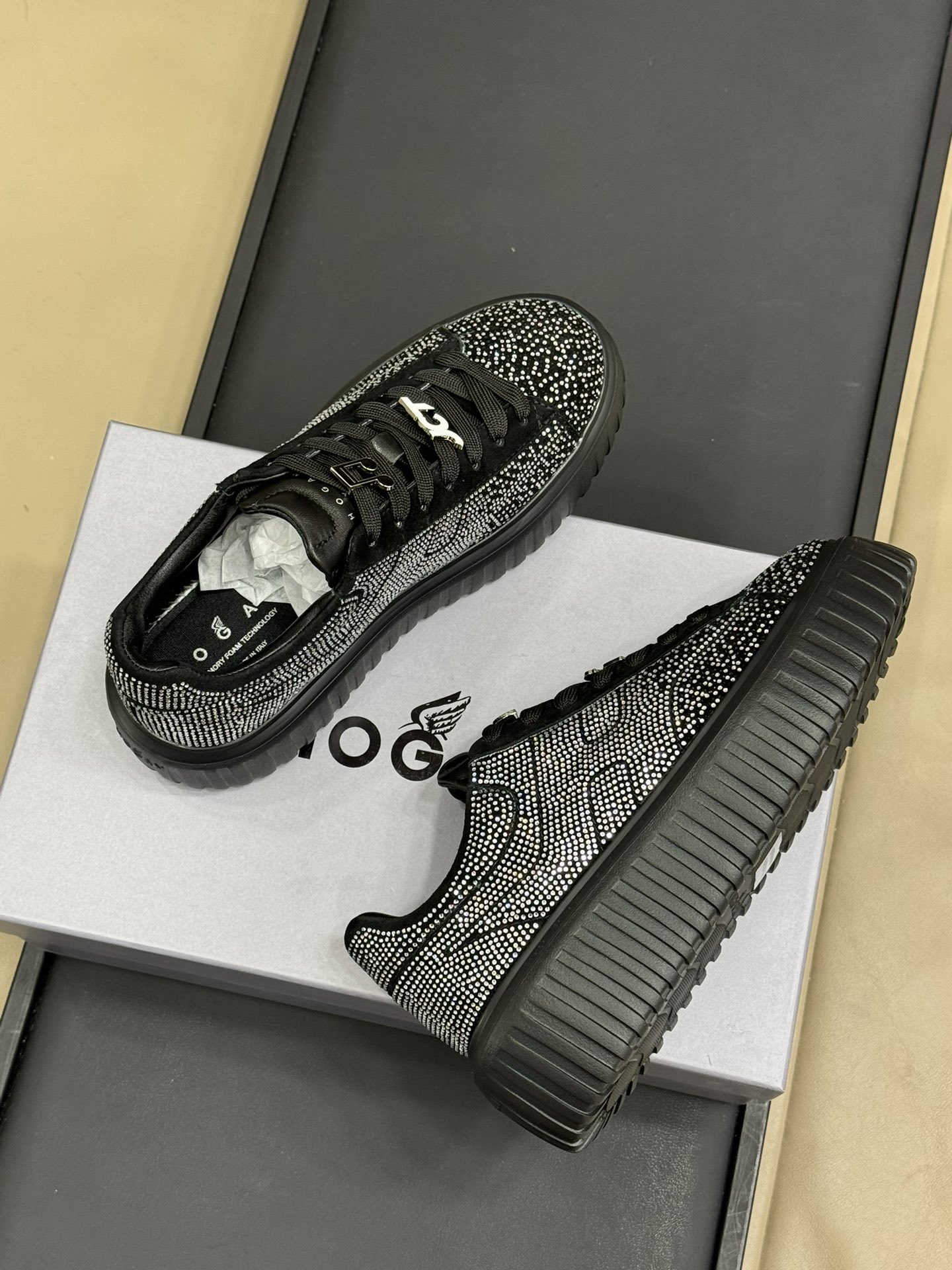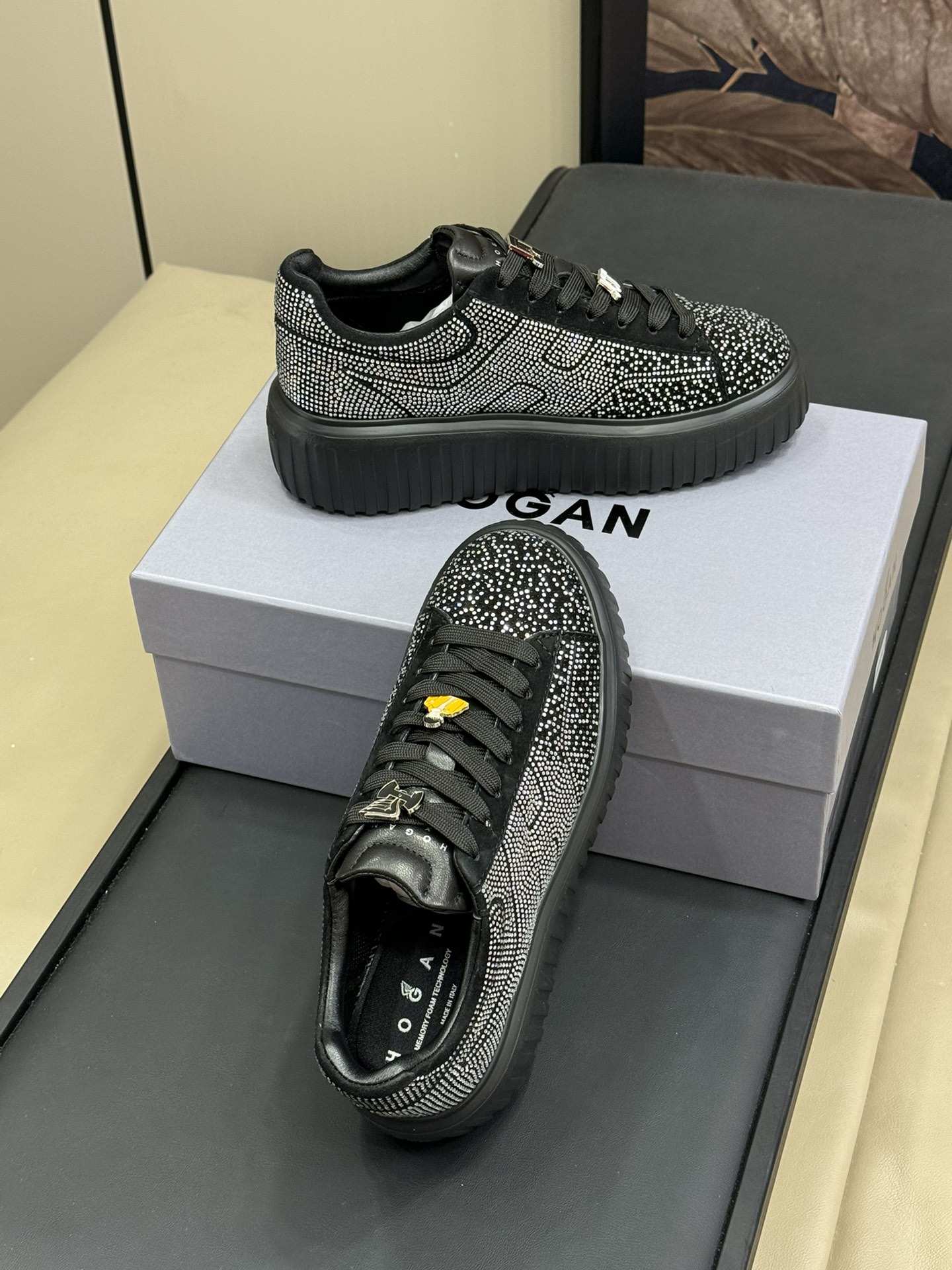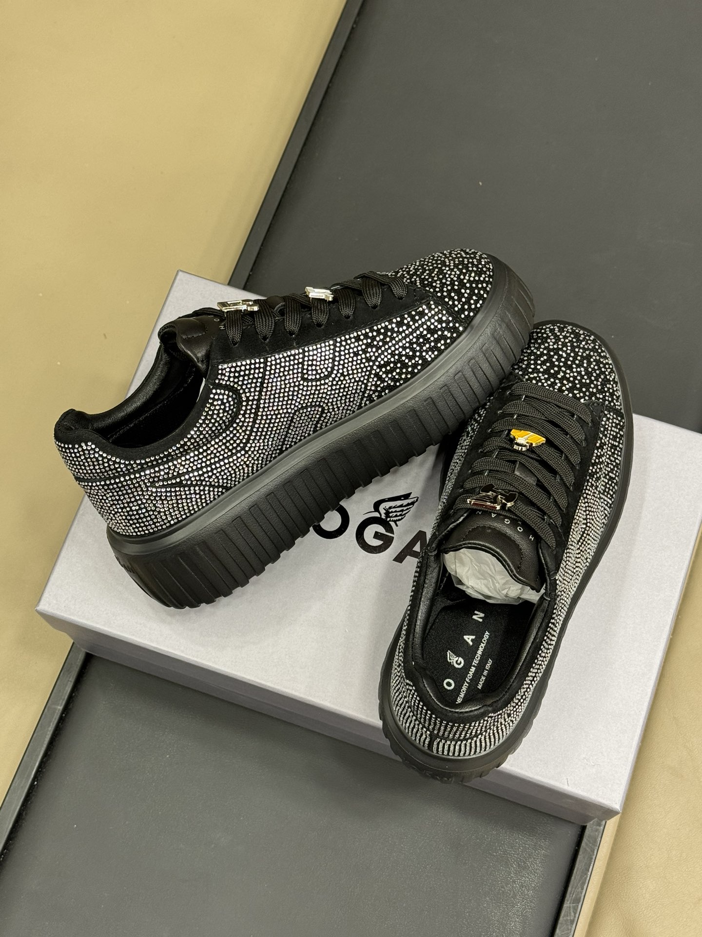 This shoes is AAAAA 1:1 quality (superb). Materials used are identical to the original ones. Hogan trademark marks are indistinguishable to the authentic. Photos take by actual shoes, what you receive will be 100% same with our photos.