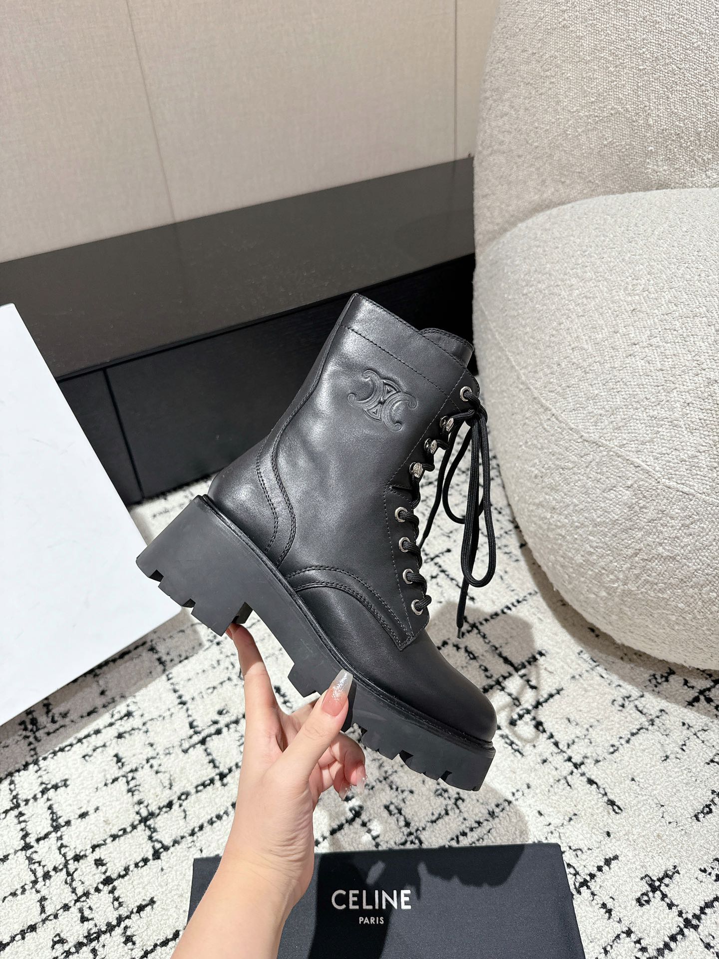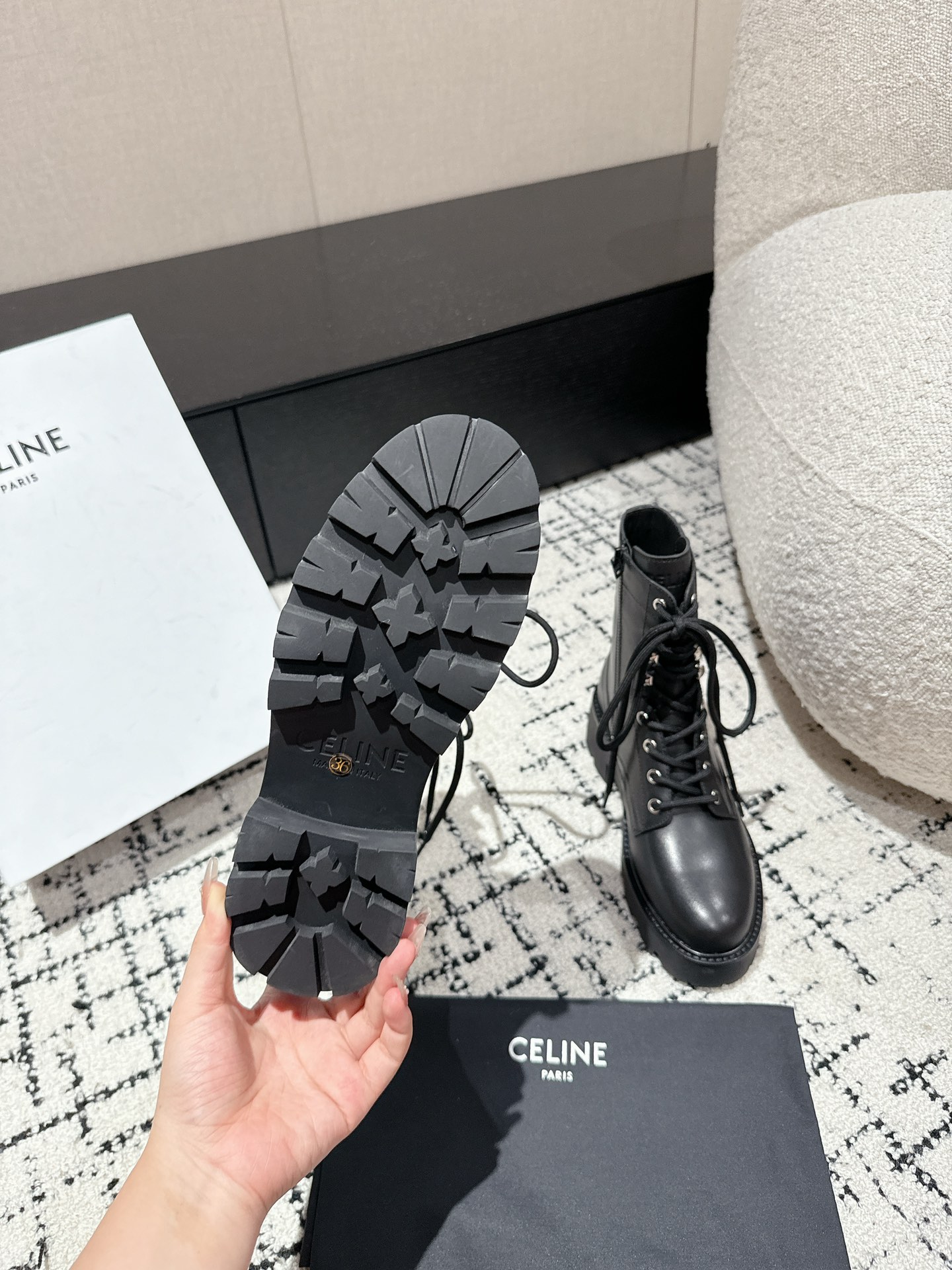 This shoes is AAAAA 1:1 quality (superb). Materials used are identical to the original ones. Celine trademark marks are indistinguishable to the authentic. Photos take by actual shoes, what you receive will be 100% same with our photos.