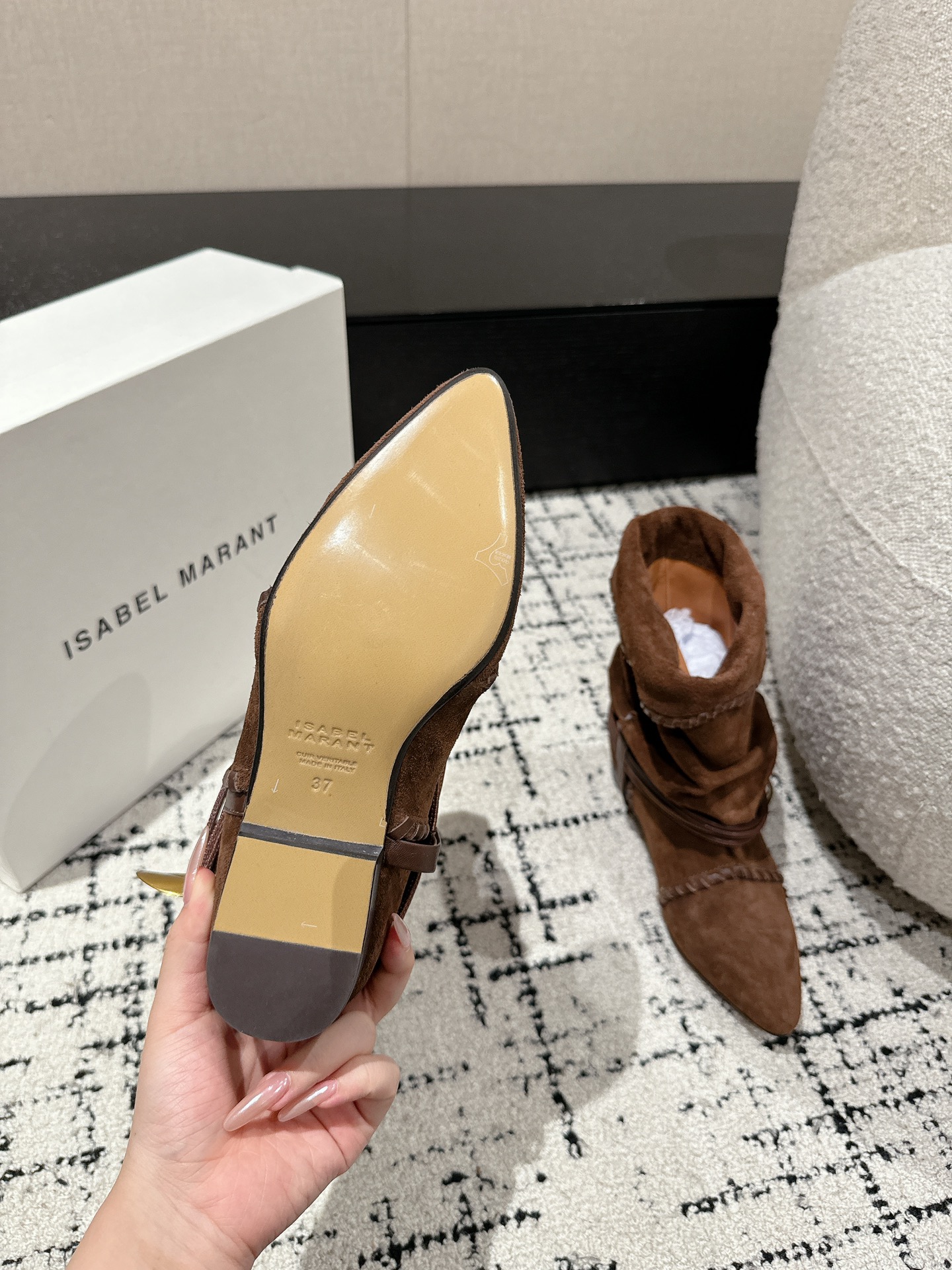 This shoes is AAAAA 1:1 quality (superb). Materials used are identical to the original ones. Isabel Marant trademark marks are indistinguishable to the authentic. Photos take by actual shoes, what you receive will be 100% same with our photos.