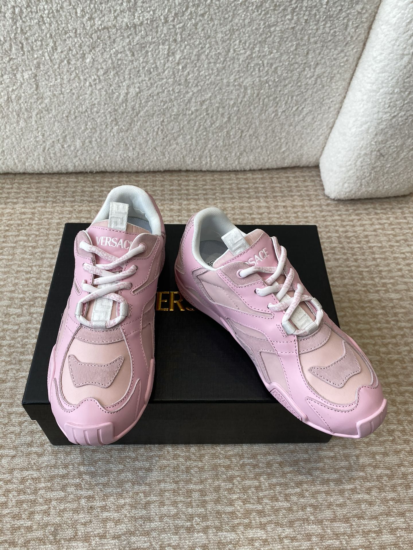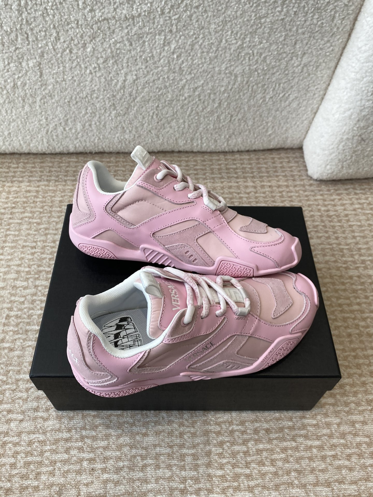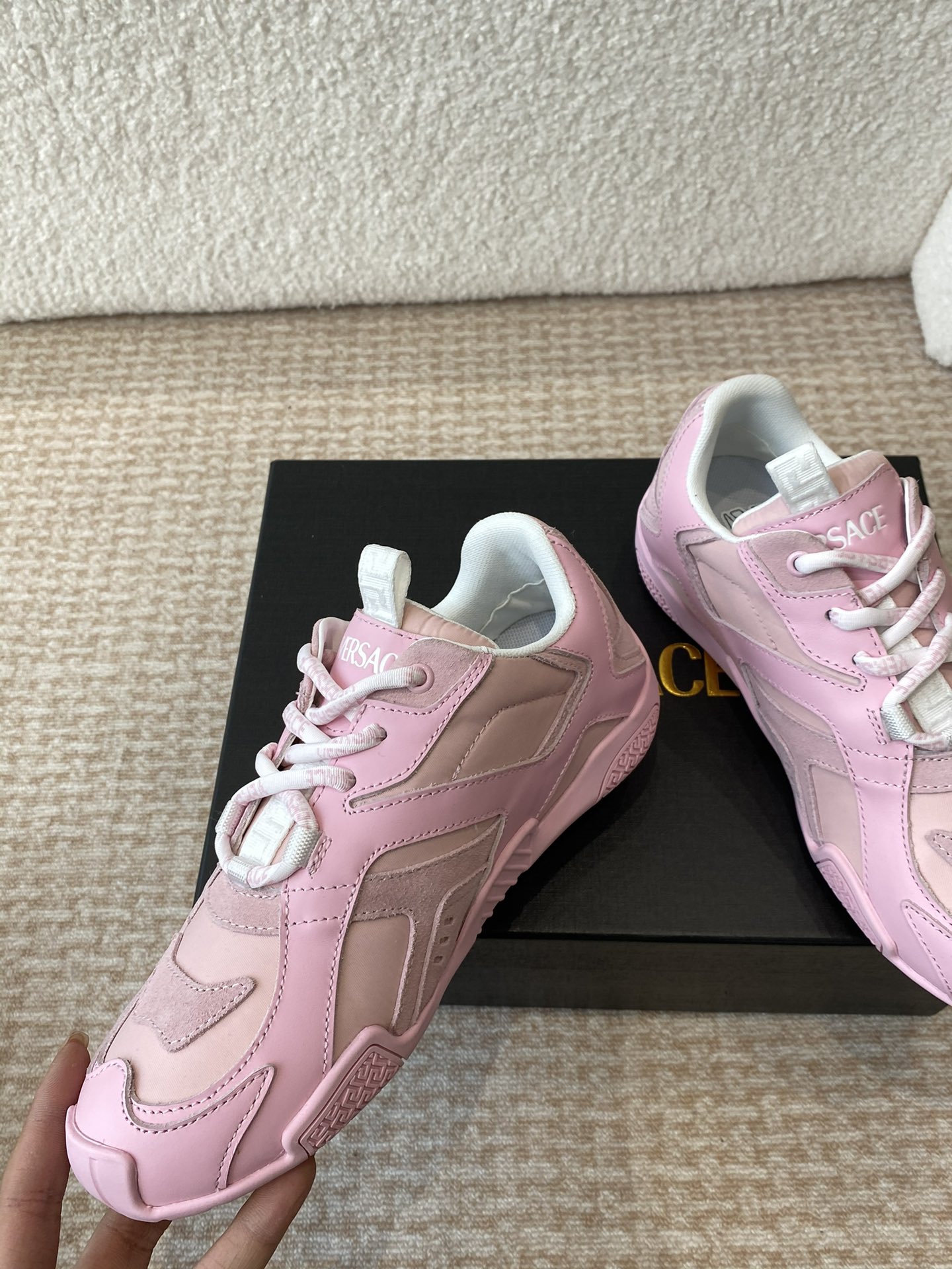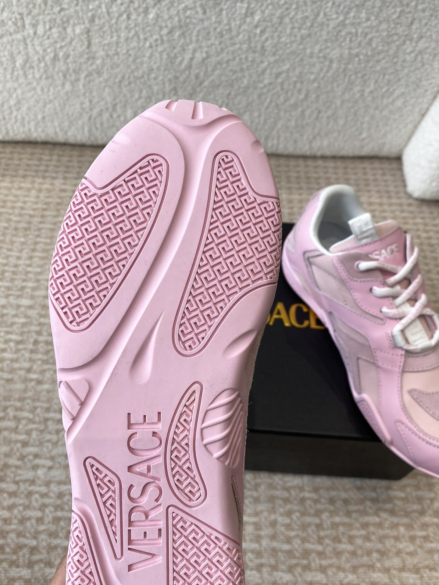 This shoes is AAAAA 1:1 quality (superb). Materials used are identical to the original ones. Versace trademark marks are indistinguishable to the authentic. Photos take by actual shoes, what you receive will be 100% same with our photos.