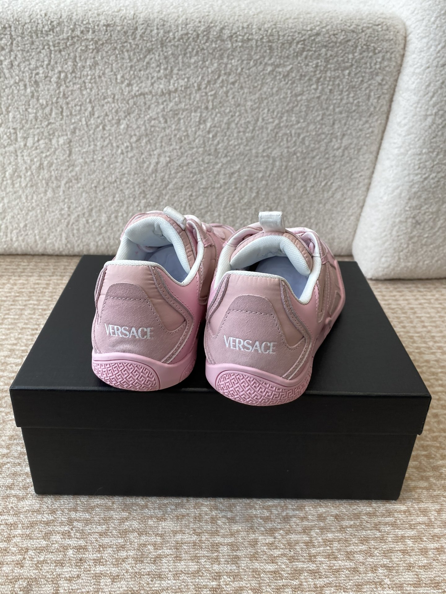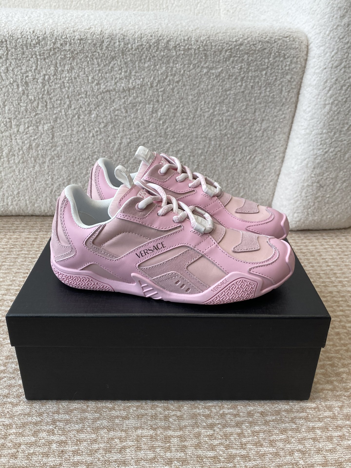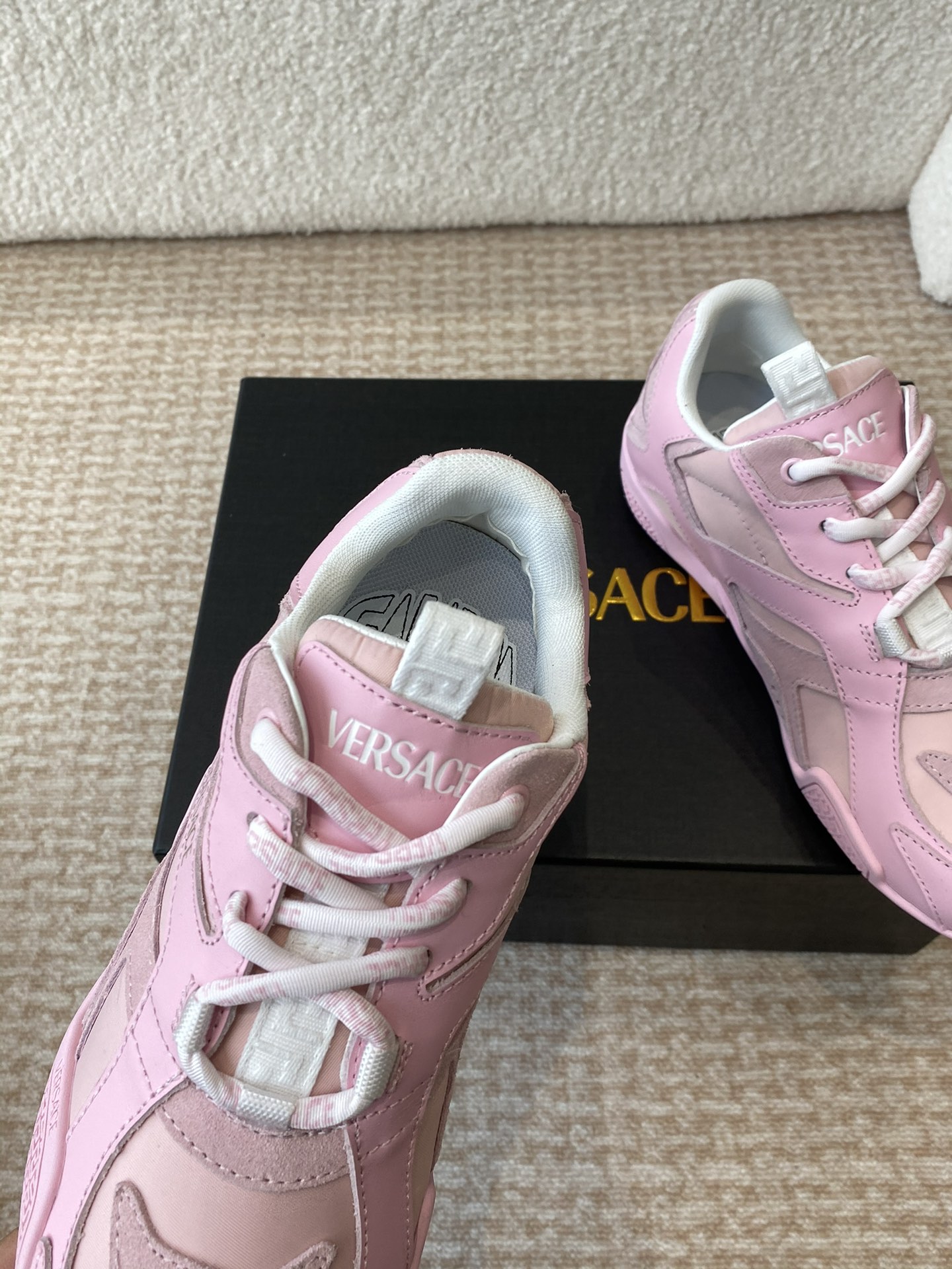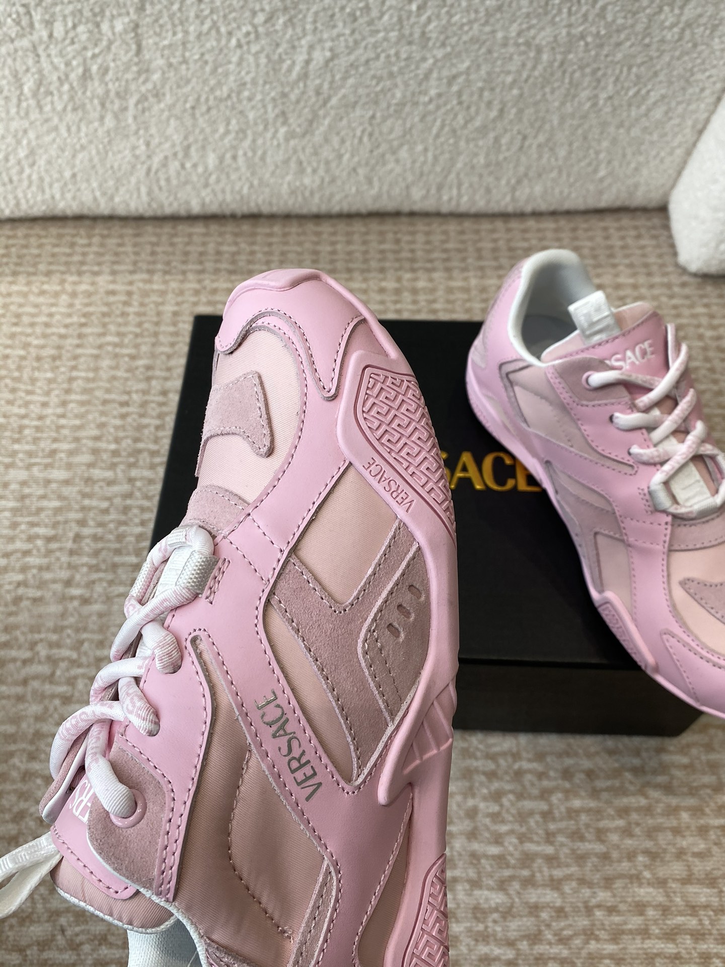 This shoes is AAAAA 1:1 quality (superb). Materials used are identical to the original ones. Versace trademark marks are indistinguishable to the authentic. Photos take by actual shoes, what you receive will be 100% same with our photos.