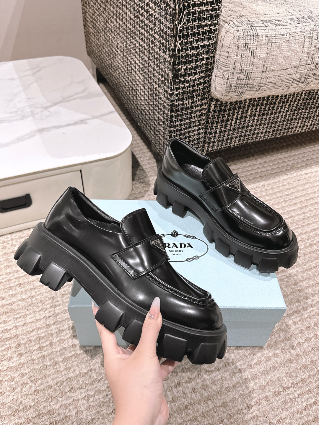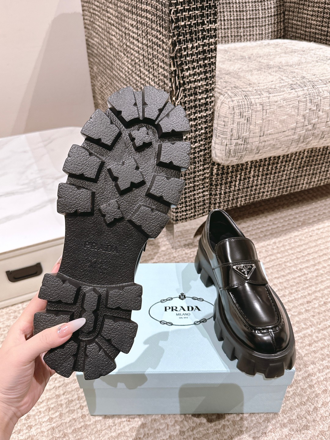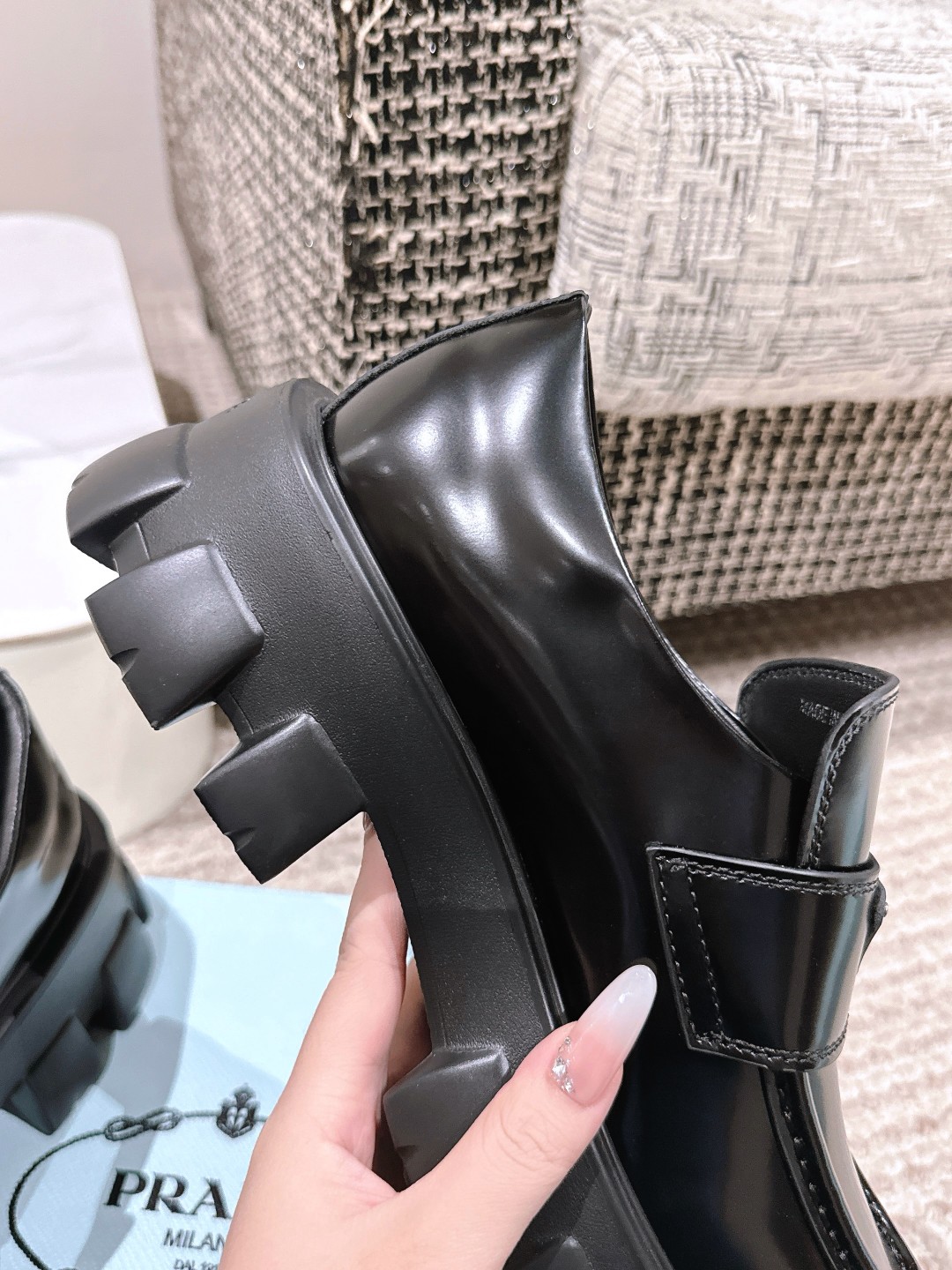 This shoes is AAAAA 1:1 quality (superb). Materials used are identical to the original ones. Prada trademark marks are indistinguishable to the authentic. Photos take by actual shoes, what you receive will be 100% same with our photos.