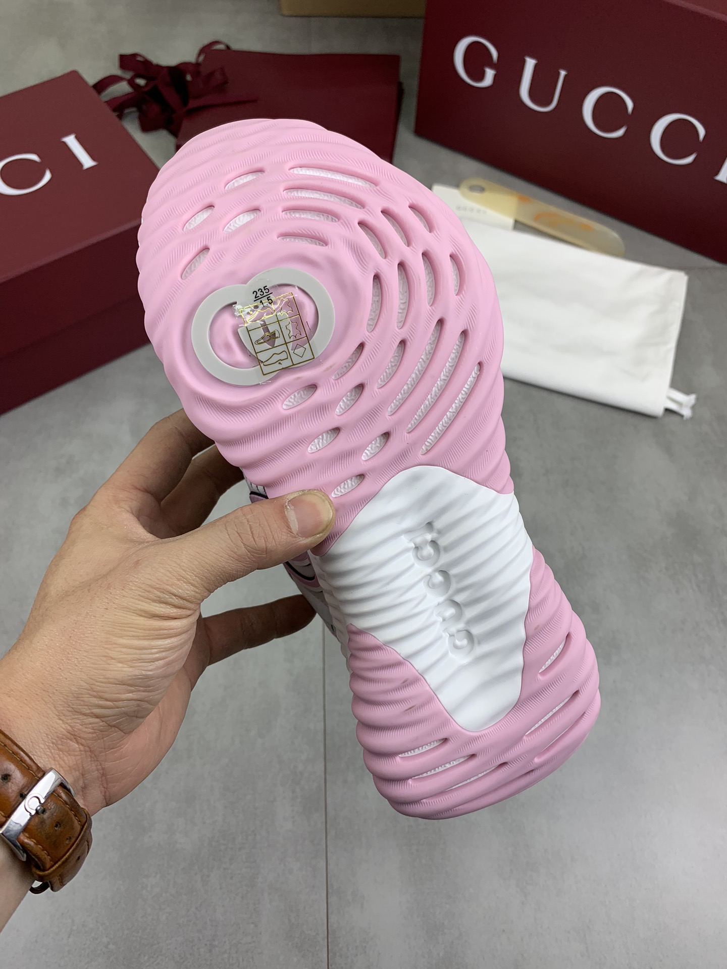 This shoes is AAAAA 1:1 quality (superb). Materials used are identical to the original ones. Gucci trademark marks are indistinguishable to the authentic. Photos take by actual shoes, what you receive will be 100% same with our photos.