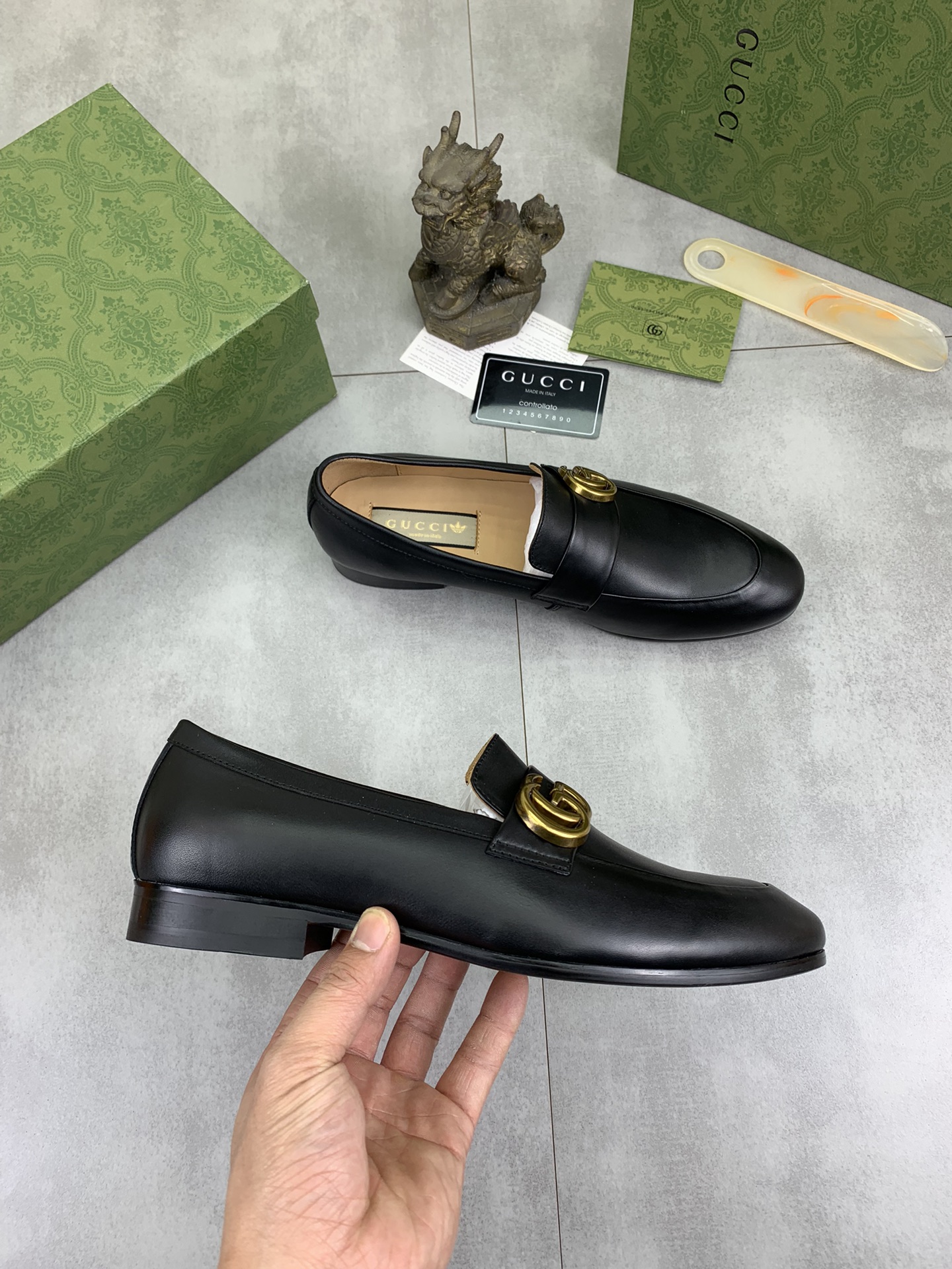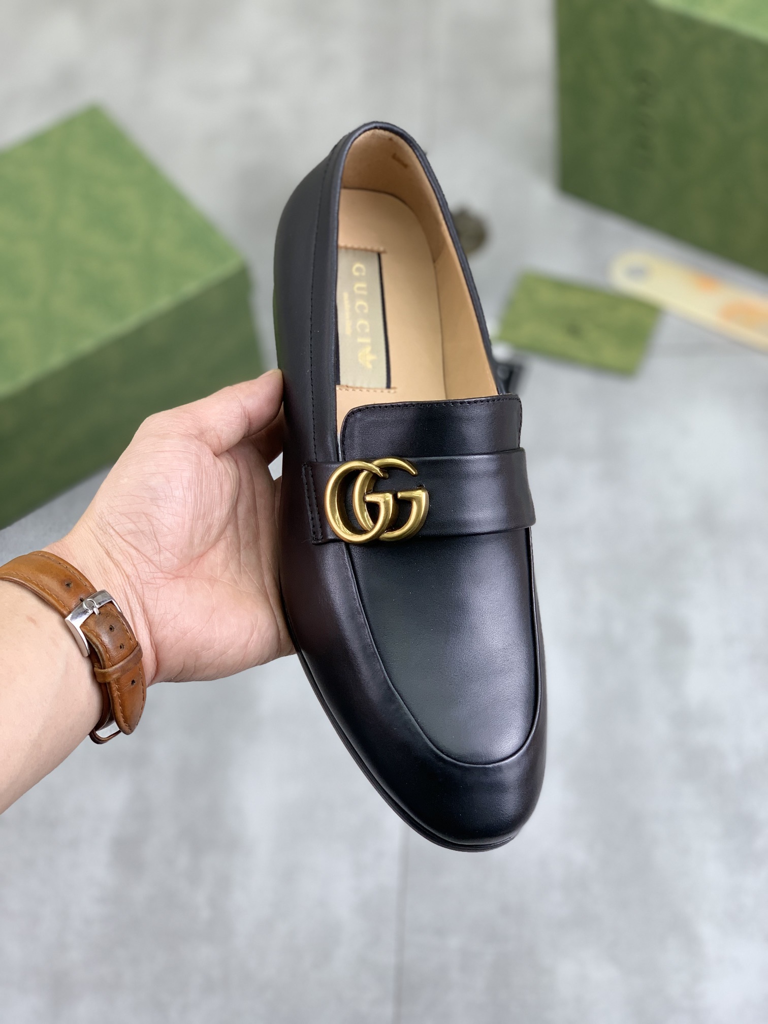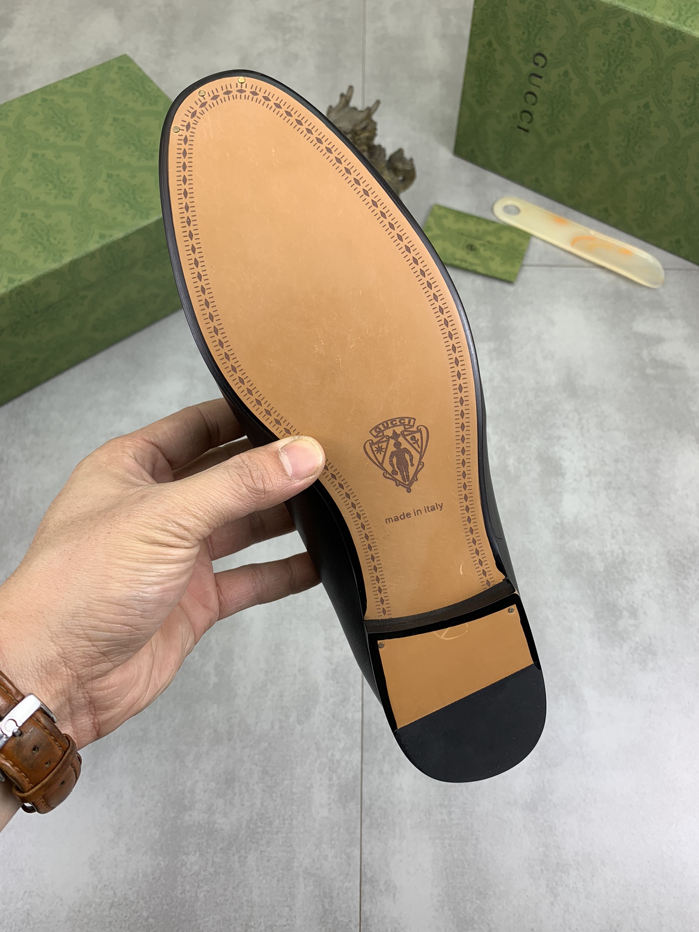 This shoes is AAAAA 1:1 quality (superb). Materials used are identical to the original ones. Gucci trademark marks are indistinguishable to the authentic. Photos take by actual shoes, what you receive will be 100% same with our photos.