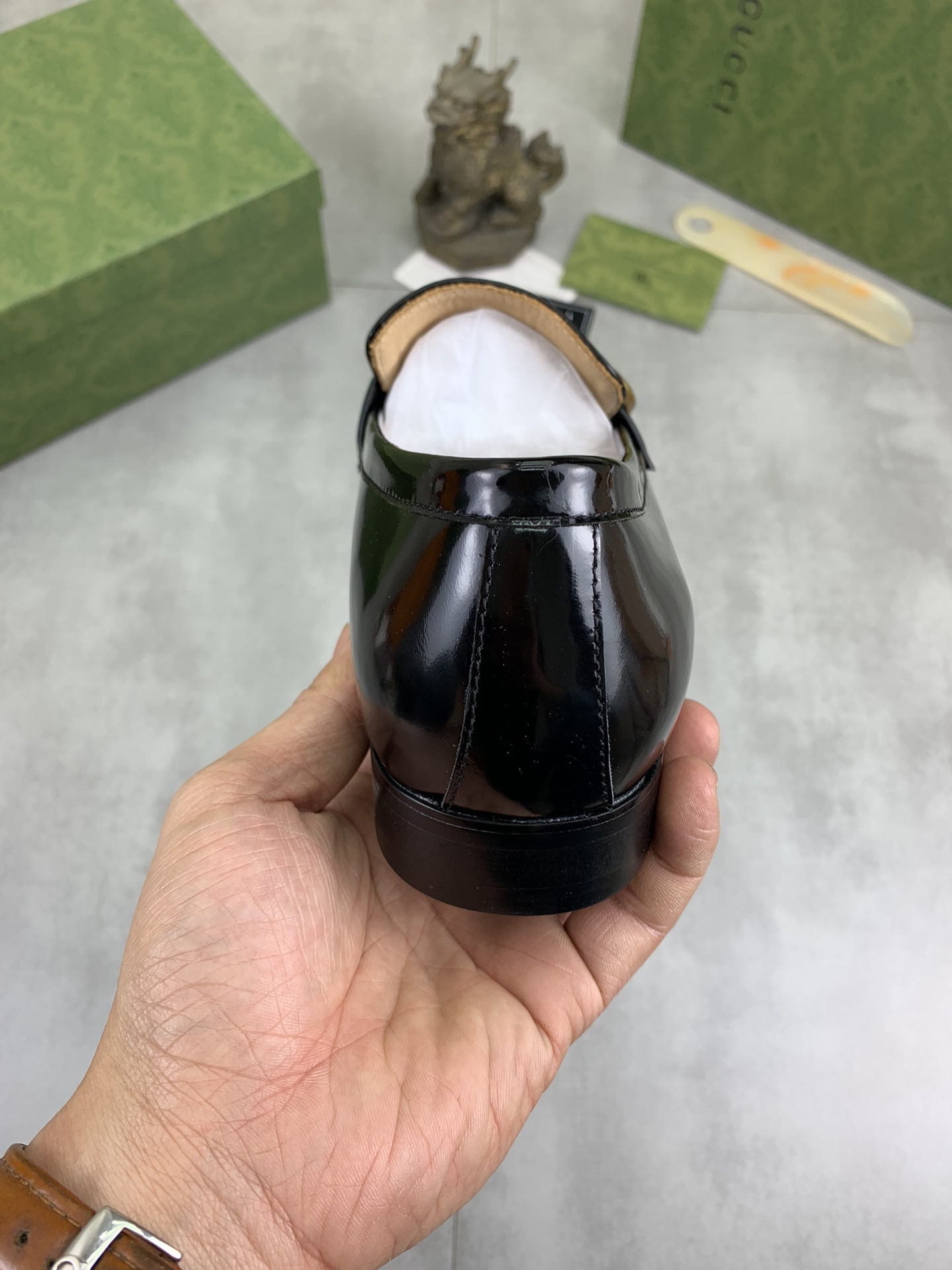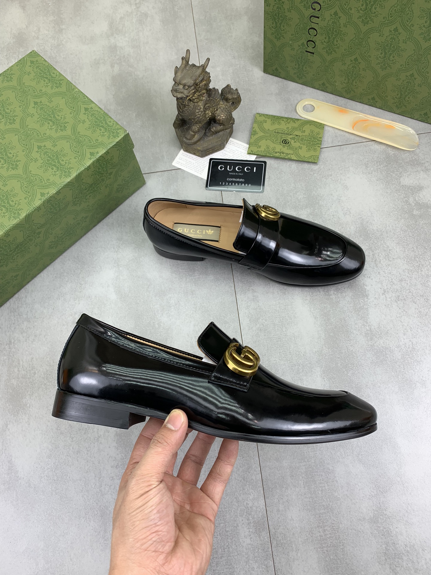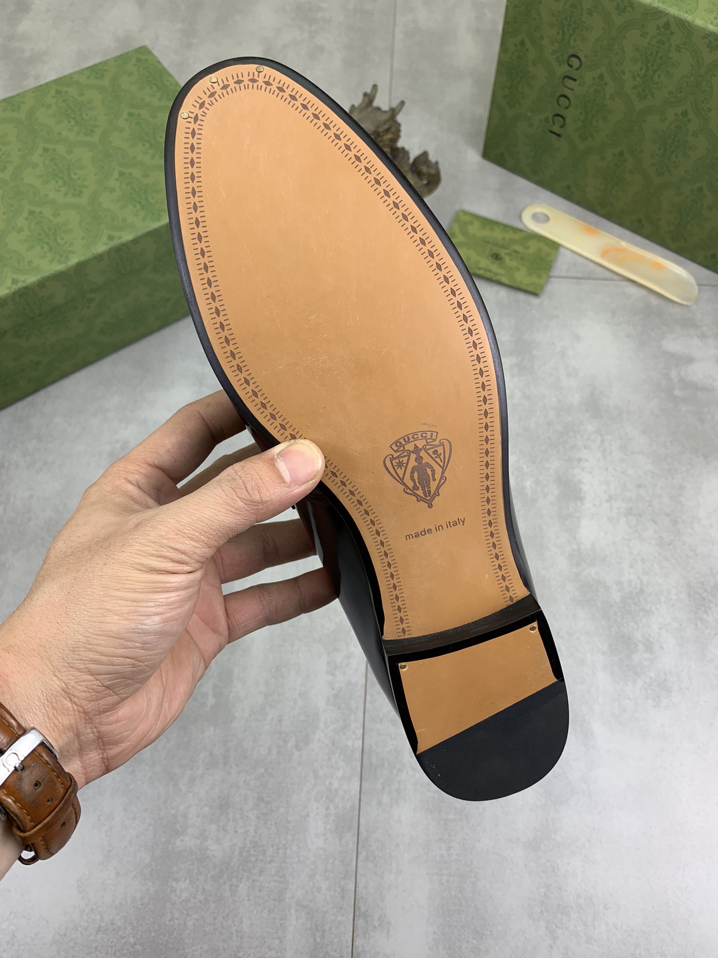 This shoes is AAAAA 1:1 quality (superb). Materials used are identical to the original ones. Gucci trademark marks are indistinguishable to the authentic. Photos take by actual shoes, what you receive will be 100% same with our photos.
