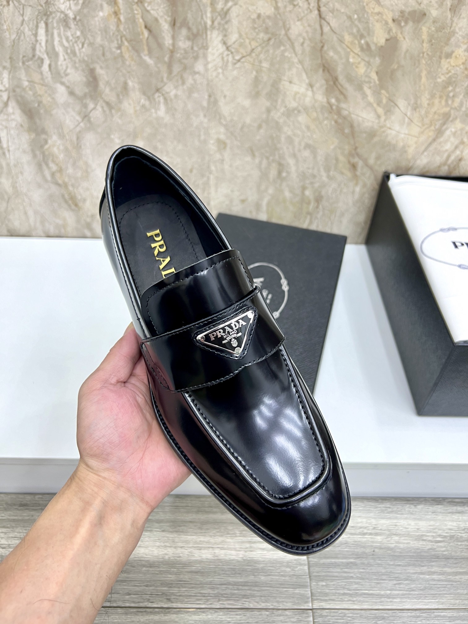 This shoes is AAAAA 1:1 quality (superb). Materials used are identical to the original ones. Prada trademark marks are indistinguishable to the authentic. Photos take by actual shoes, what you receive will be 100% same with our photos.