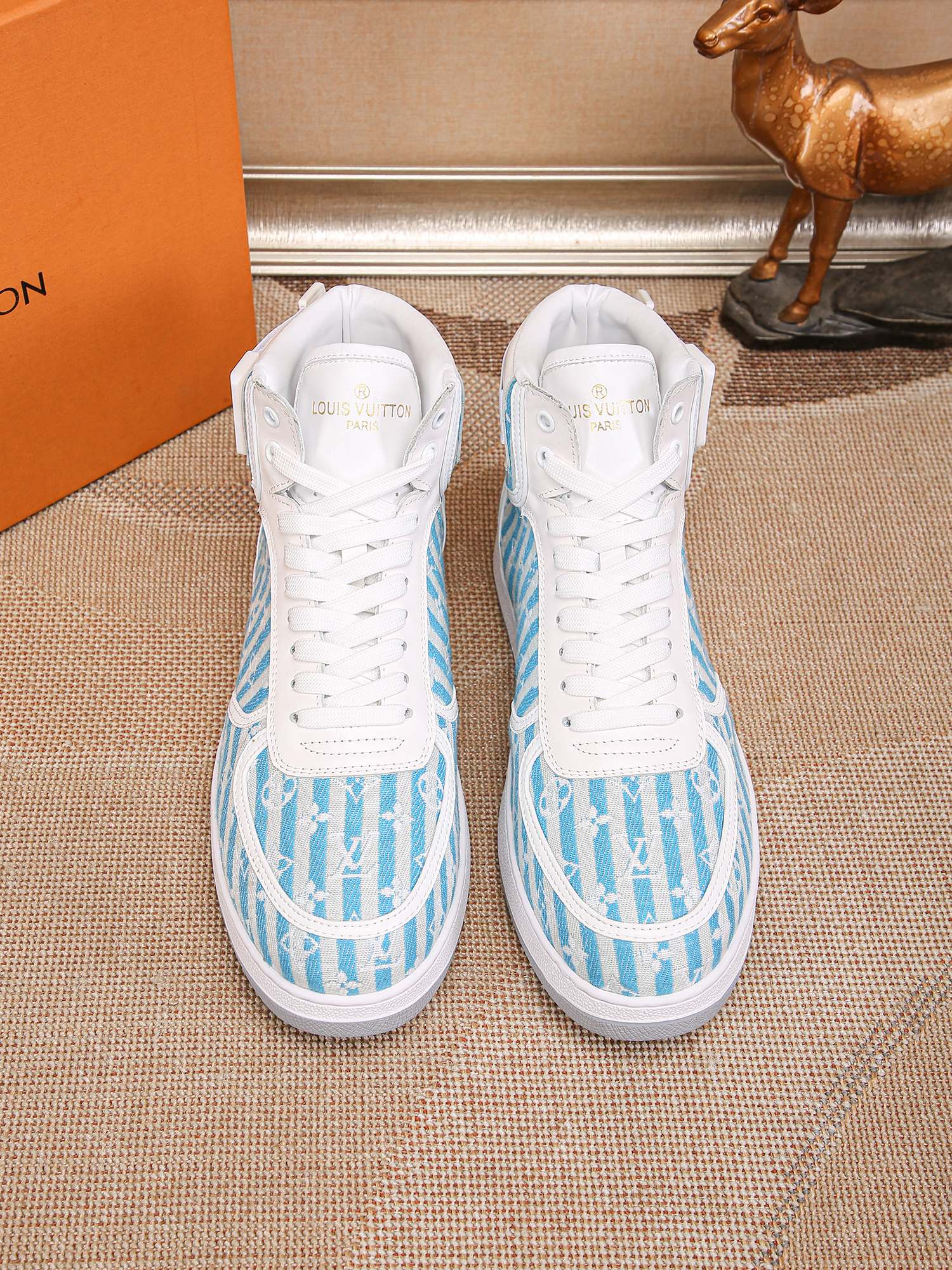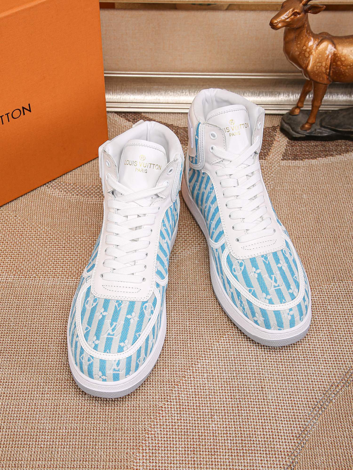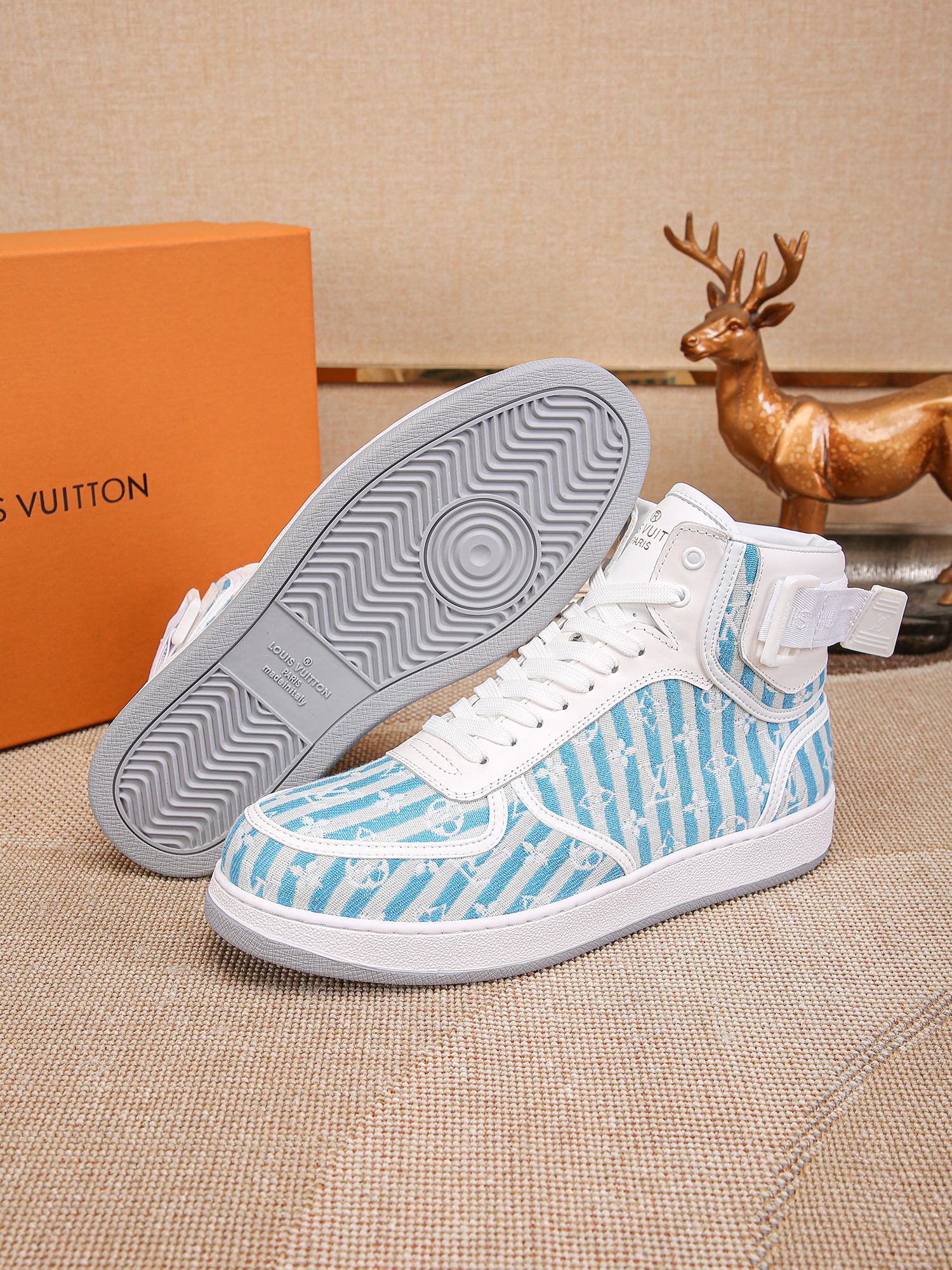 This shoes is AAAAA 1:1 quality (superb). Materials used are identical to the original ones. Louis Vuitton trademark marks are indistinguishable to the authentic. Photos take by actual shoes, what you receive will be 100% same with our photos.