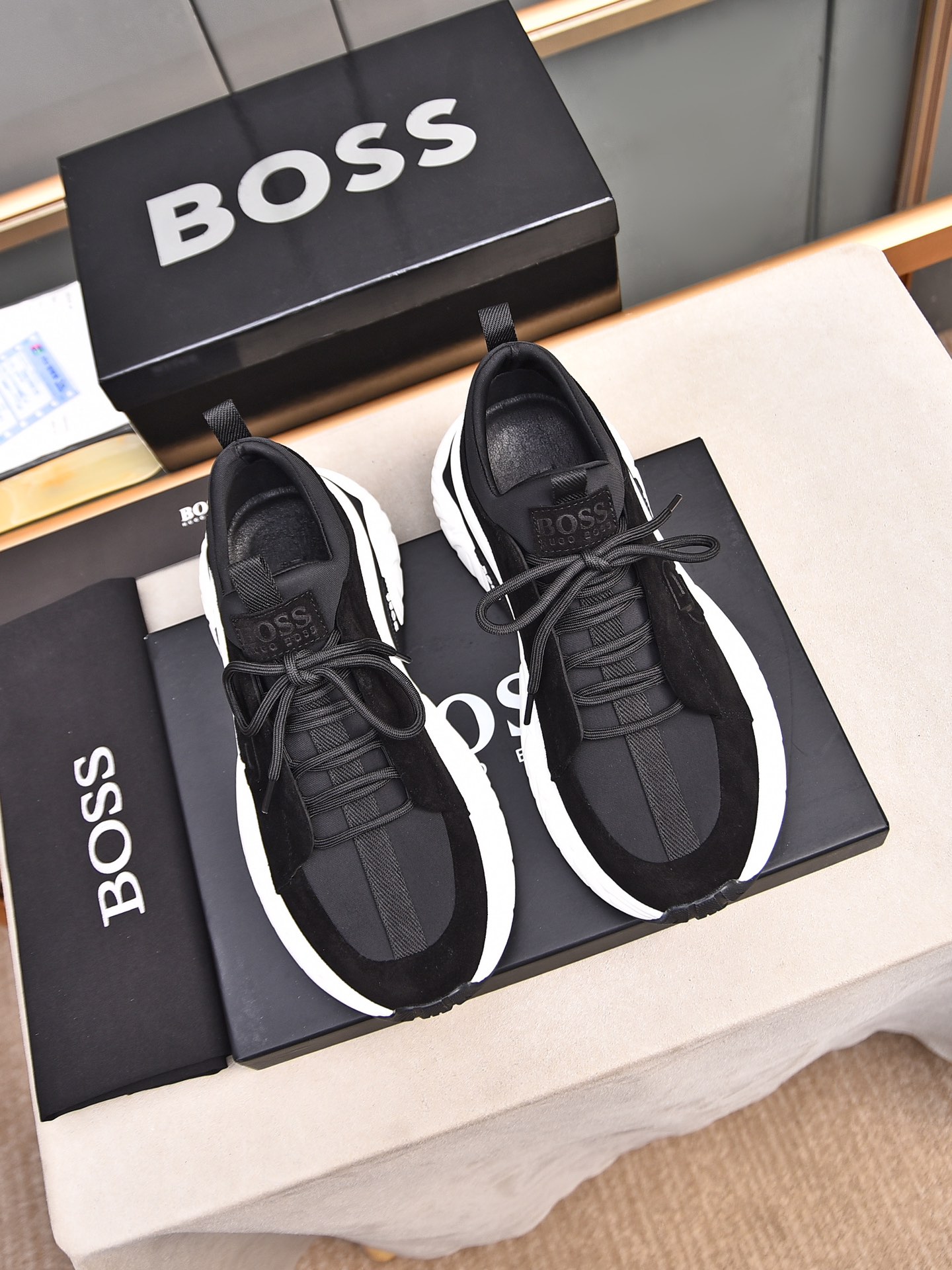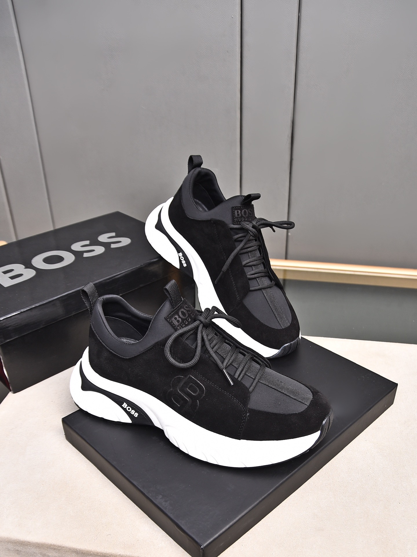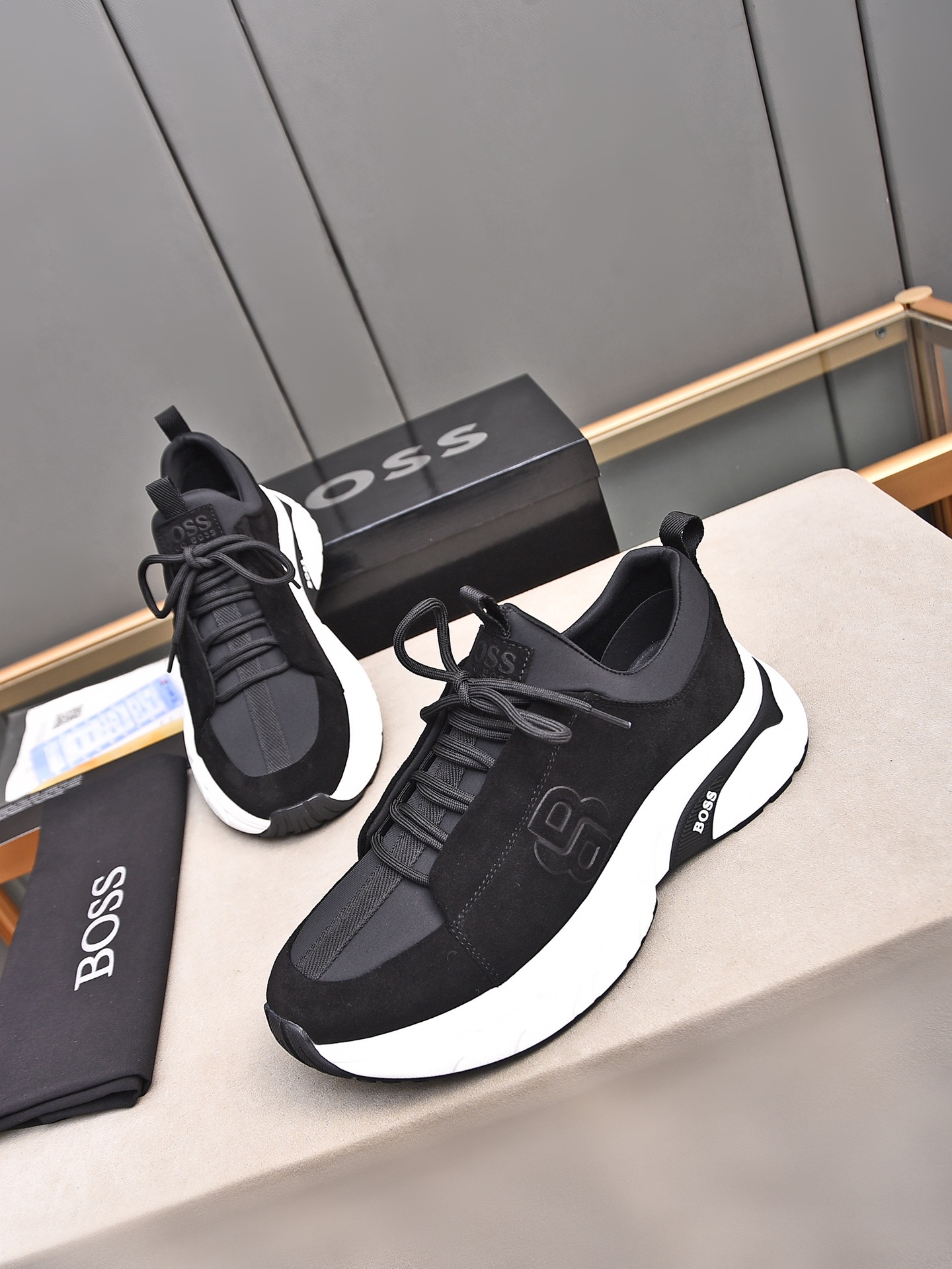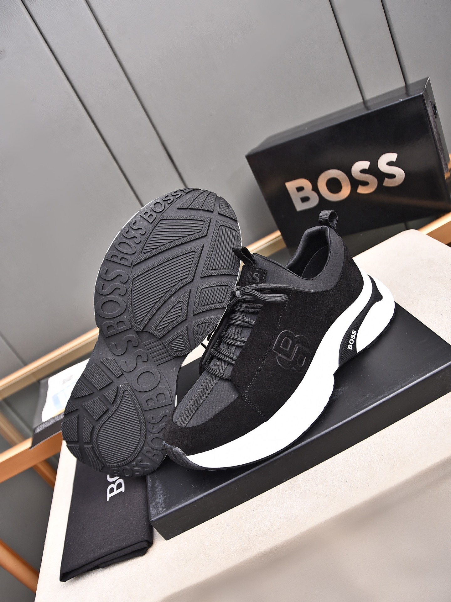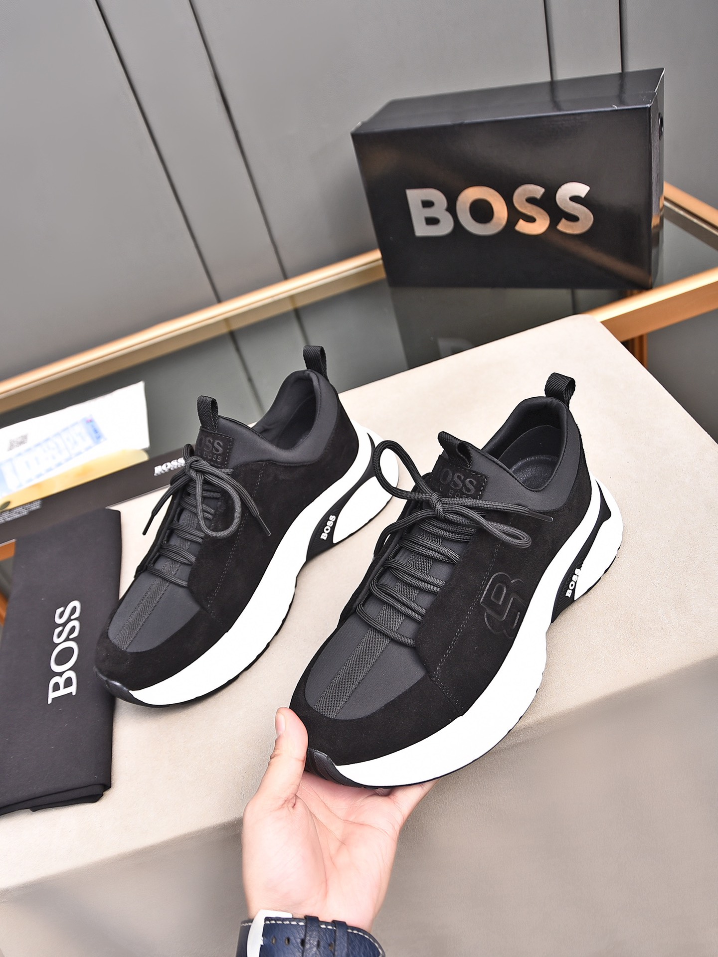 This shoes is AAAAA 1:1 quality (superb). Materials used are identical to the original ones. BOSS trademark marks are indistinguishable to the authentic. Photos take by actual shoes, what you receive will be 100% same with our photos.