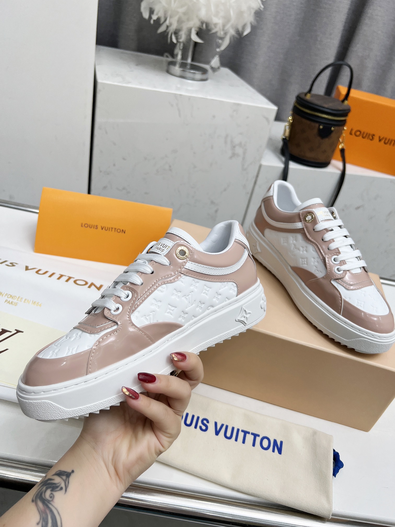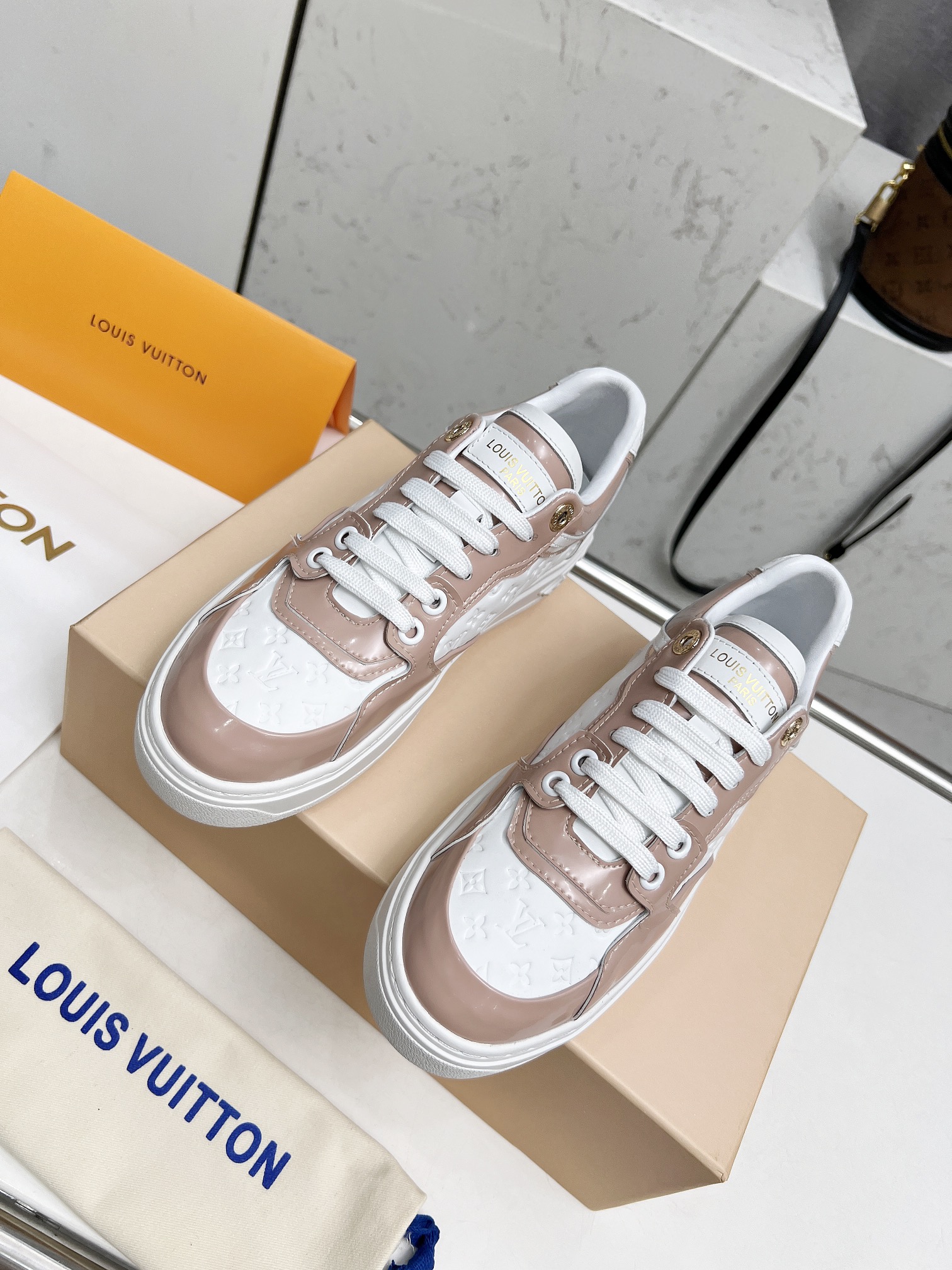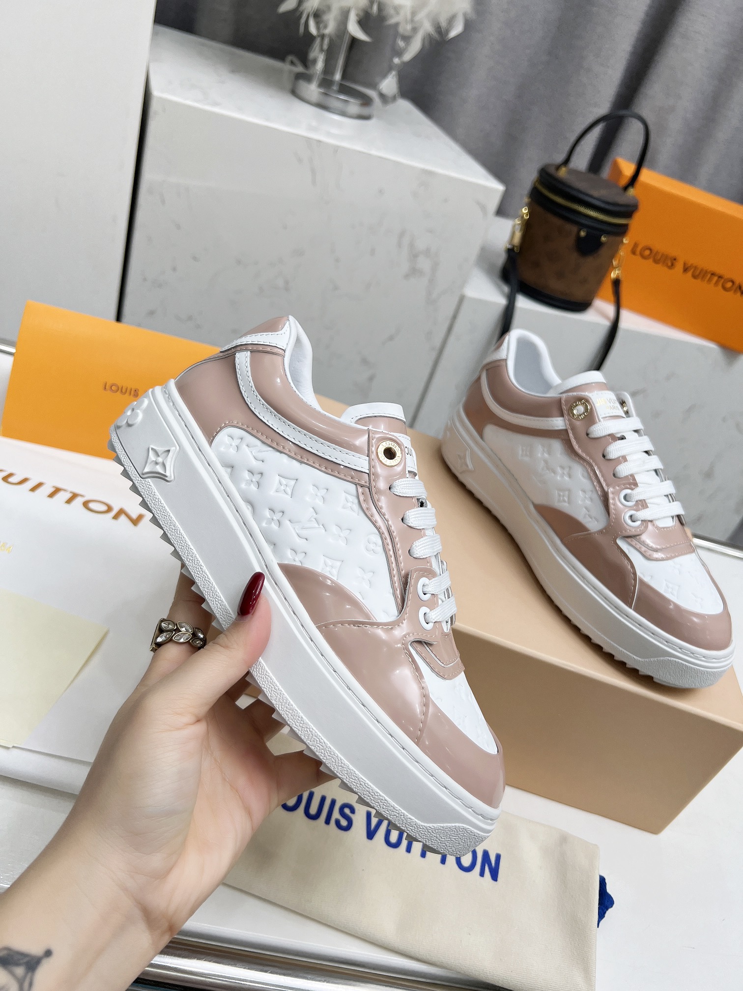 This shoes is AAAAA 1:1 quality (superb). Materials used are identical to the original ones. Louis Vuitton trademark marks are indistinguishable to the authentic. Photos take by actual shoes, what you receive will be 100% same with our photos.
