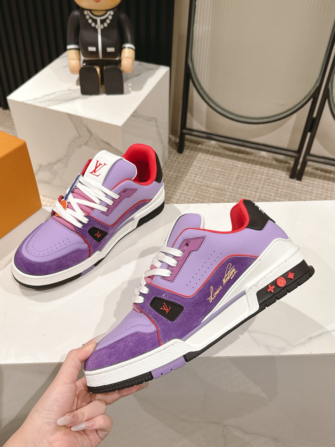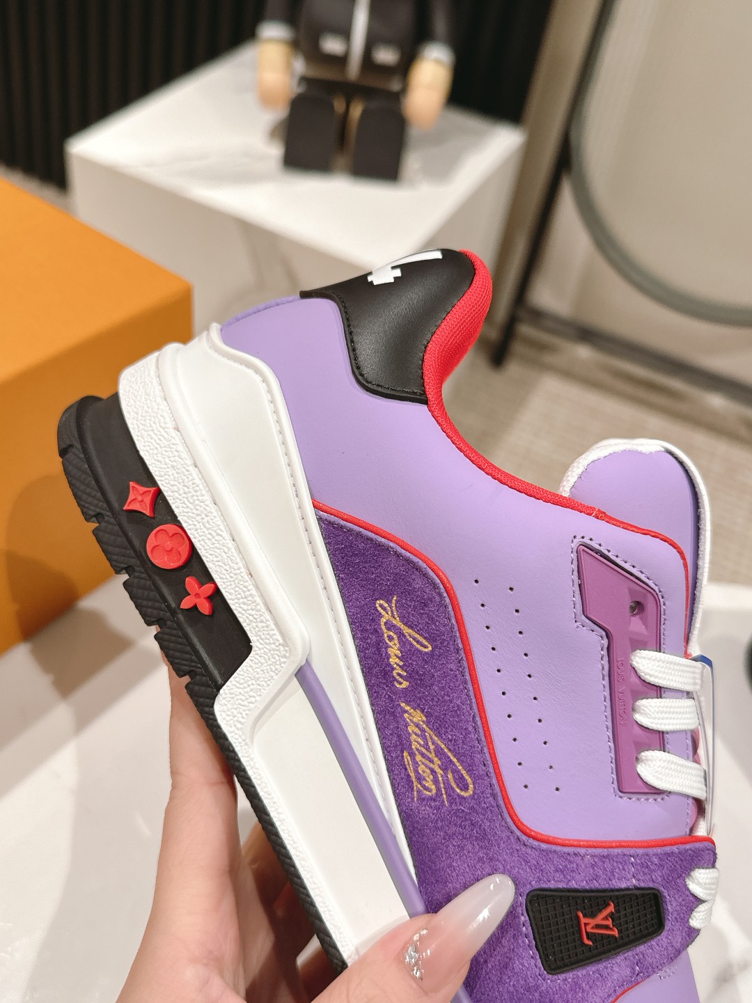 This shoes is AAAAA 1:1 quality (superb). Materials used are identical to the original ones. Louis Vuitton trademark marks are indistinguishable to the authentic. Photos take by actual shoes, what you receive will be 100% same with our photos.