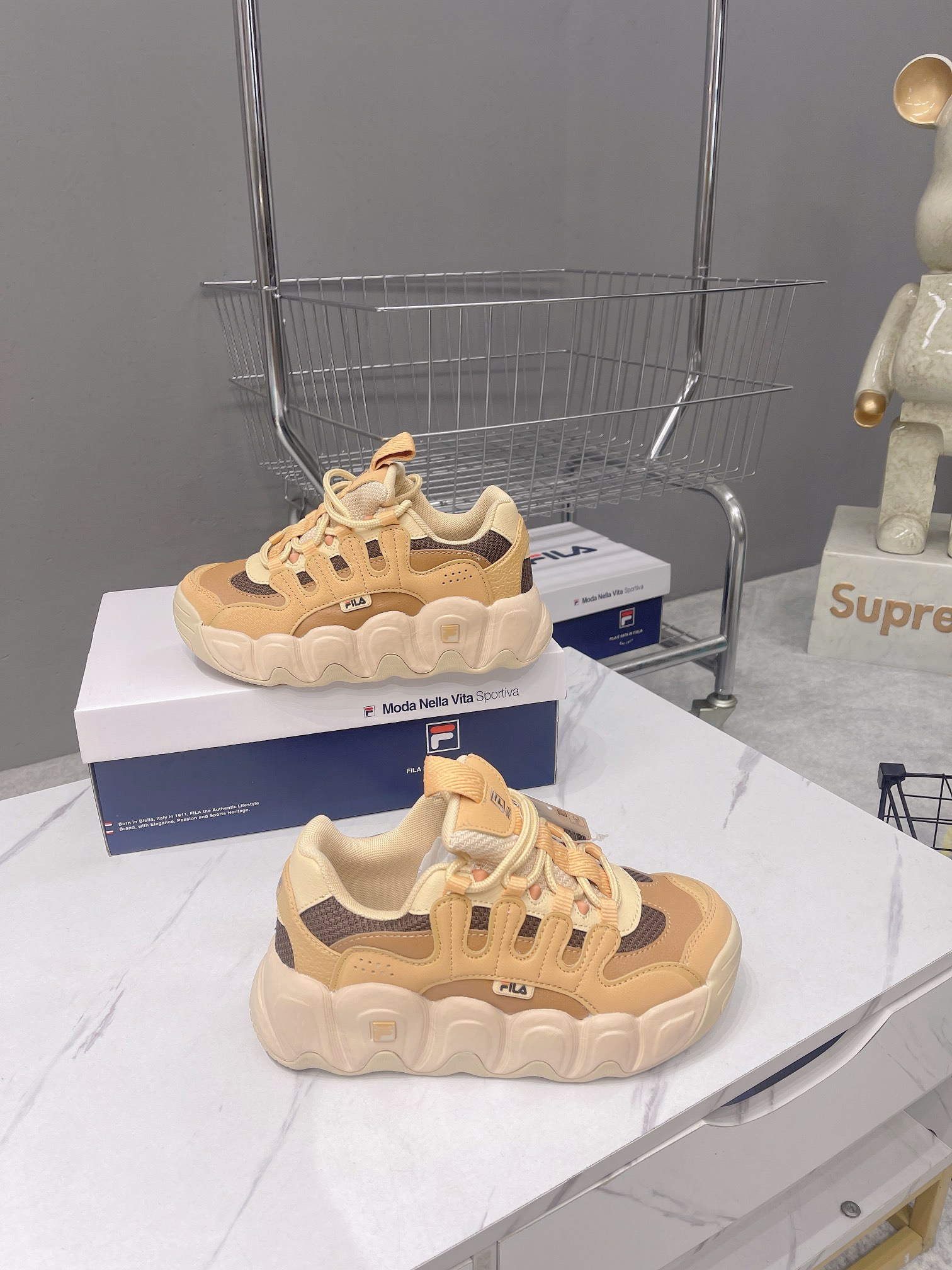 This shoes is AAAAA 1:1 quality (superb). Materials used are identical to the original ones. Fila trademark marks are indistinguishable to the authentic. Photos take by actual shoes, what you receive will be 100% same with our photos.