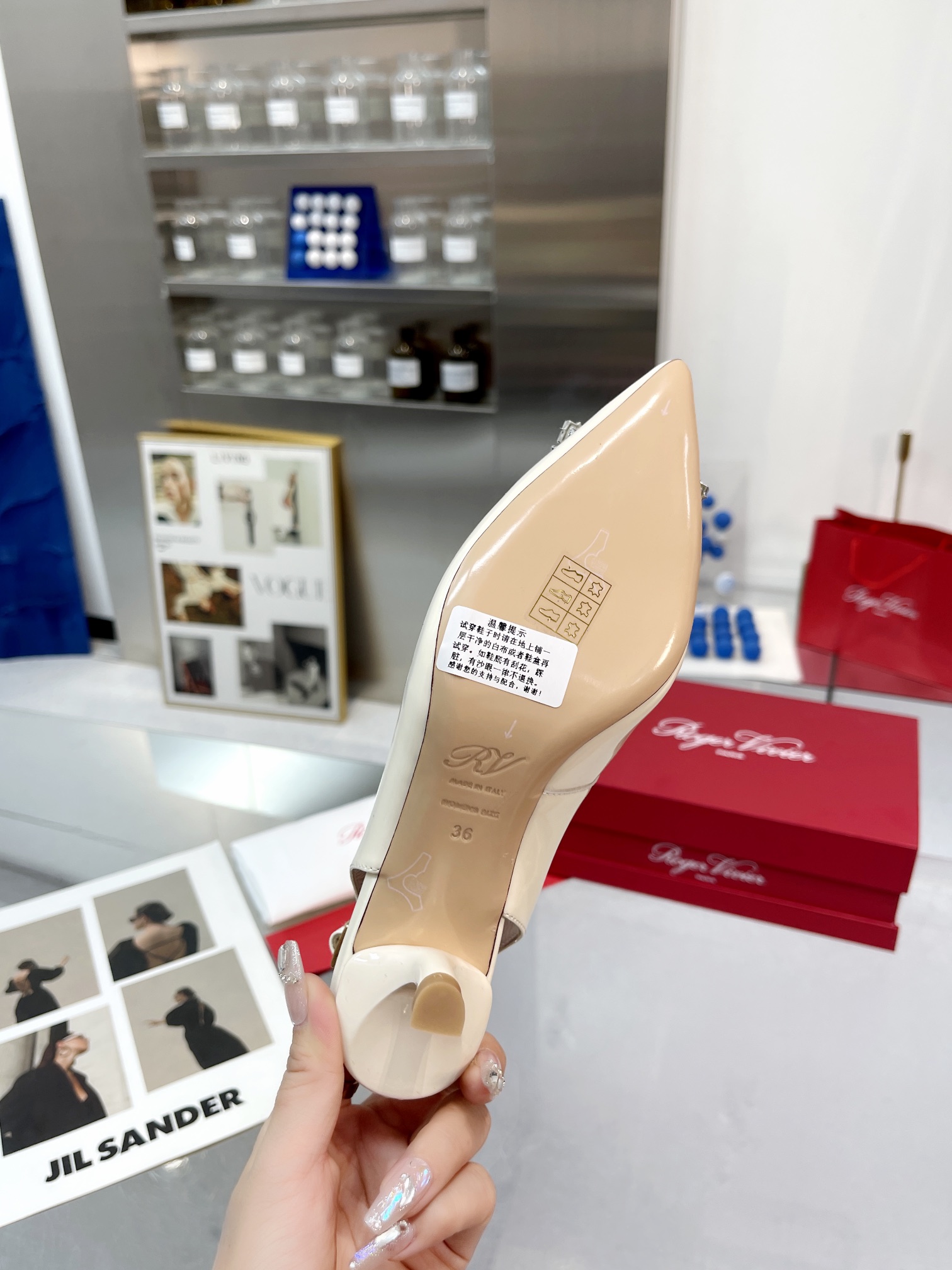 This shoes is AAAAA 1:1 quality (superb). Materials used are identical to the original ones. Roger Vivier trademark marks are indistinguishable to the authentic. Photos take by actual shoes, what you receive will be 100% same with our photos.